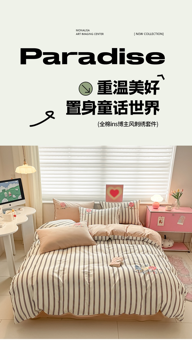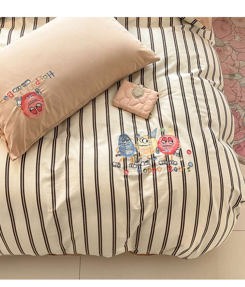 2024蜜柚新品直播电商全棉13372ins博主风刺绣四件套 奇趣小怪兽
