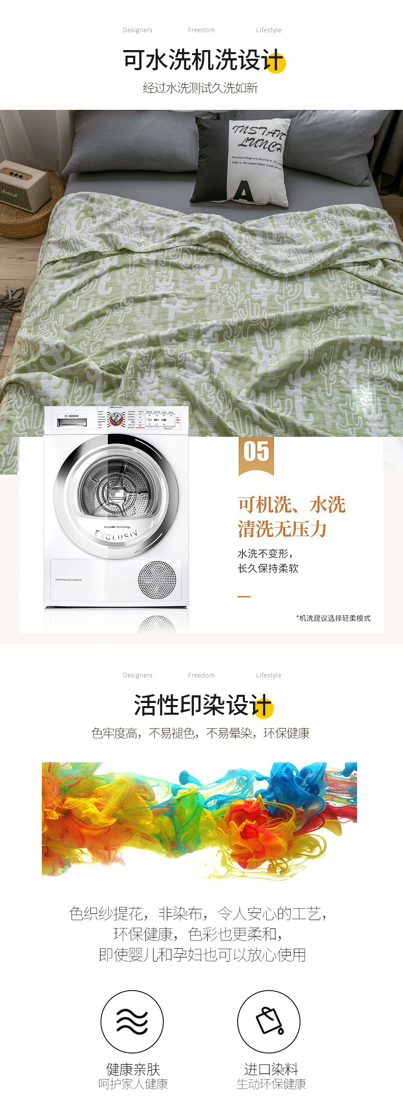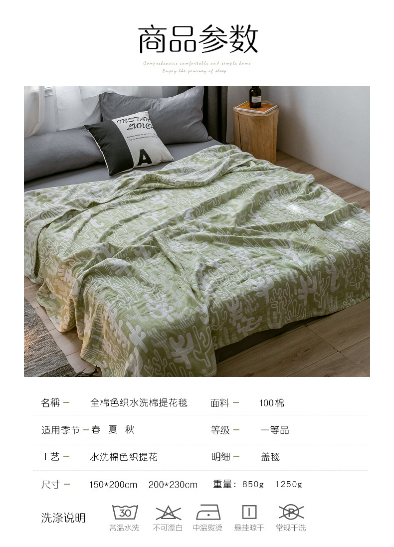 商品名称:朴尔家纺-毛巾被 2024新款三层水洗棉全棉纱布毛巾被 仙人掌-绿