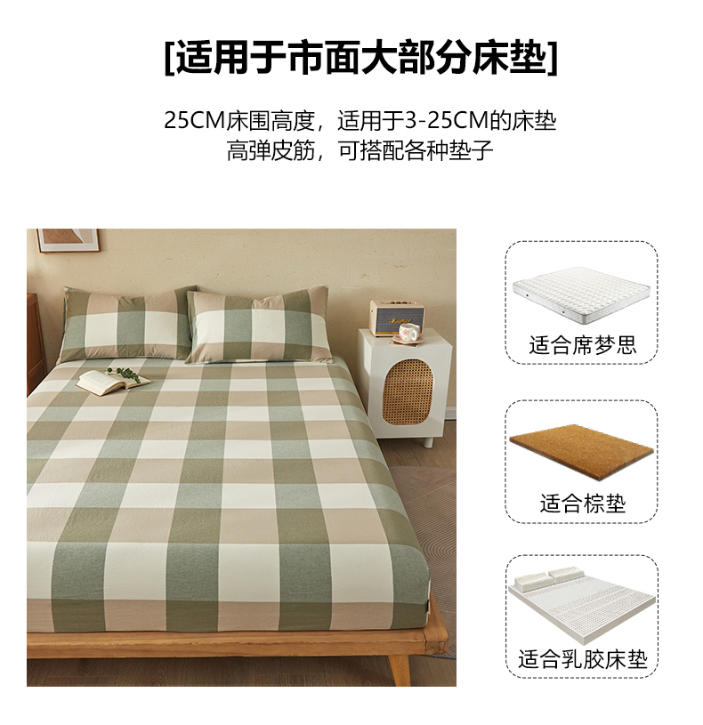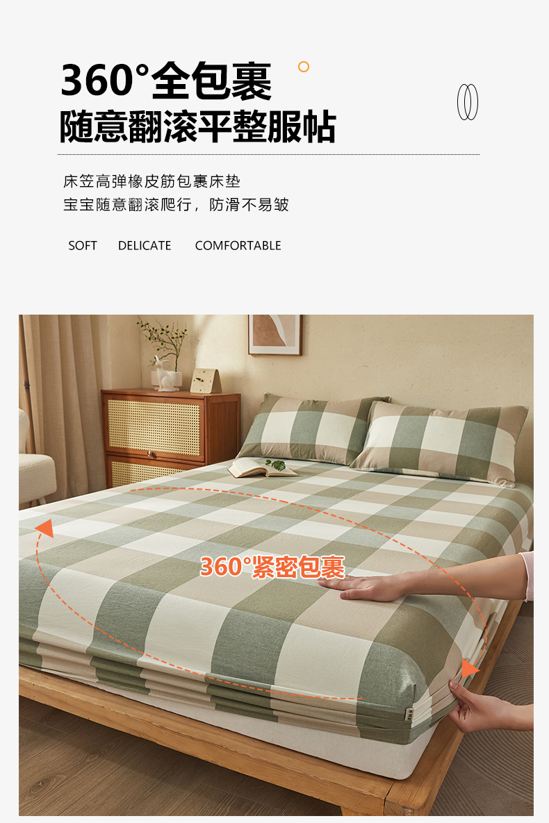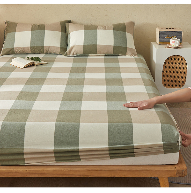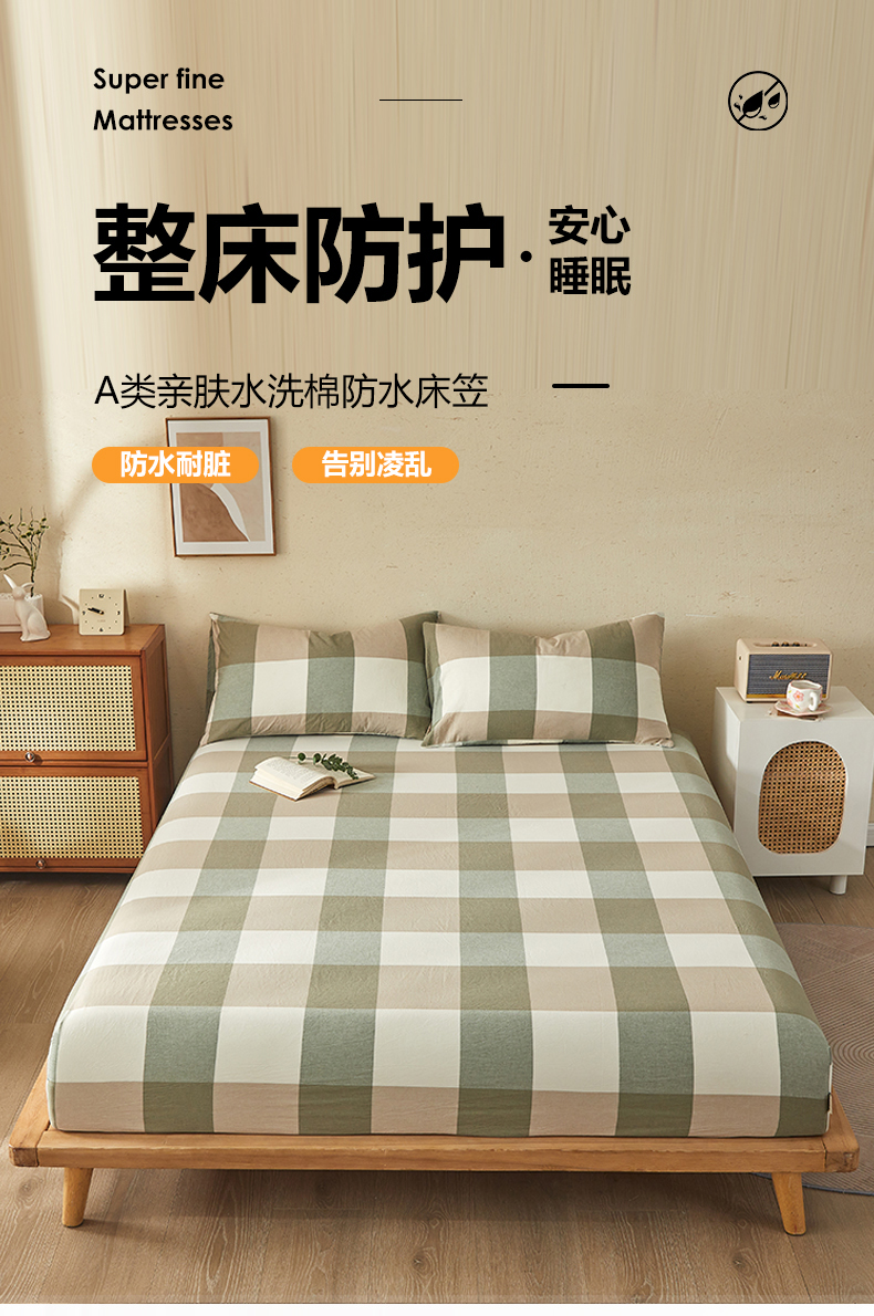 商品名称:暖阳 2025新款A类无印风防水床笠 单床笠 绿大格