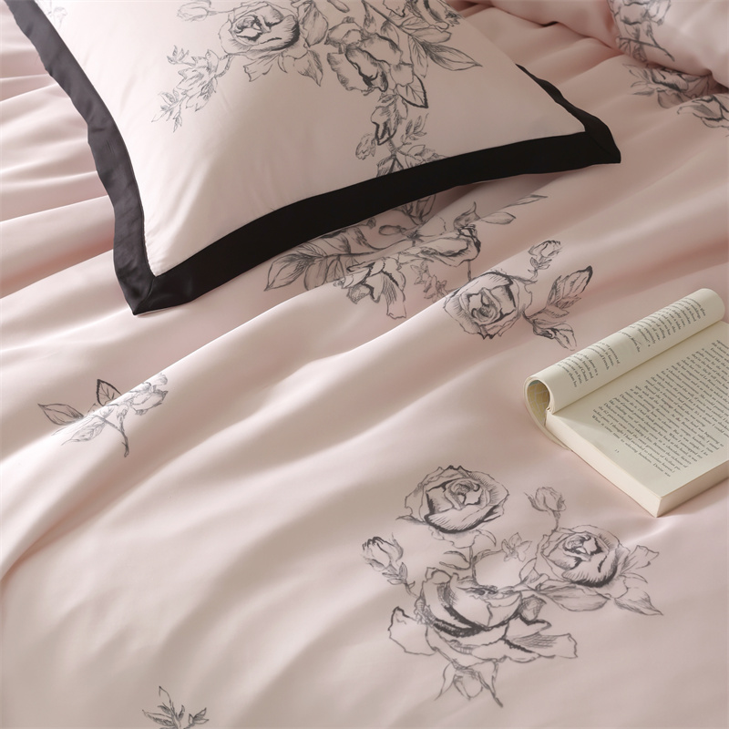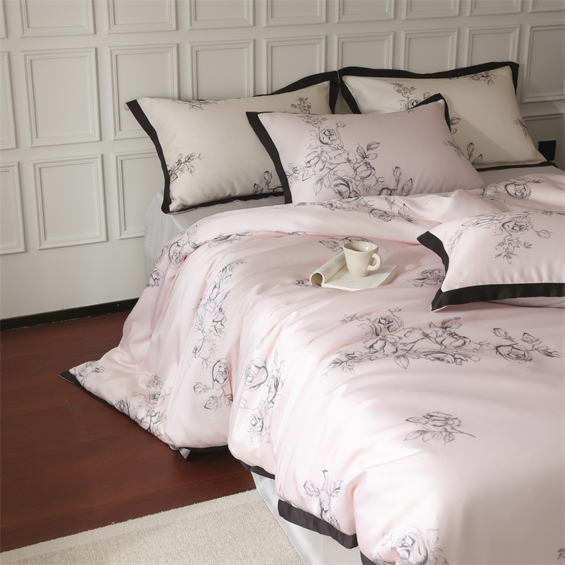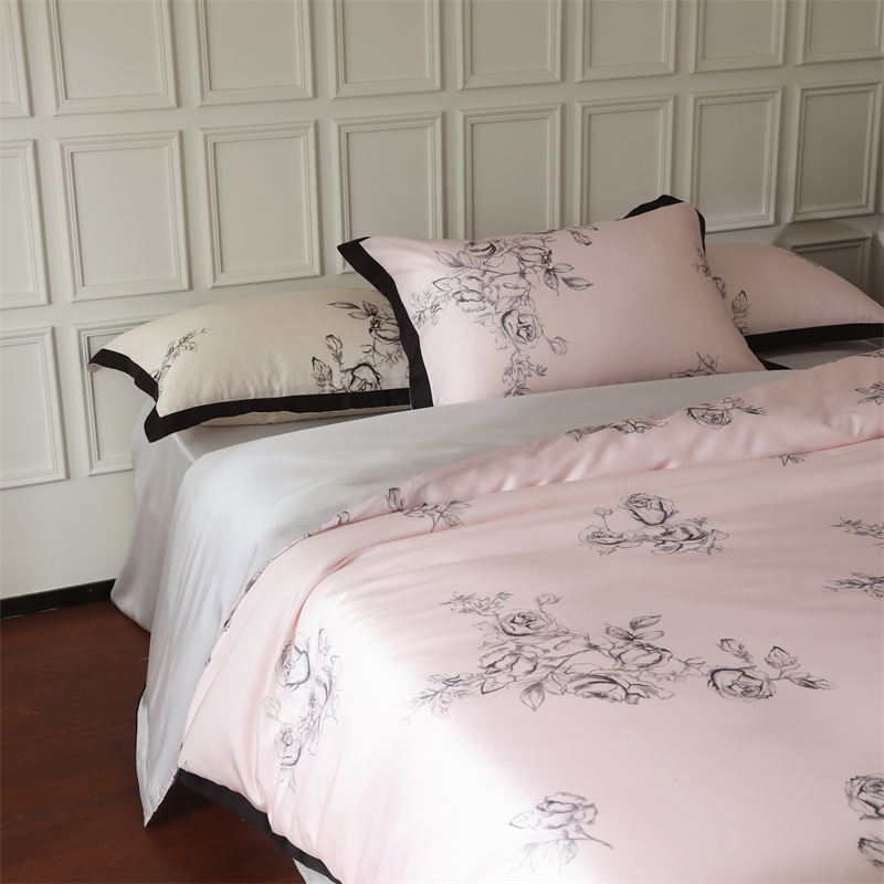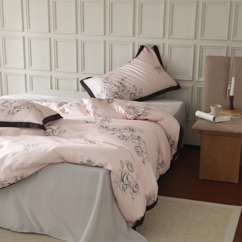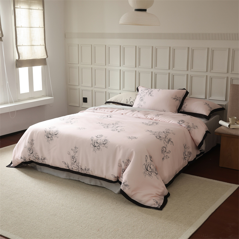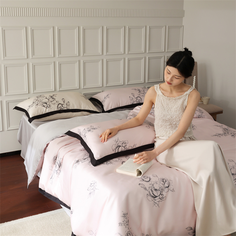 初拾 2024新款60支奥地利兰精天丝数码印花四件套-素描系列 天丝-粉玫