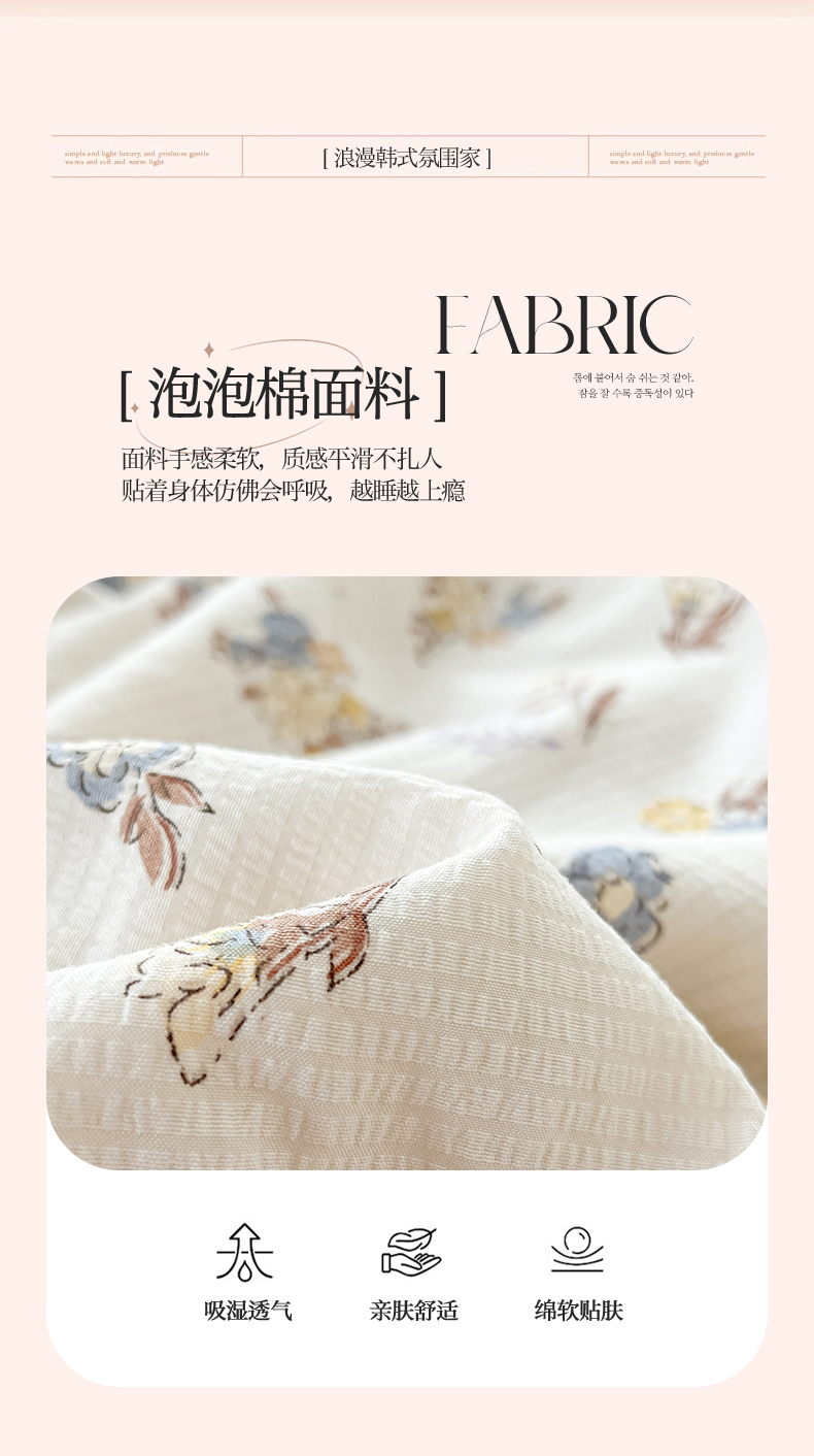 恒爱家纺 2024新款韩版泡泡棉系列单床盖 木棉花