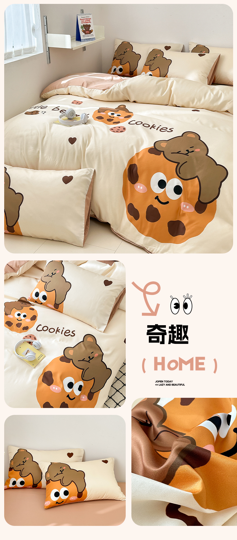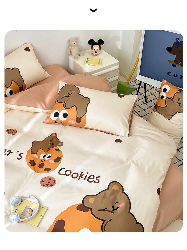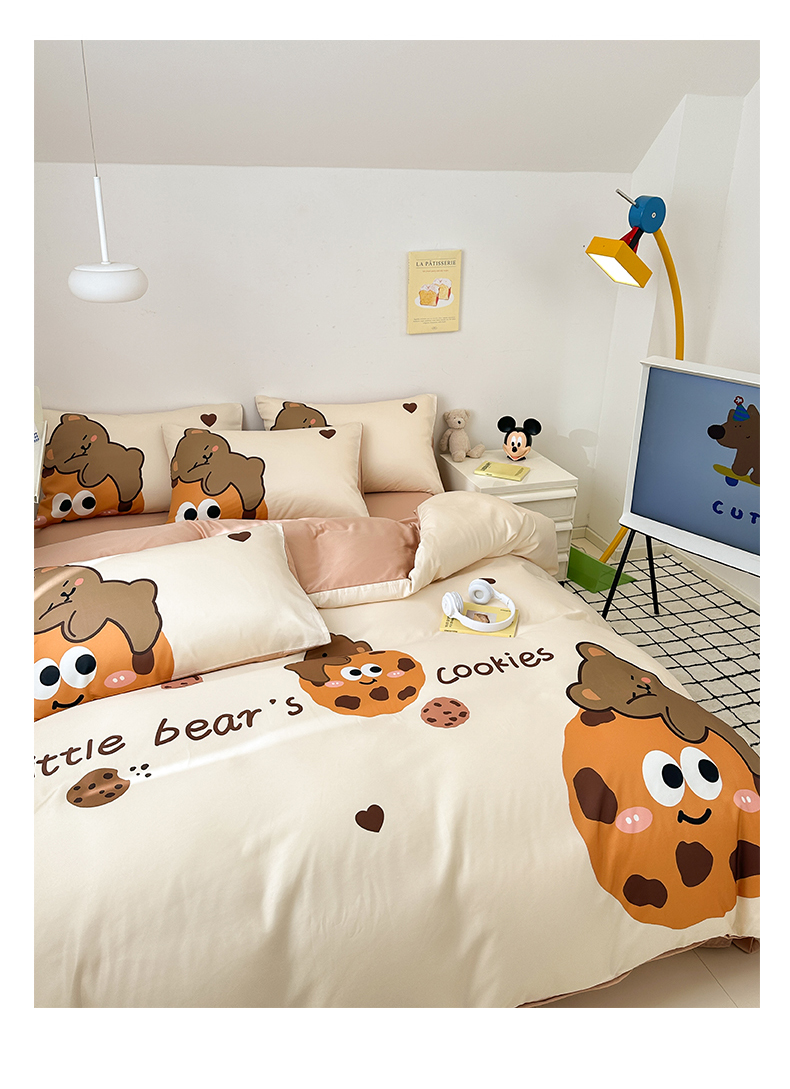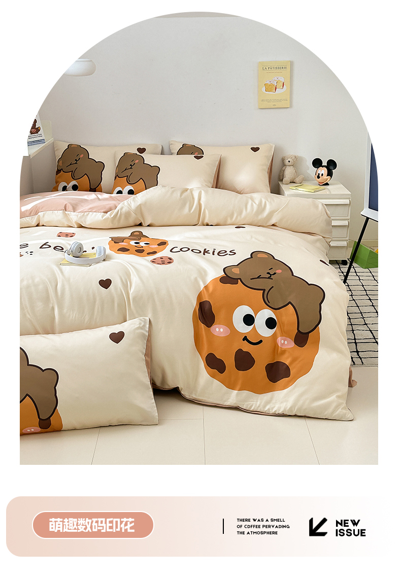 (总)摩卡(乐趣) 2025秋冬新品网红款水洗棉四季款四件套,豹纹熊-粉,豹纹熊-绿,彩虹兔,公仔蓝,梦幻粉,梦幻蓝,棋盘格公仔,太阳花粉,天使熊-粉,天使熊-咖,小熊头,熊头白,熊头橙,熊头咖,熊仔白