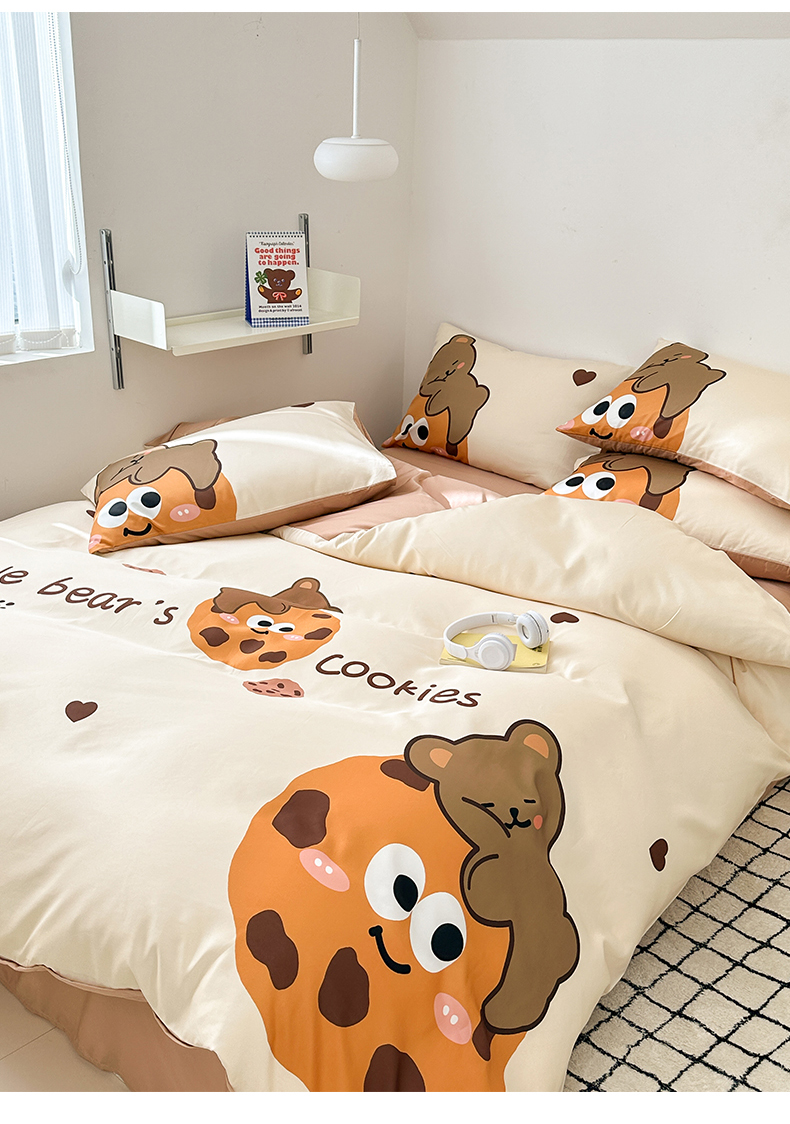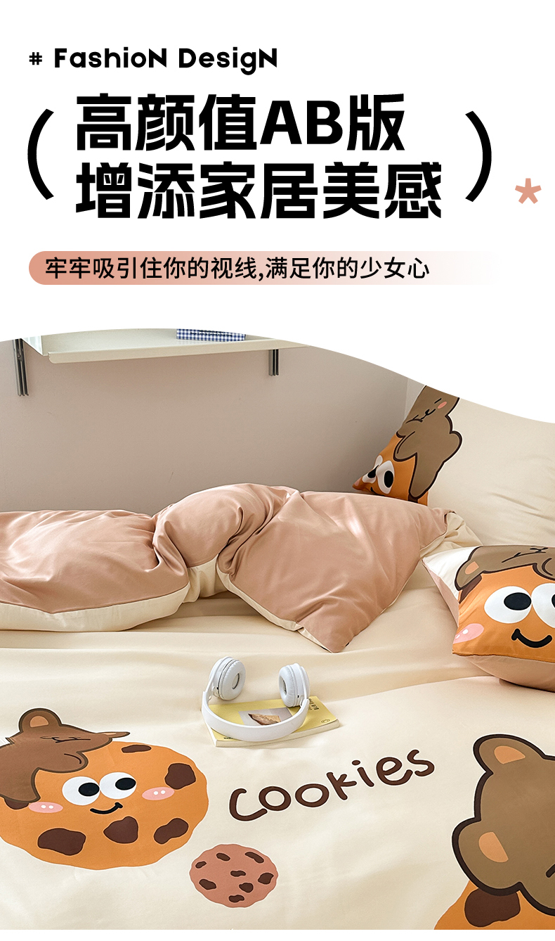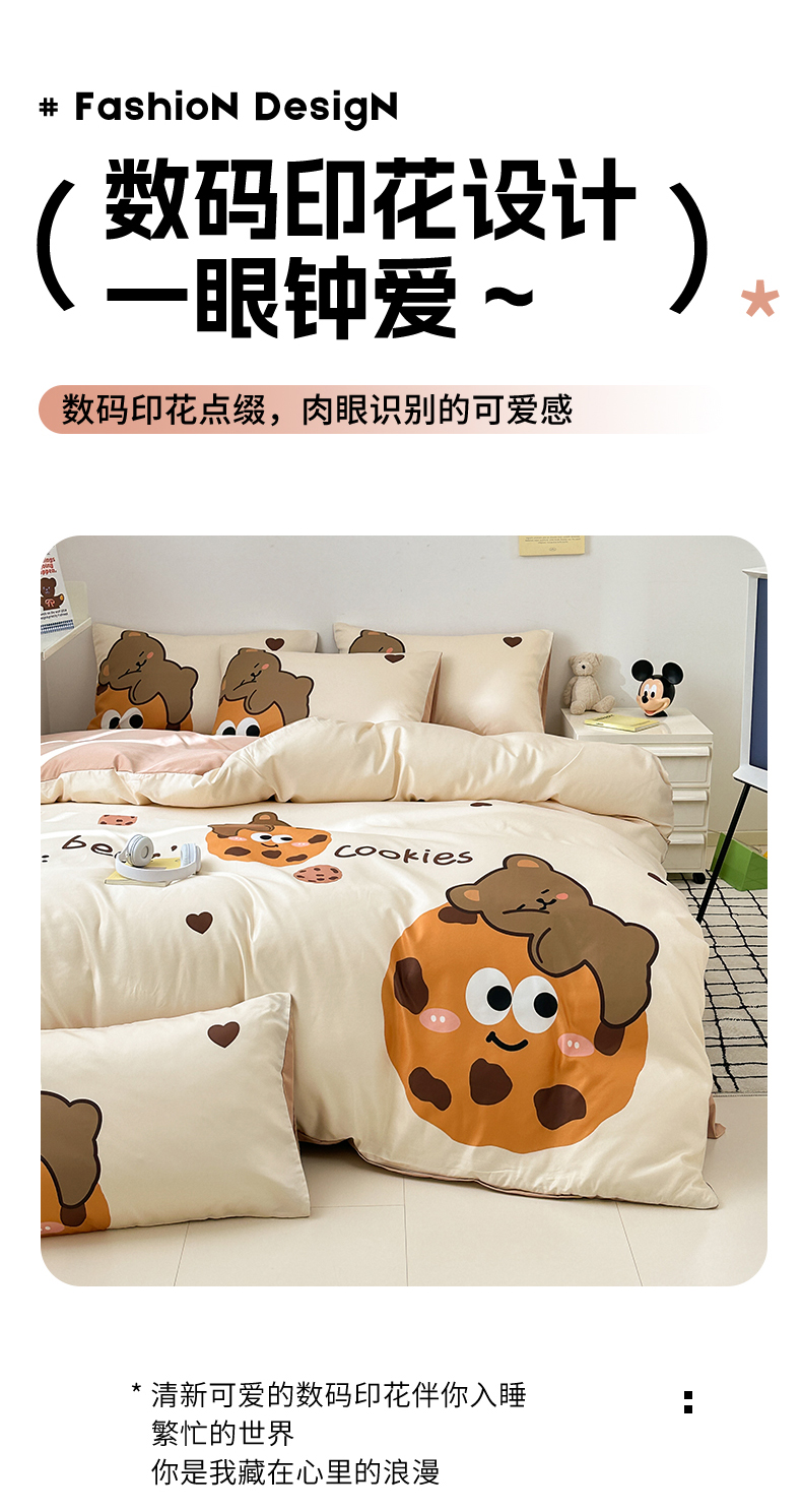 (总)摩卡(乐趣) 2025秋冬新品网红款水洗棉四季款四件套,豹纹熊-粉,豹纹熊-绿,彩虹兔,公仔蓝,梦幻粉,梦幻蓝,棋盘格公仔,太阳花粉,天使熊-粉,天使熊-咖,小熊头,熊头白,熊头橙,熊头咖,熊仔白