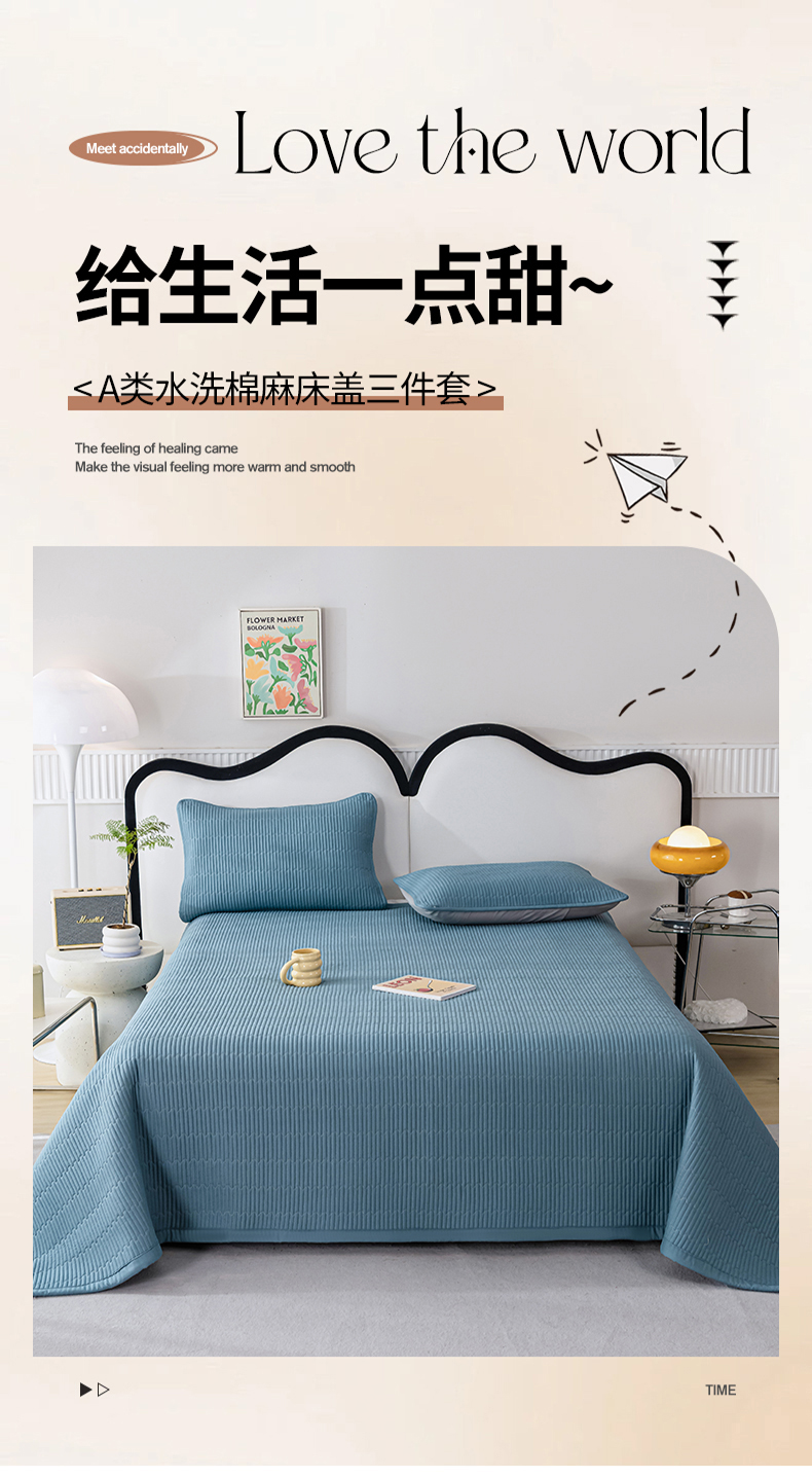 家喜爱 2024新款A类水洗棉麻床盖三件套 魅惑紫