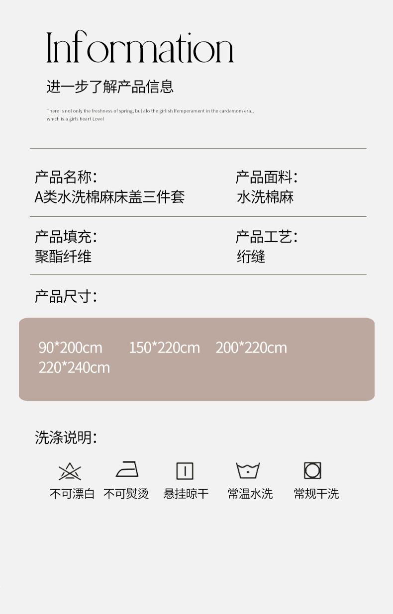 • 91家纺网 家纺一手货源 找家纺 家喜爱 2024新款A类水洗棉麻床盖三件套 魅惑紫