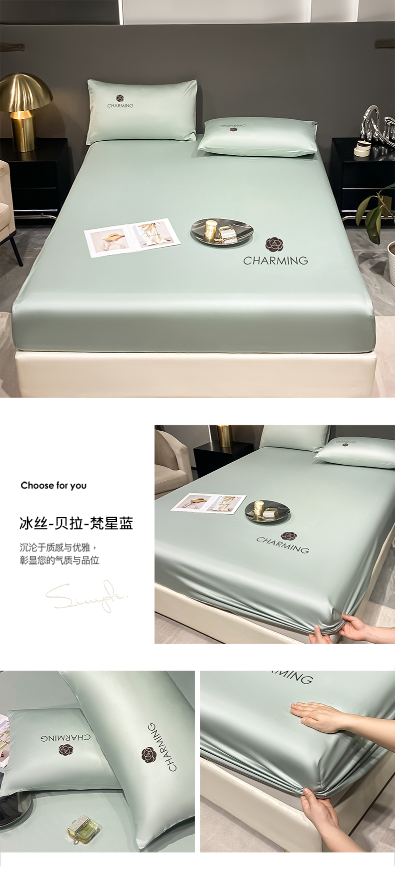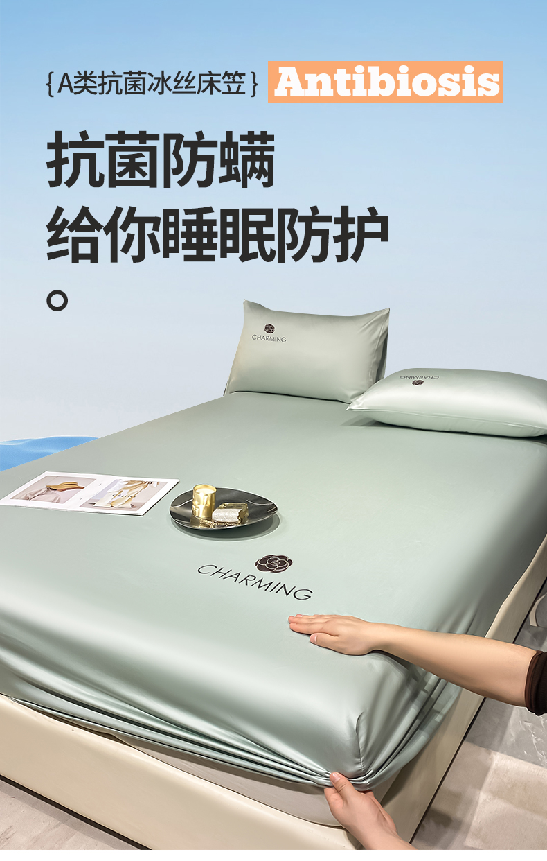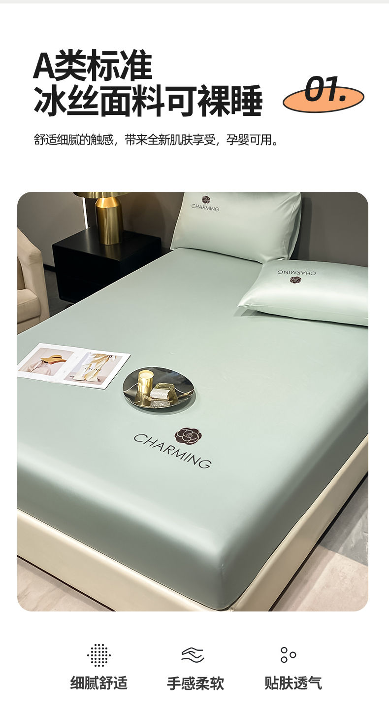 • 91家纺网 家纺一手货源 找家纺 古吉梦 2024新款水洗真丝冰丝床笠 冰丝-贝拉-梵星蓝