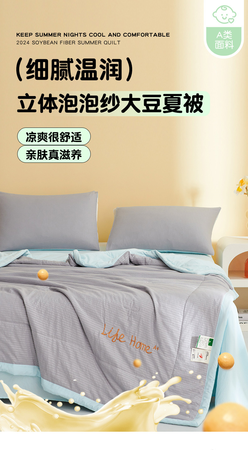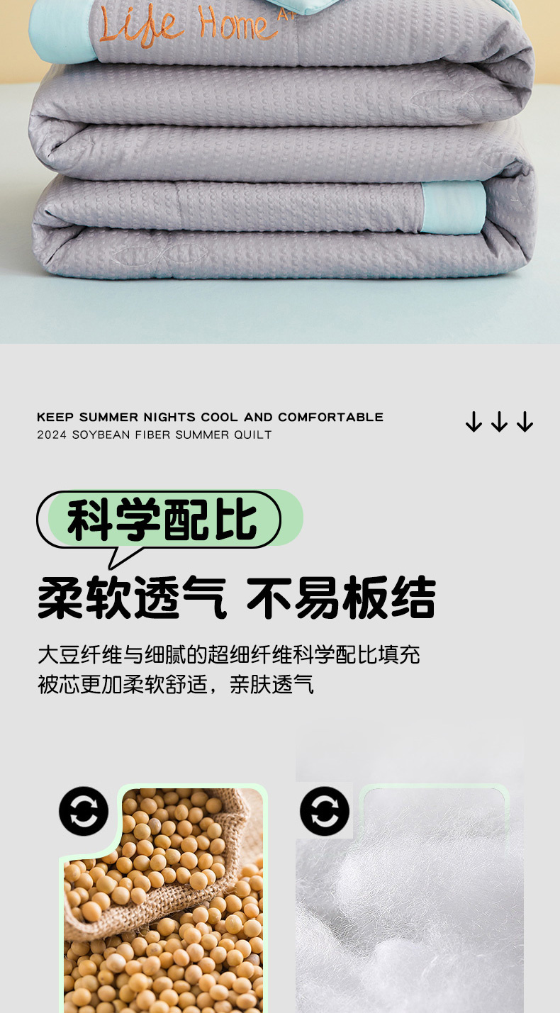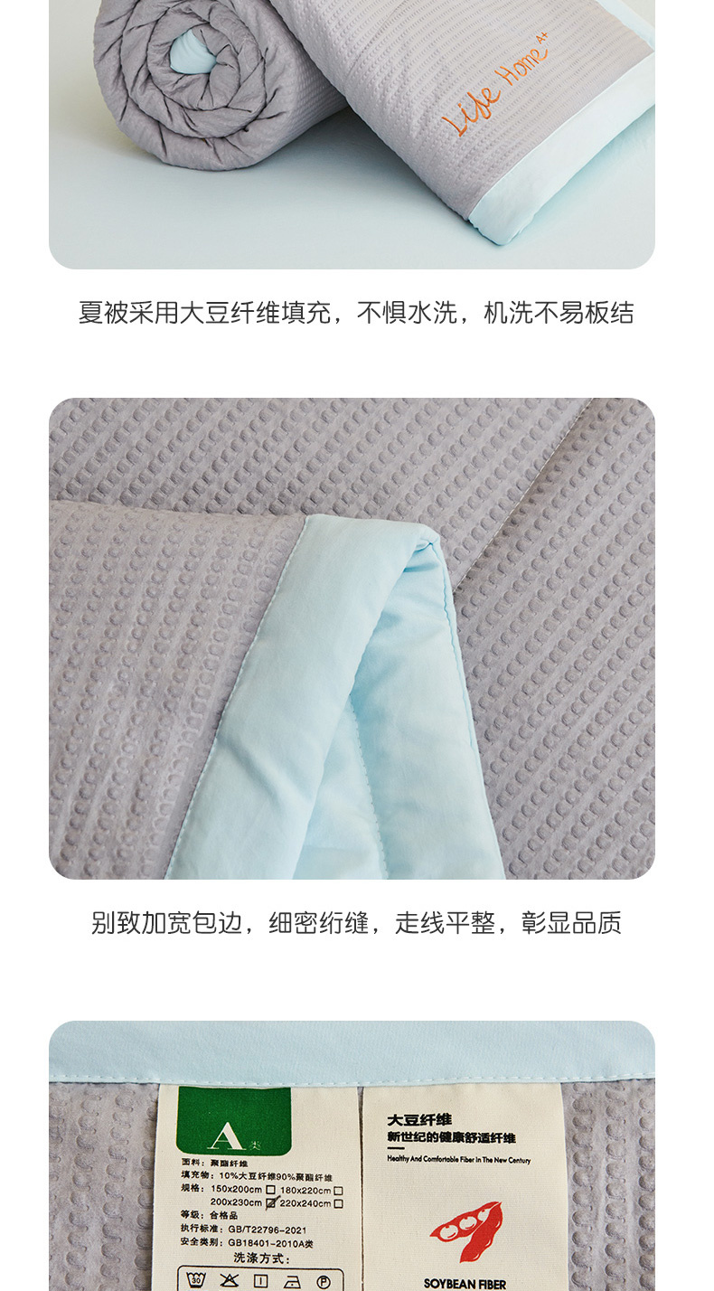 商品名称:恒畅 2024新款A类泡泡纱大豆夏被 太空灰蓝
