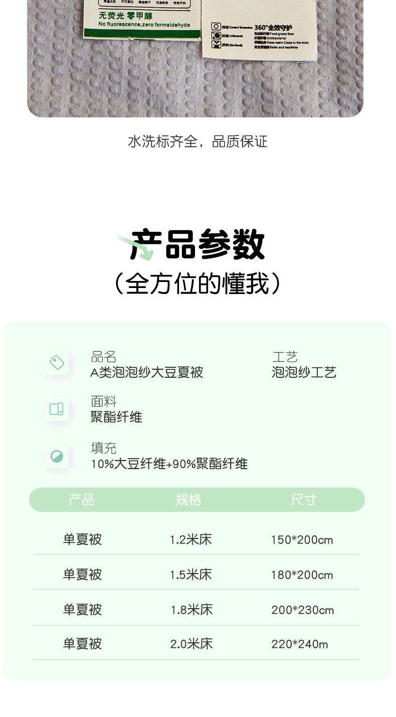 填充纤维种类: 大豆蛋白改性聚酯纤维