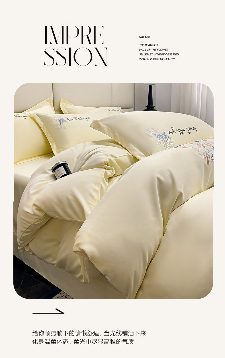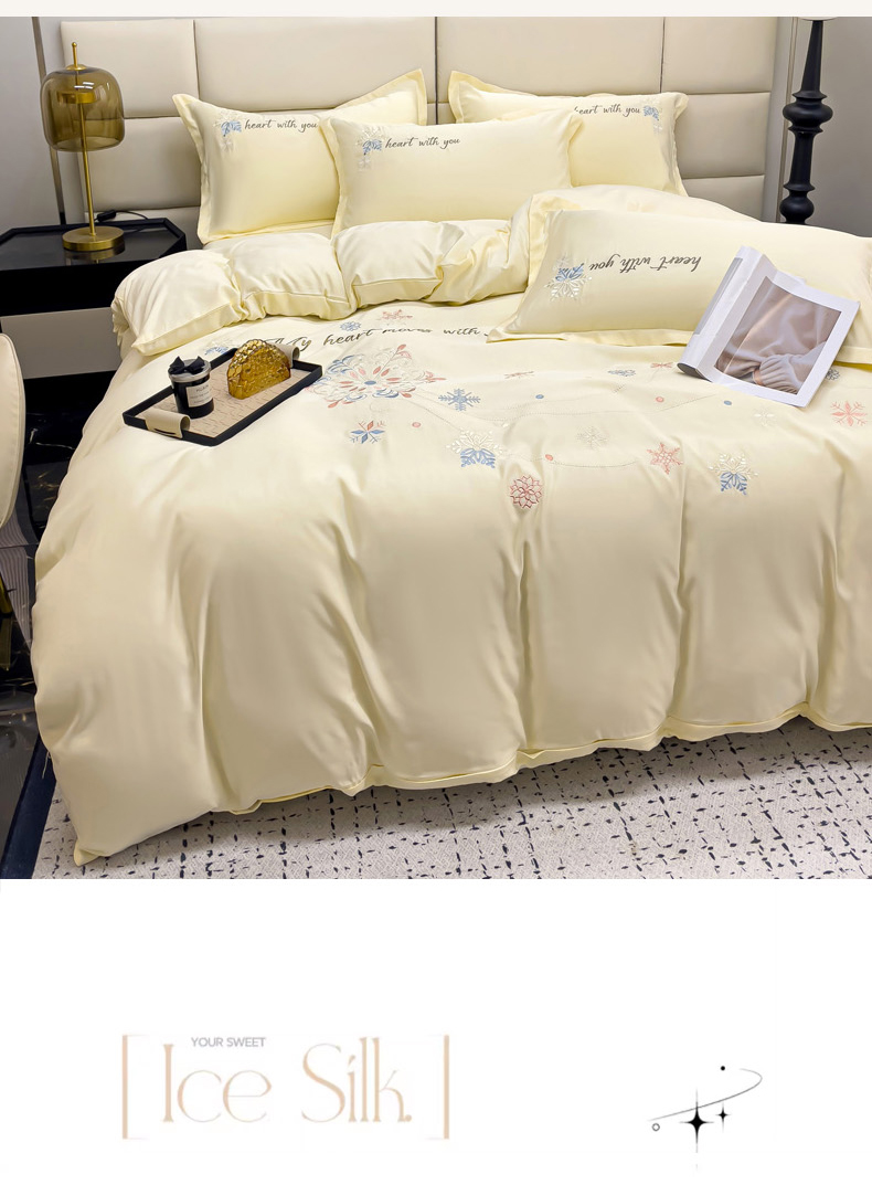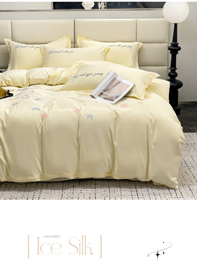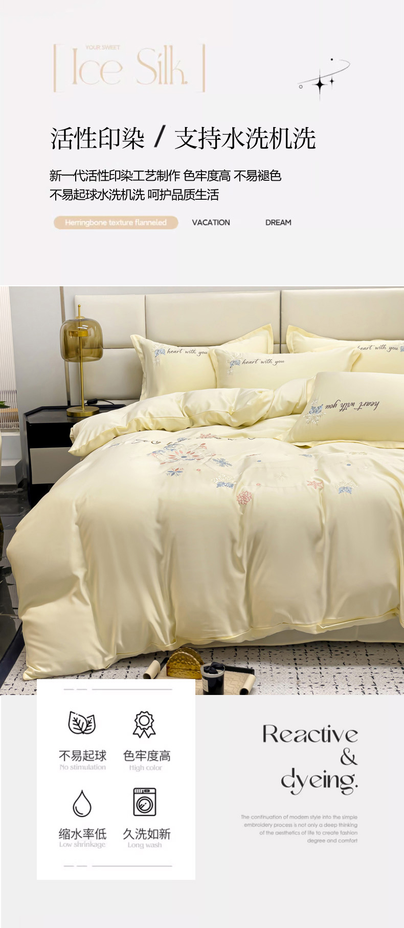 商品名称:恋佳居 2025新款水洗真丝刺绣四件套 冰凌 鹅黄