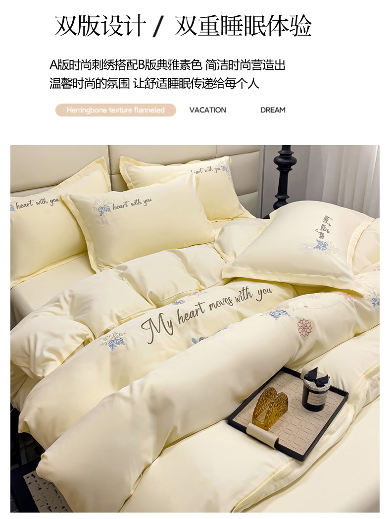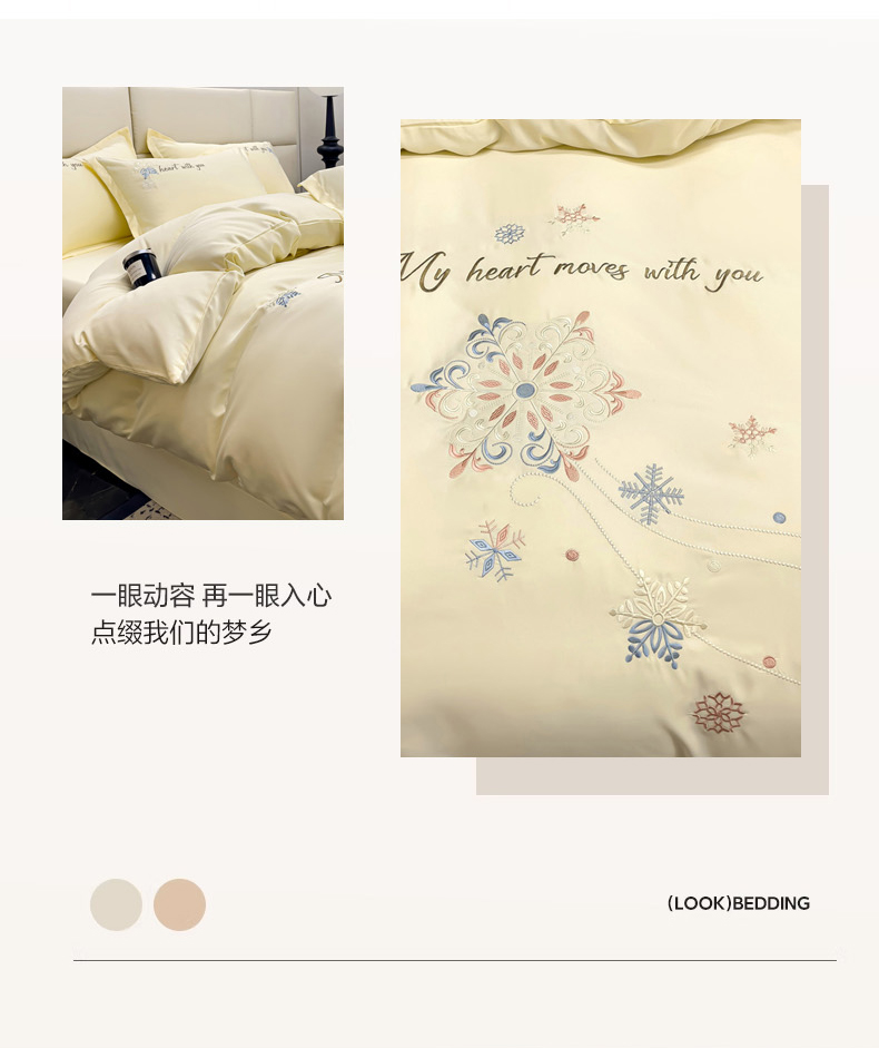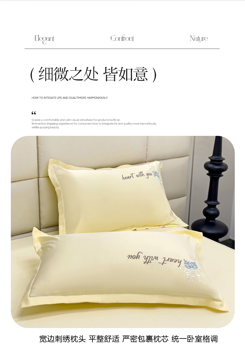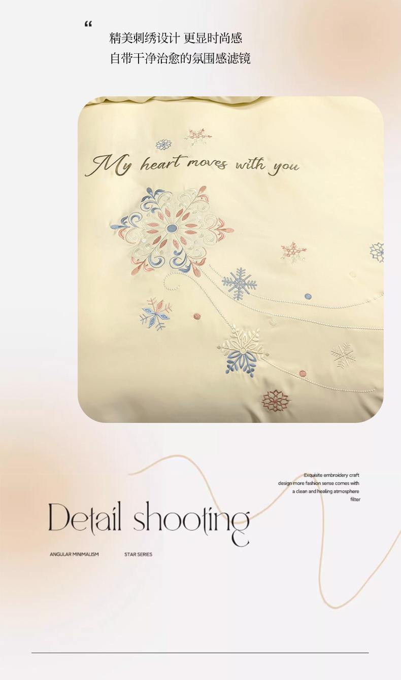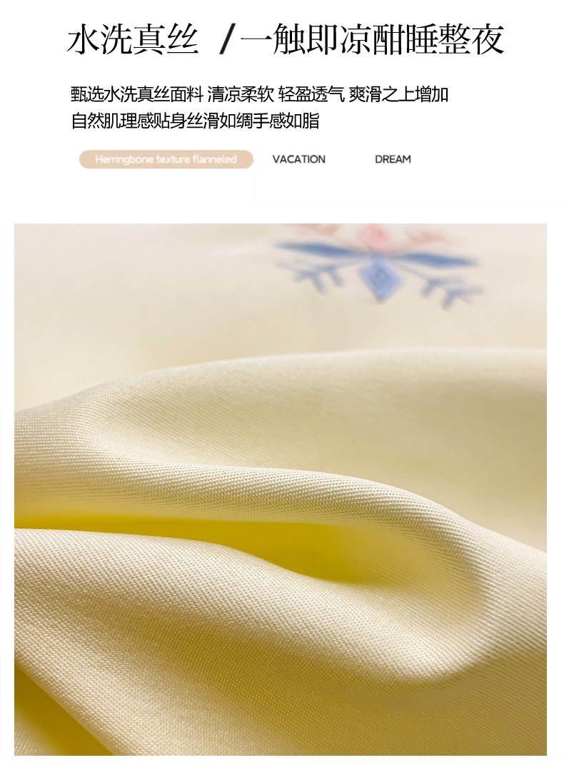 商品名称:恋佳居 2025新款水洗真丝刺绣四件套 冰凌 鹅黄