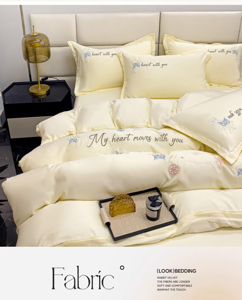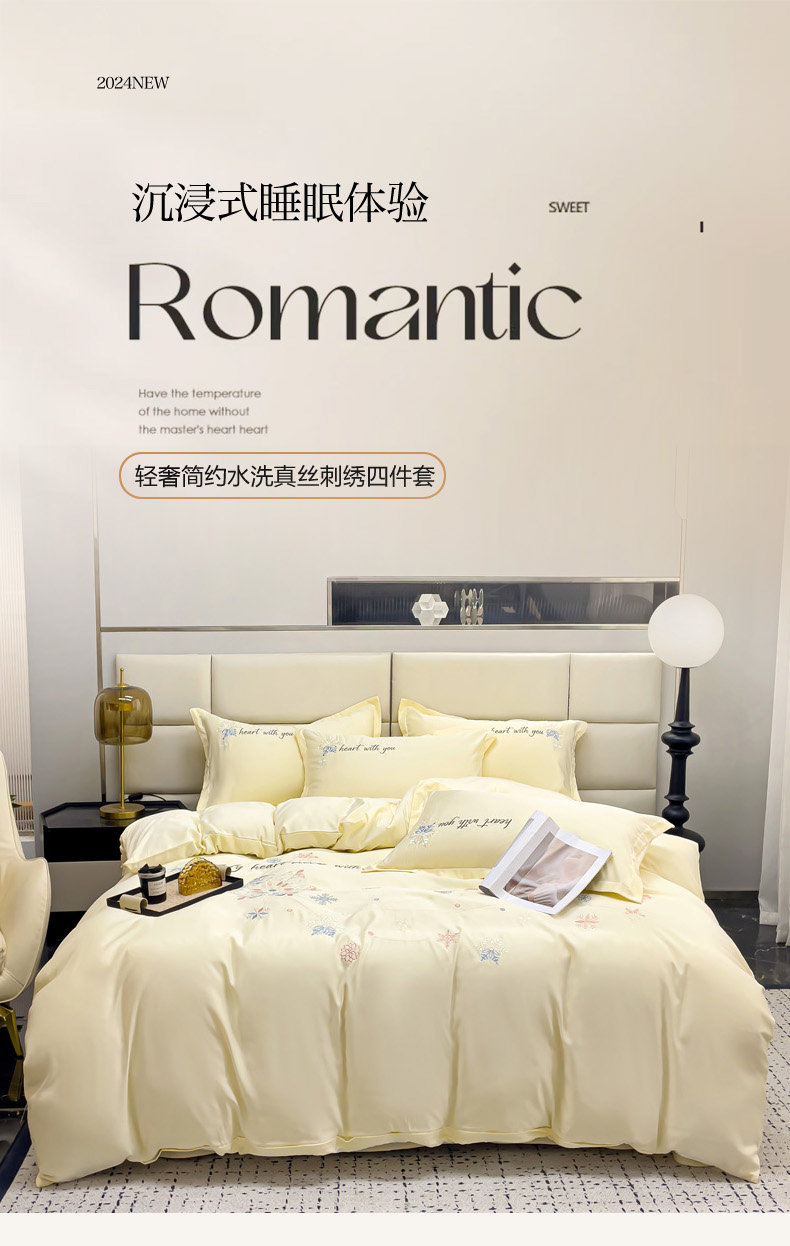恋佳居 2025新款水洗真丝刺绣四件套 冰凌 鹅黄