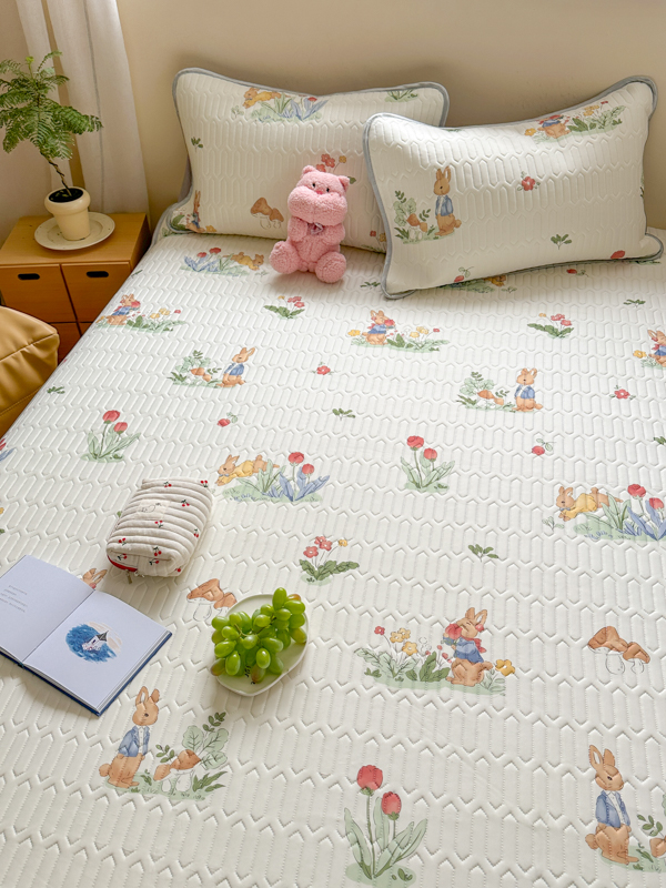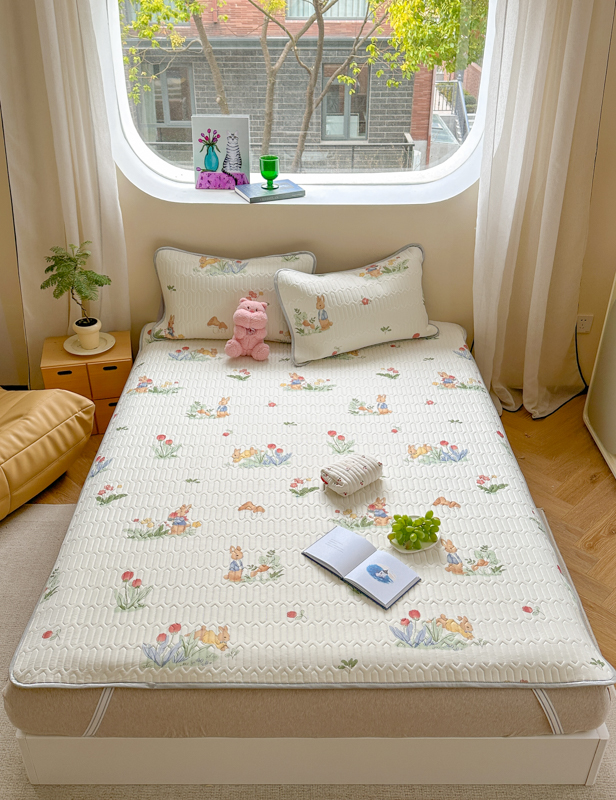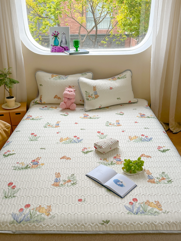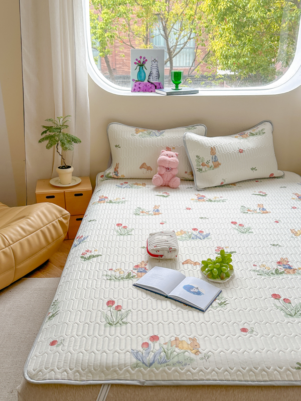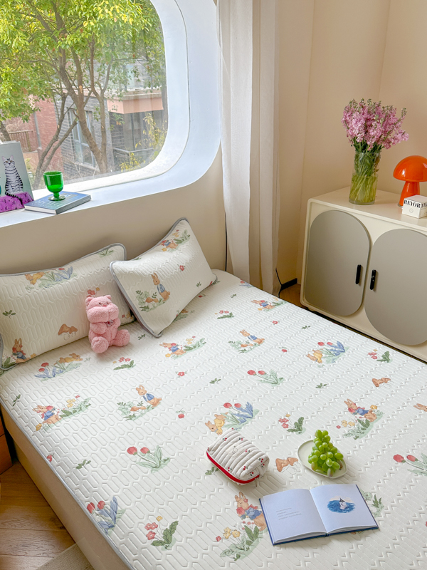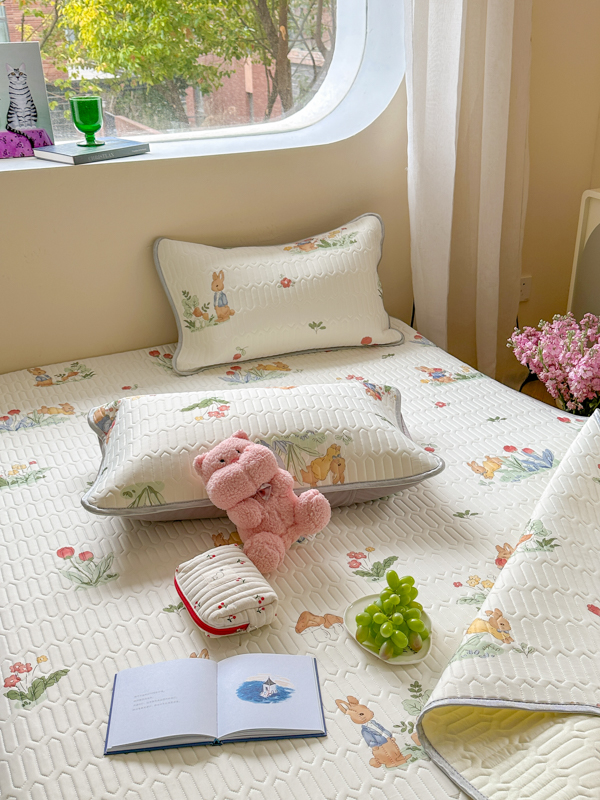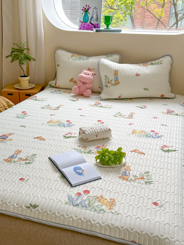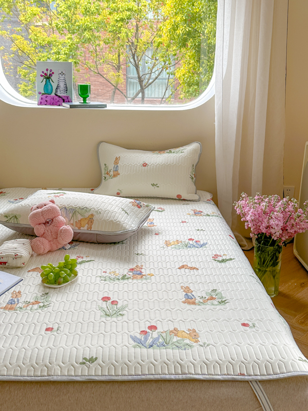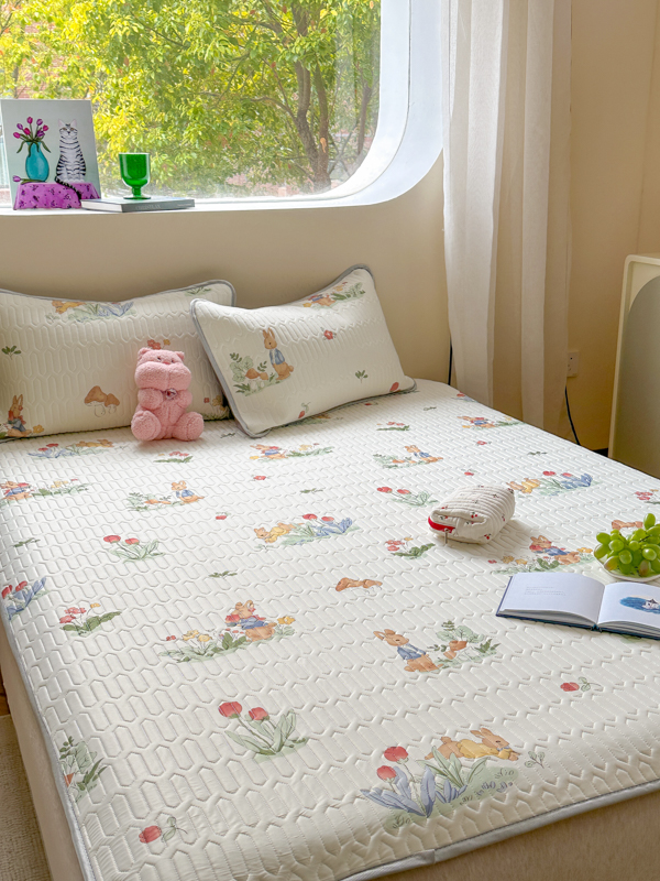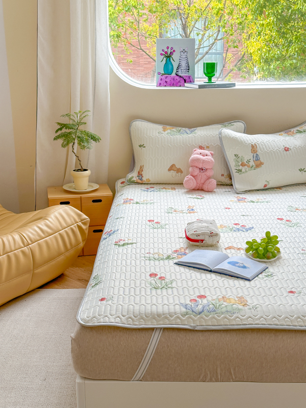 慕尚家纺 2025新款凉感丝印花乳胶凉席 花丛小兔