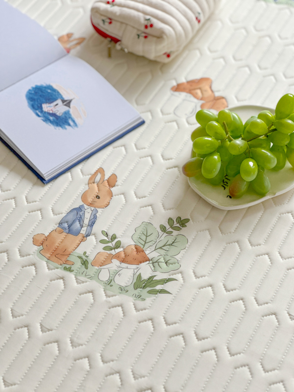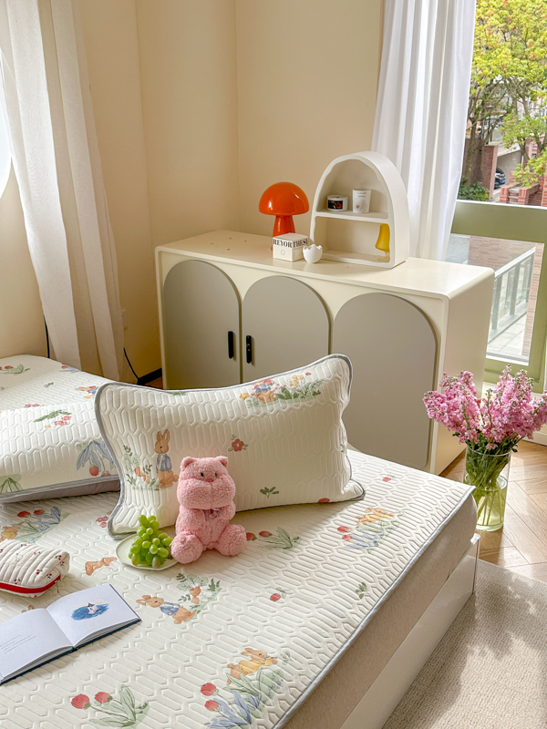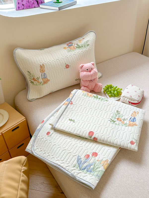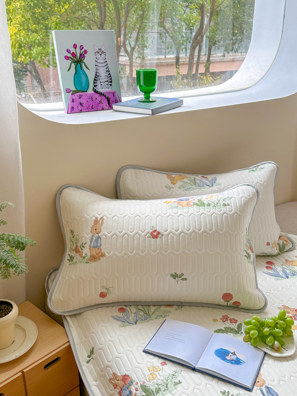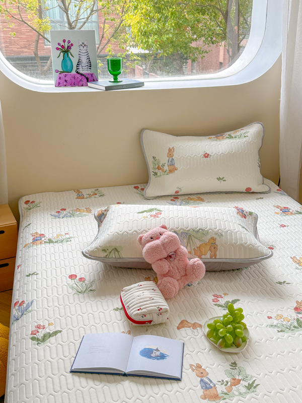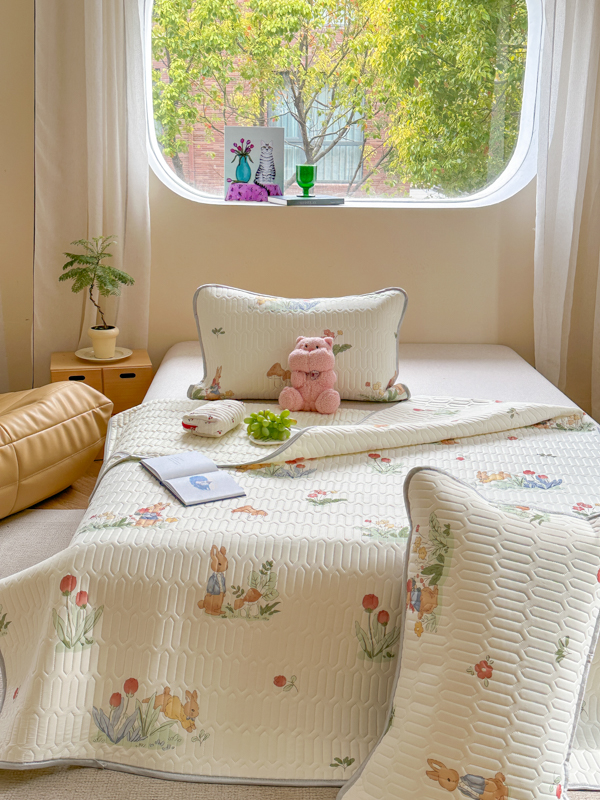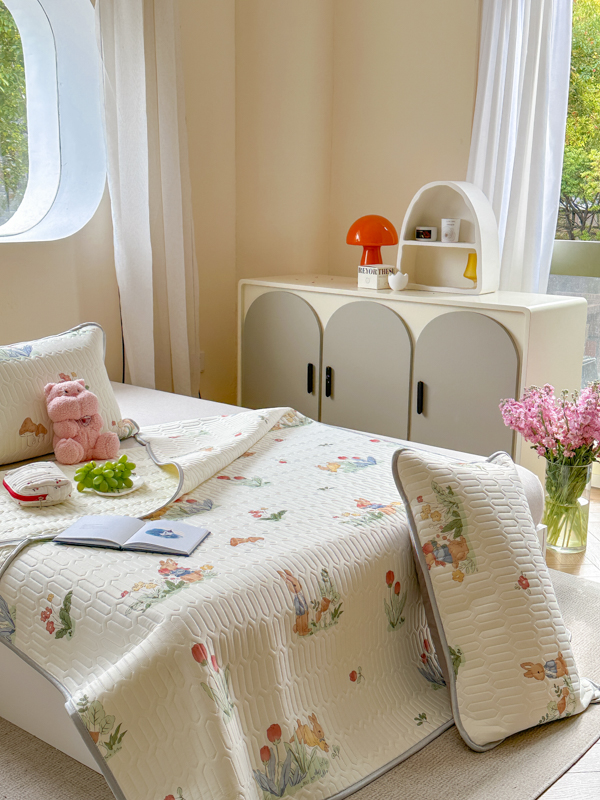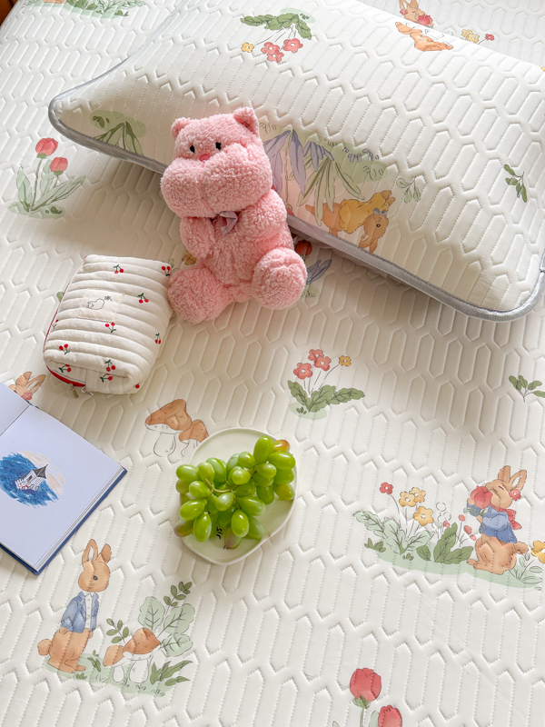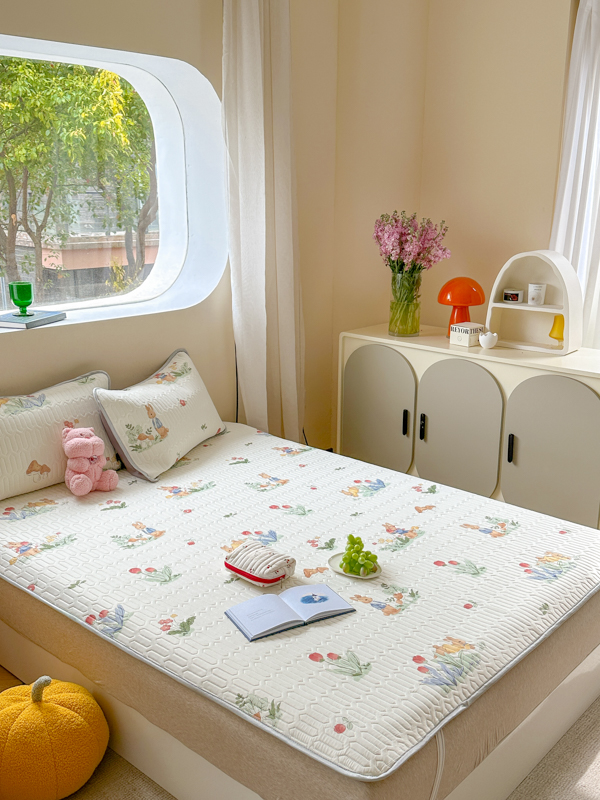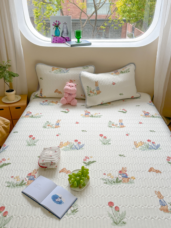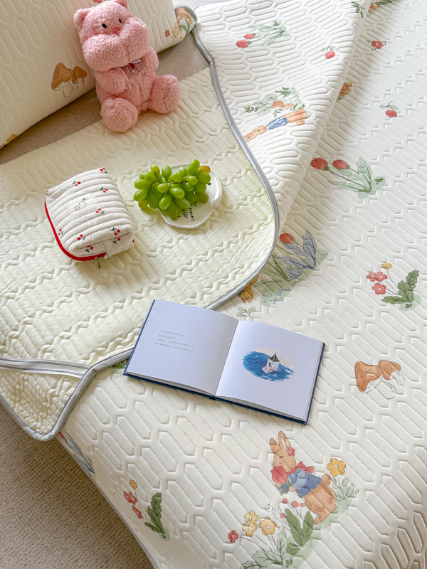 慕尚家纺 2025新款凉感丝印花乳胶凉席 花丛小兔