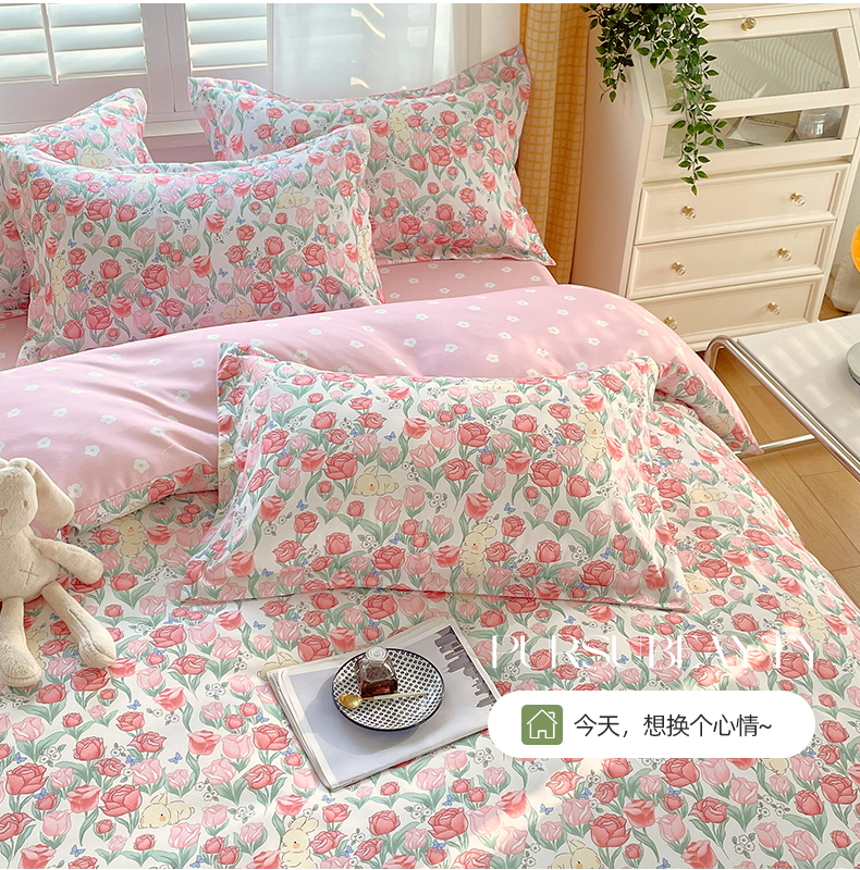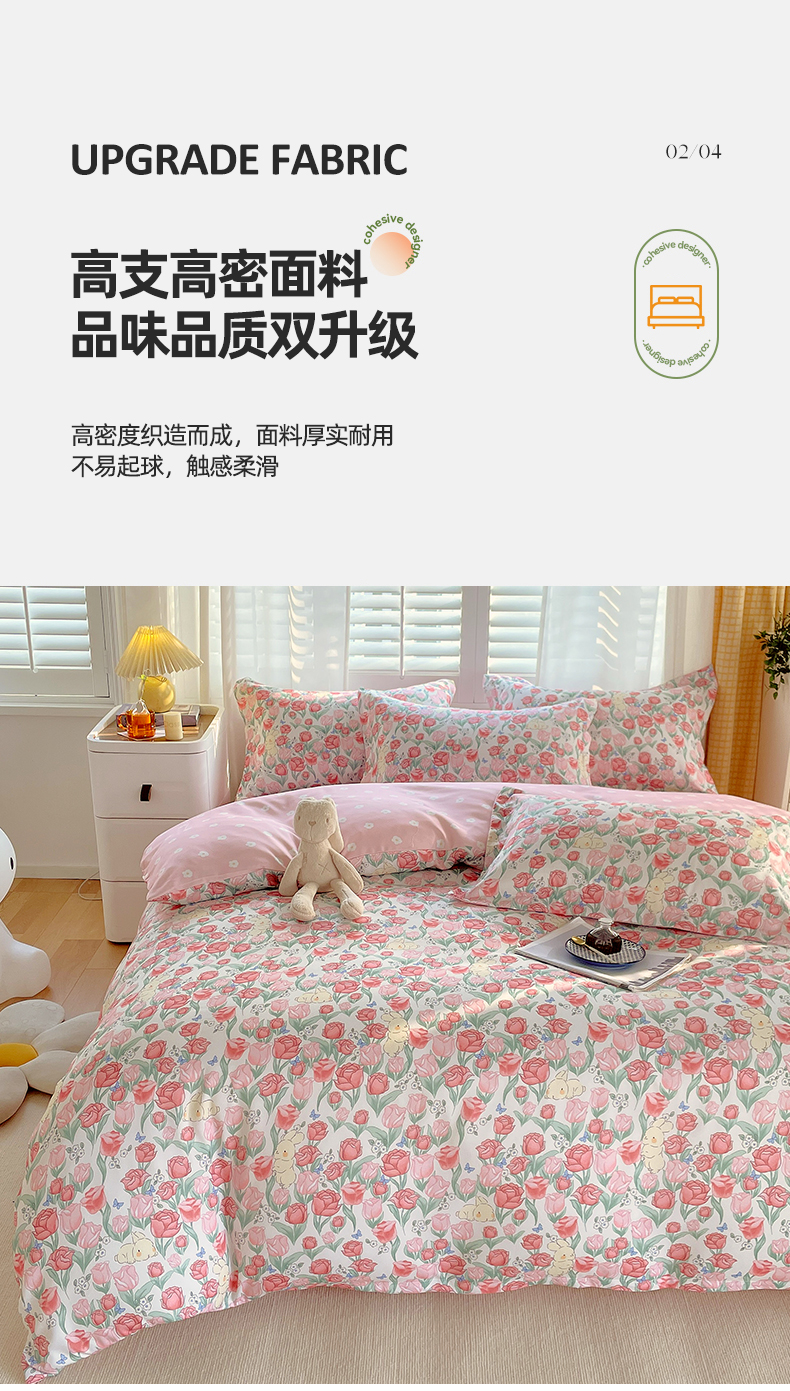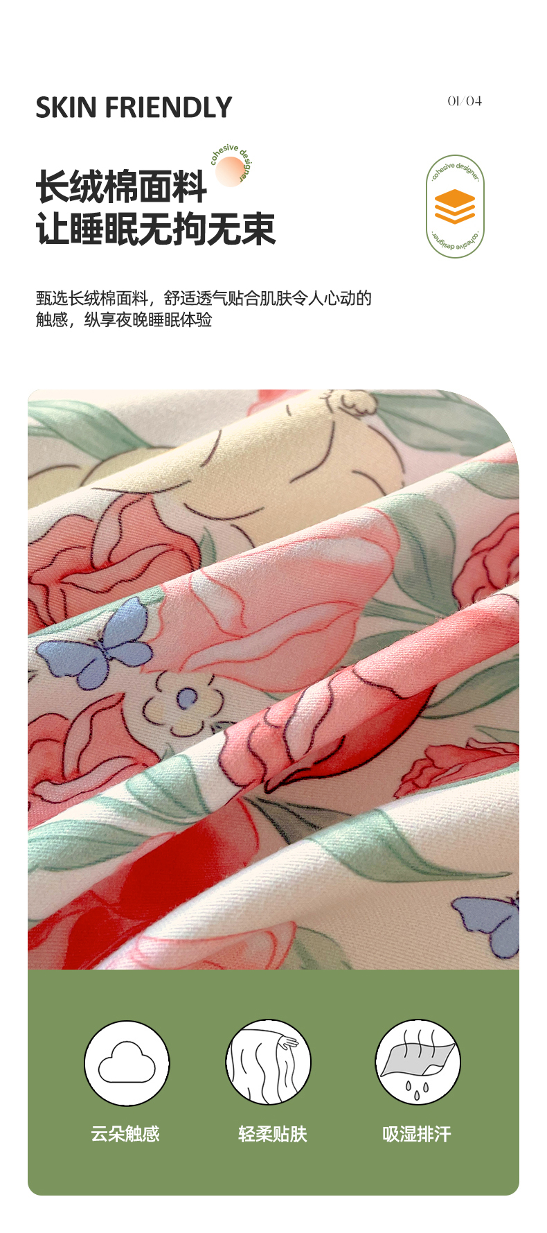 商品名称:美宜家 2025新款植物羊绒加厚斜纹磨毛单被套四件套 甜蜜兔