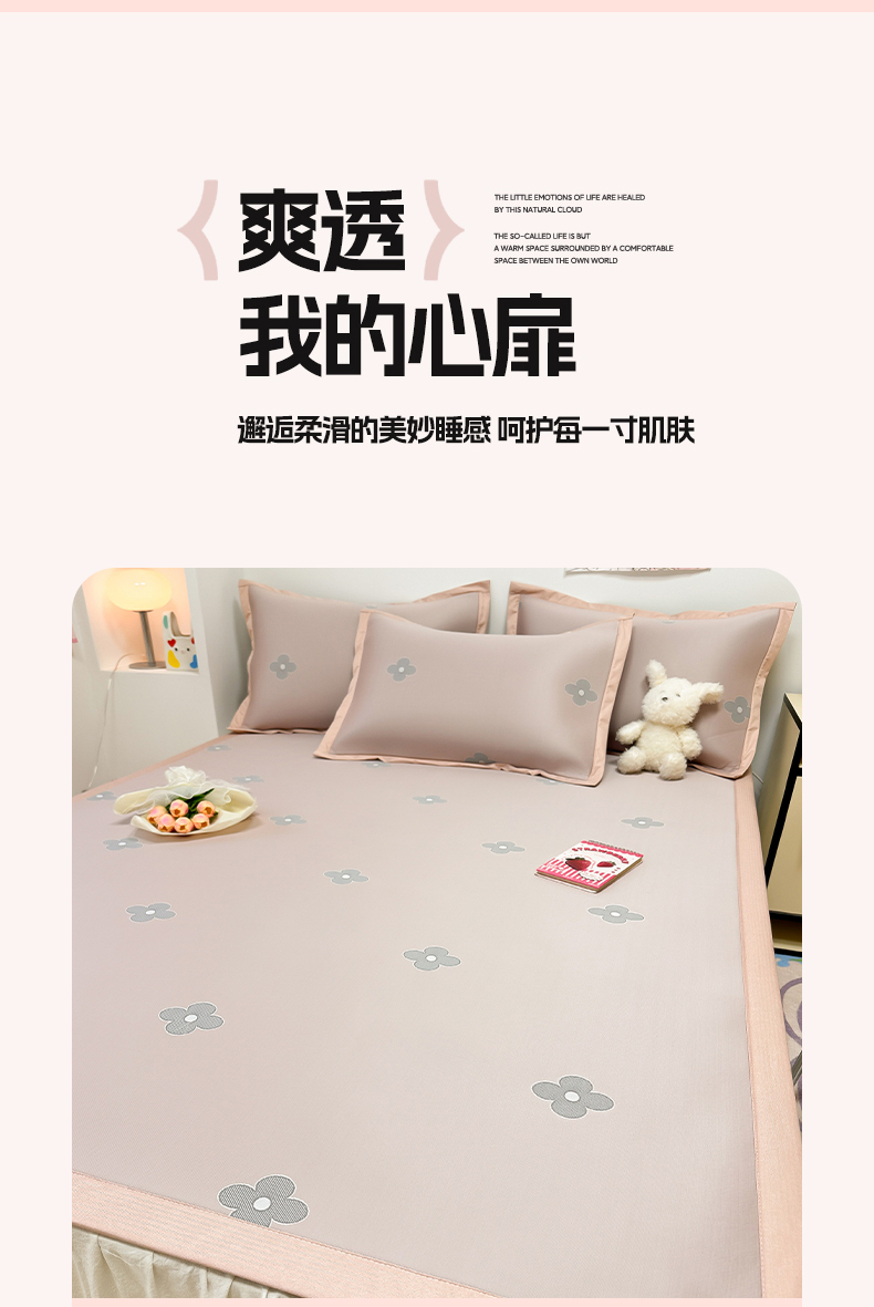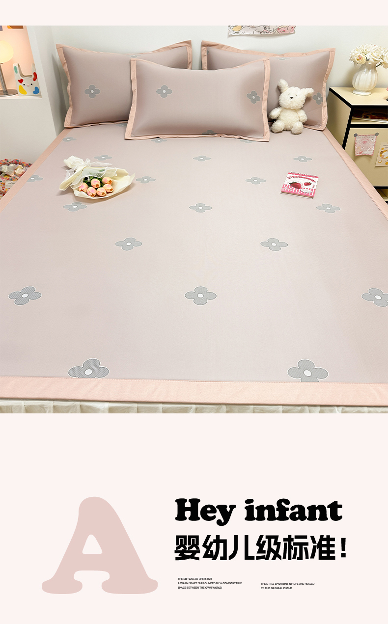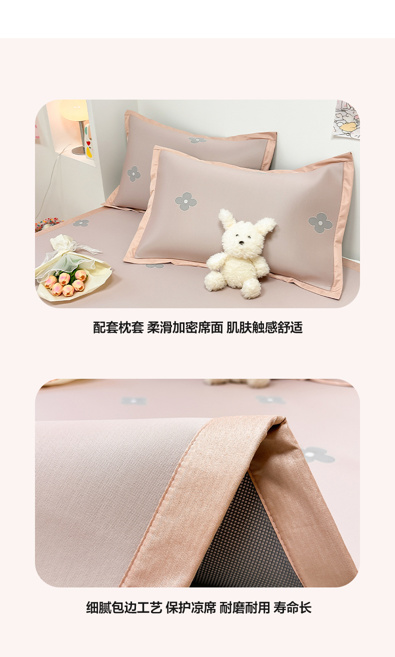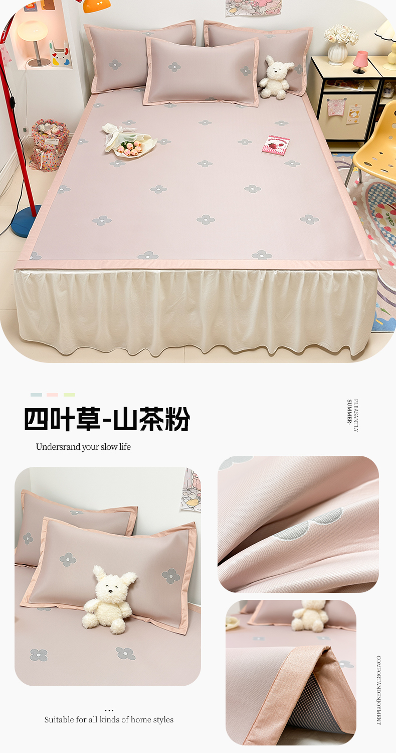 商品名称:全季家居 2024新款卡通提花系列PE凉感席 四叶草-山茶粉