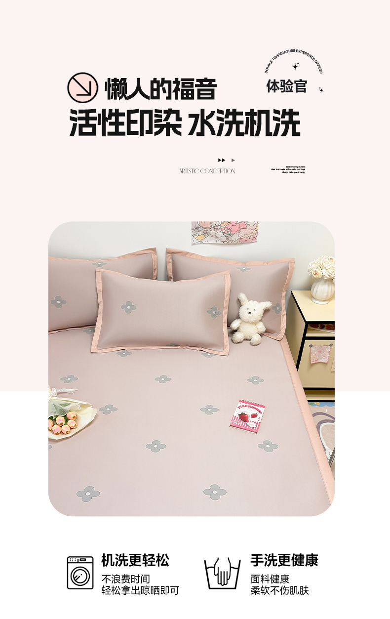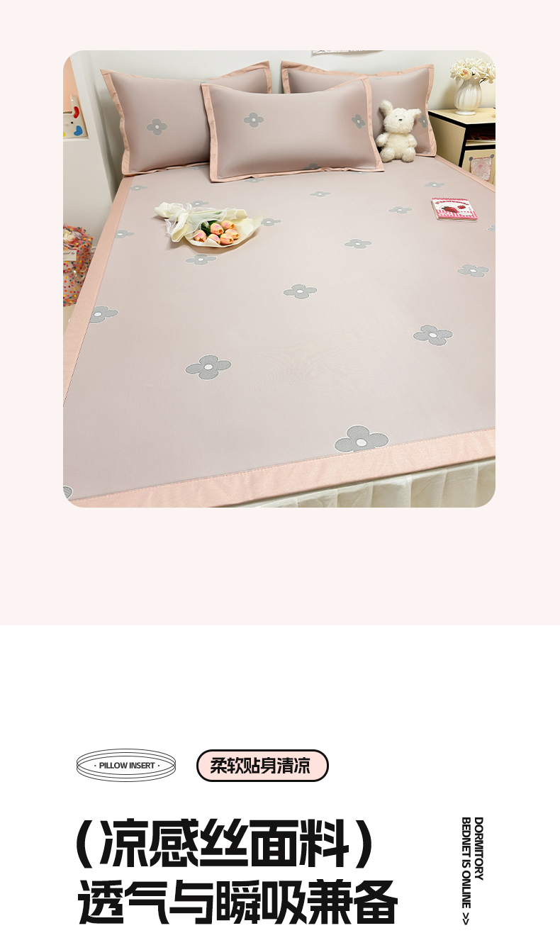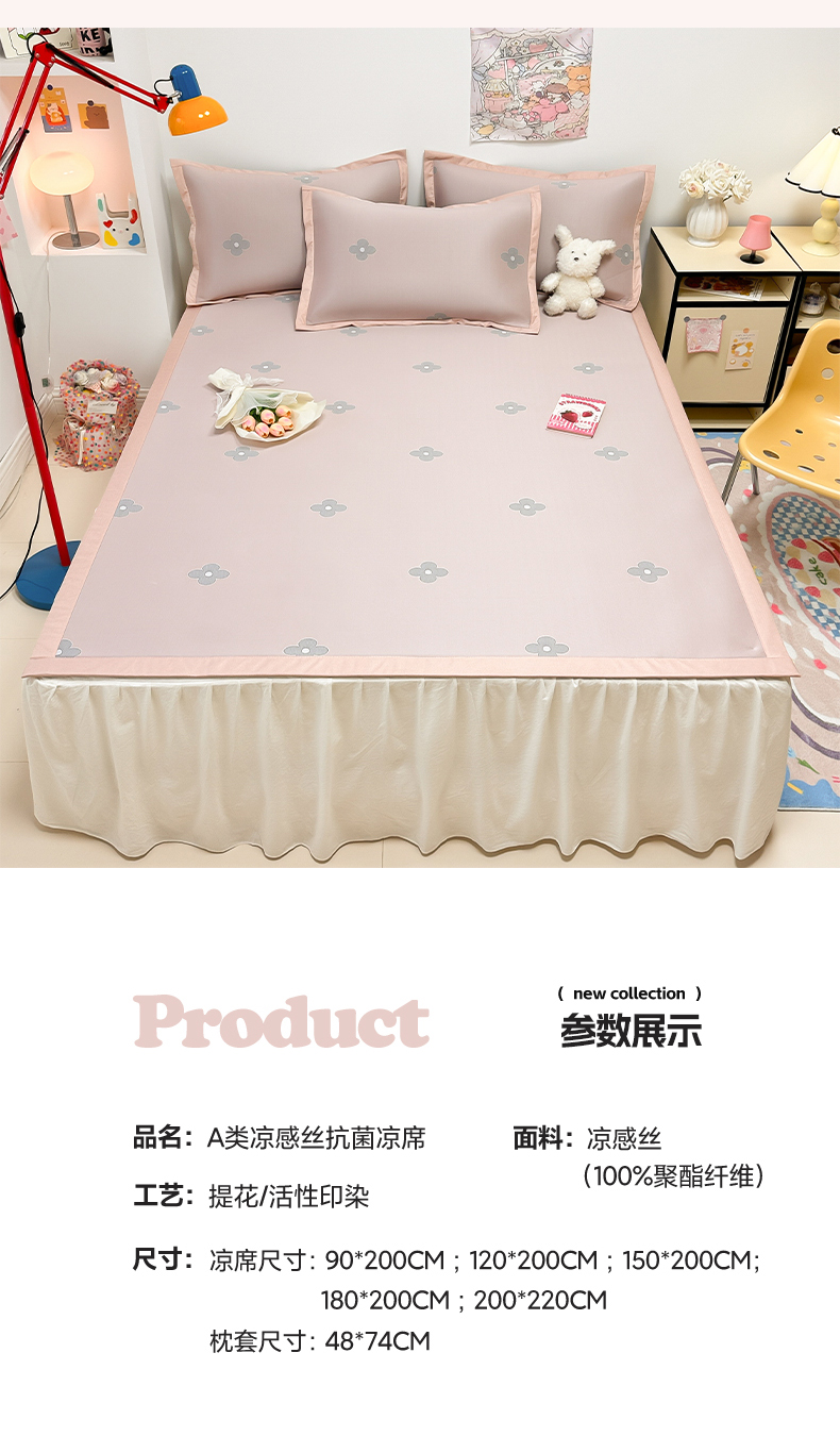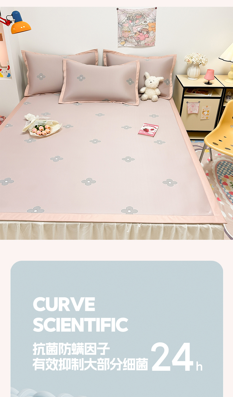 商品名称:全季家居 2024新款卡通提花系列PE凉感席 四叶草-山茶粉