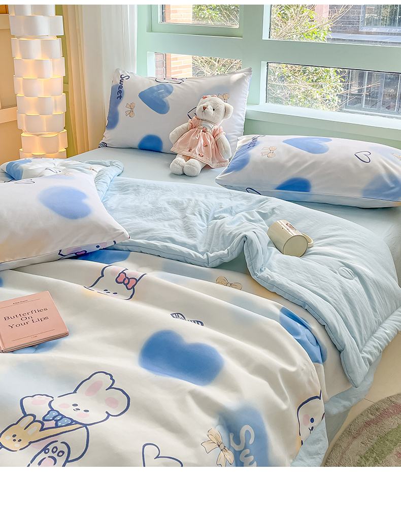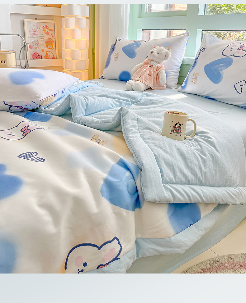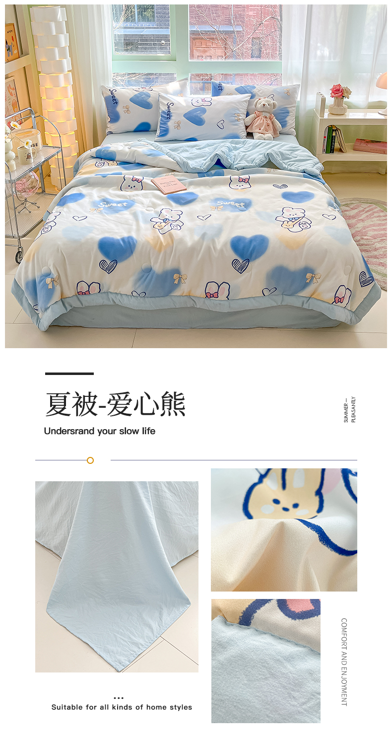 商品名称:古吉梦2024新款水洗棉小清新印花夏被被子被芯 夏被-爱心熊