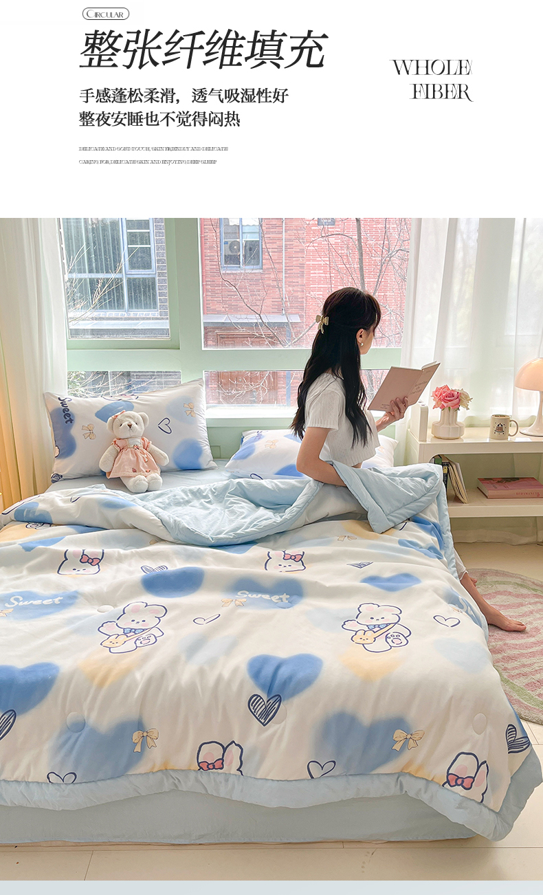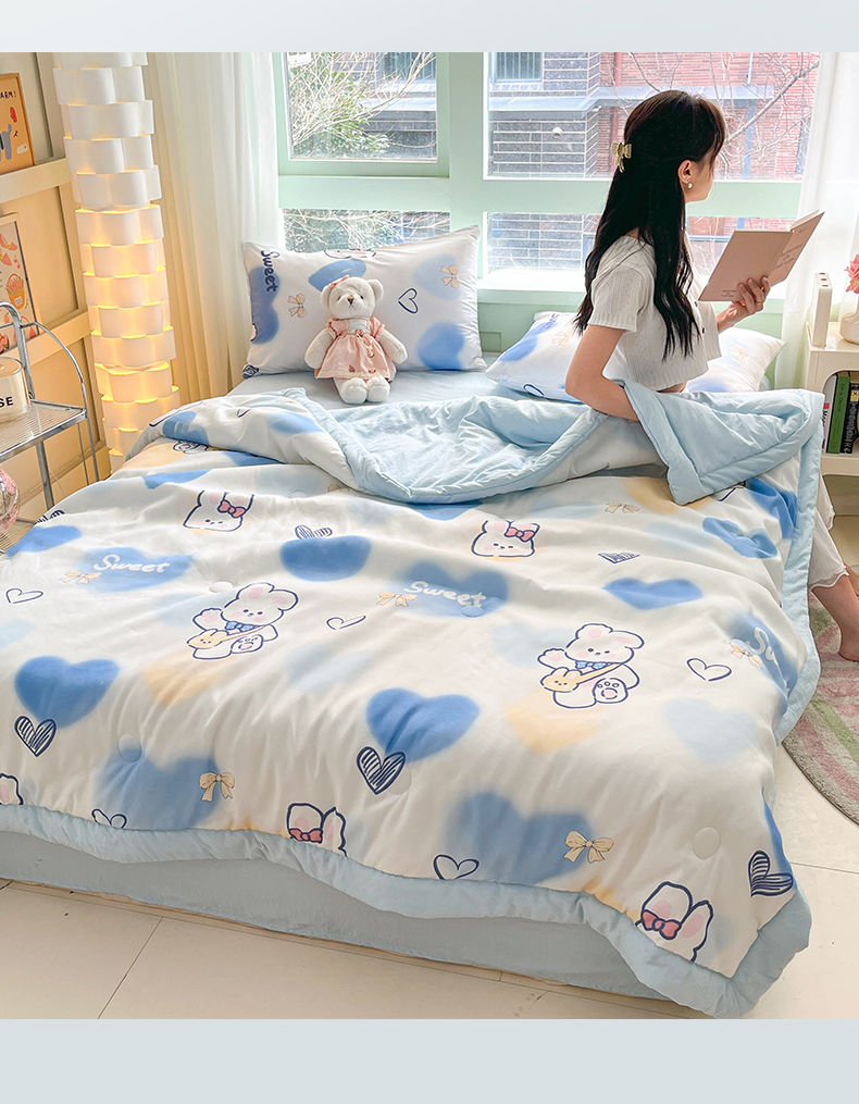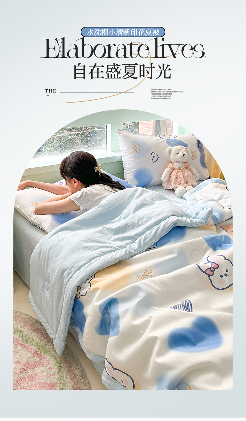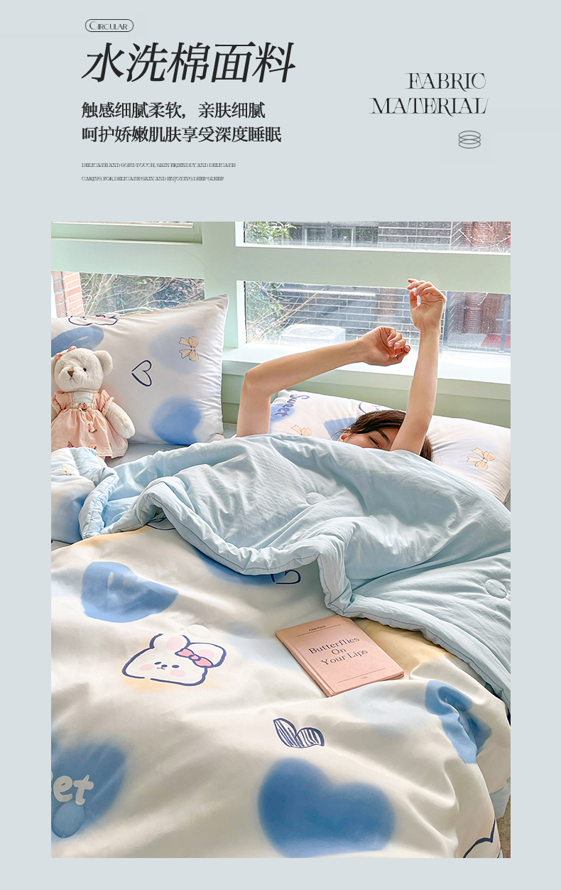 古吉梦2024新款水洗棉小清新印花夏被被子被芯 夏被-爱心熊