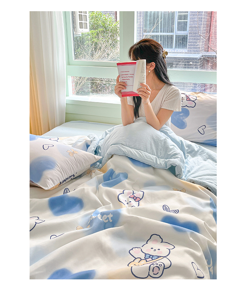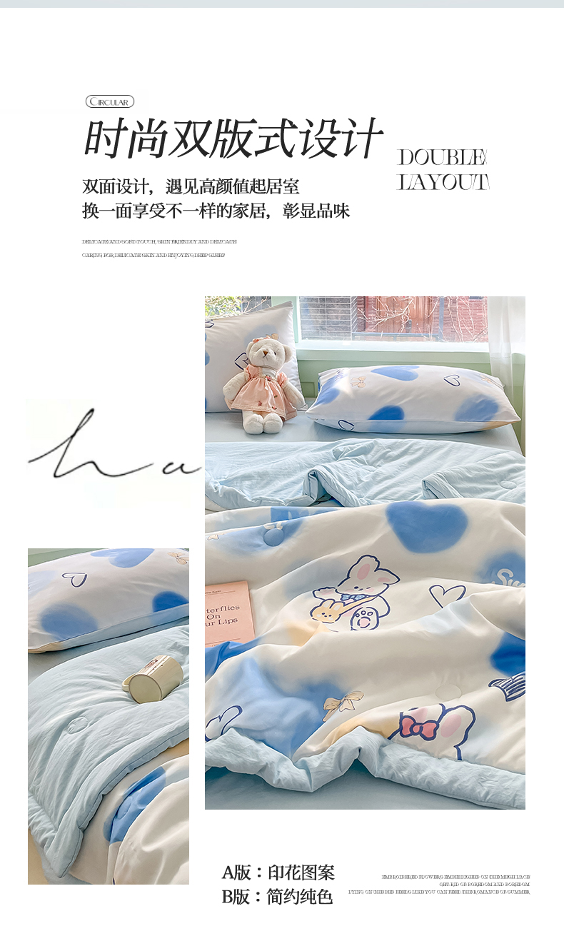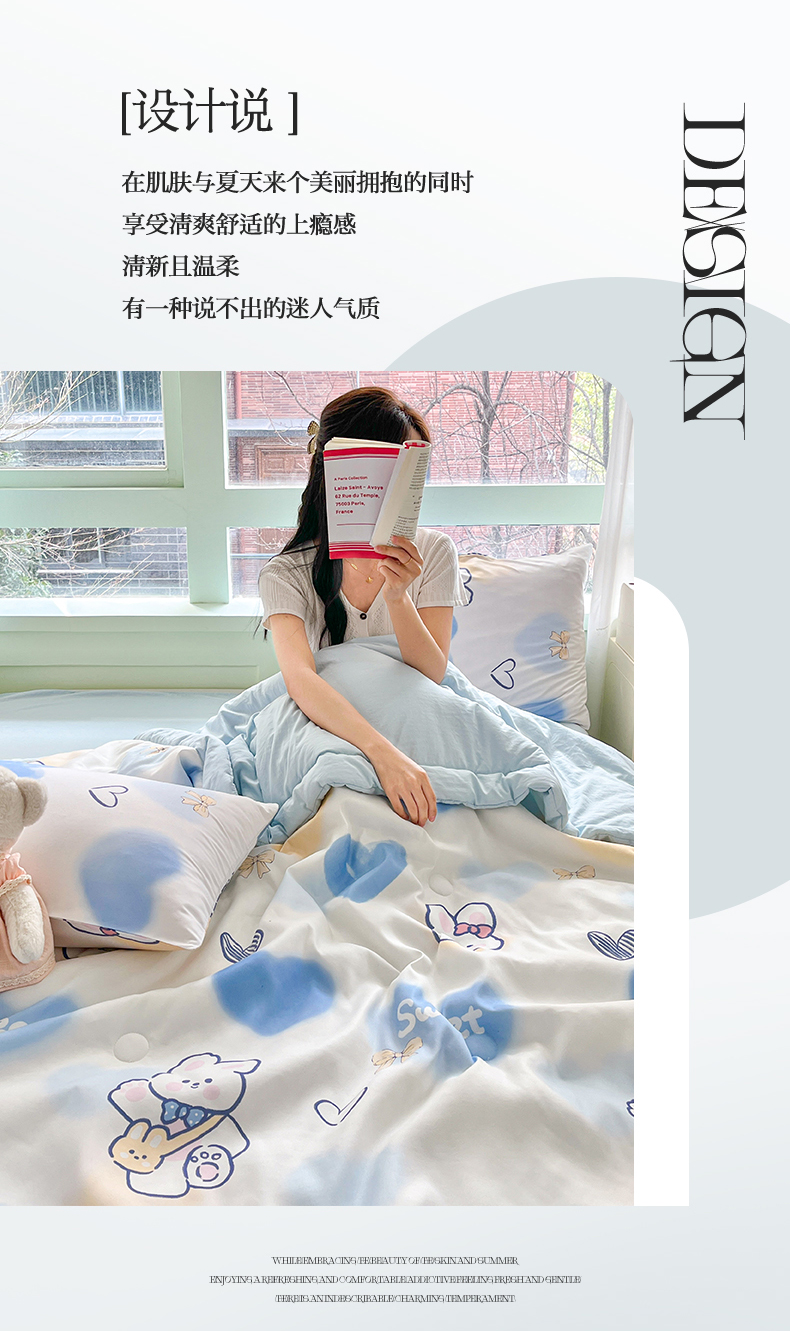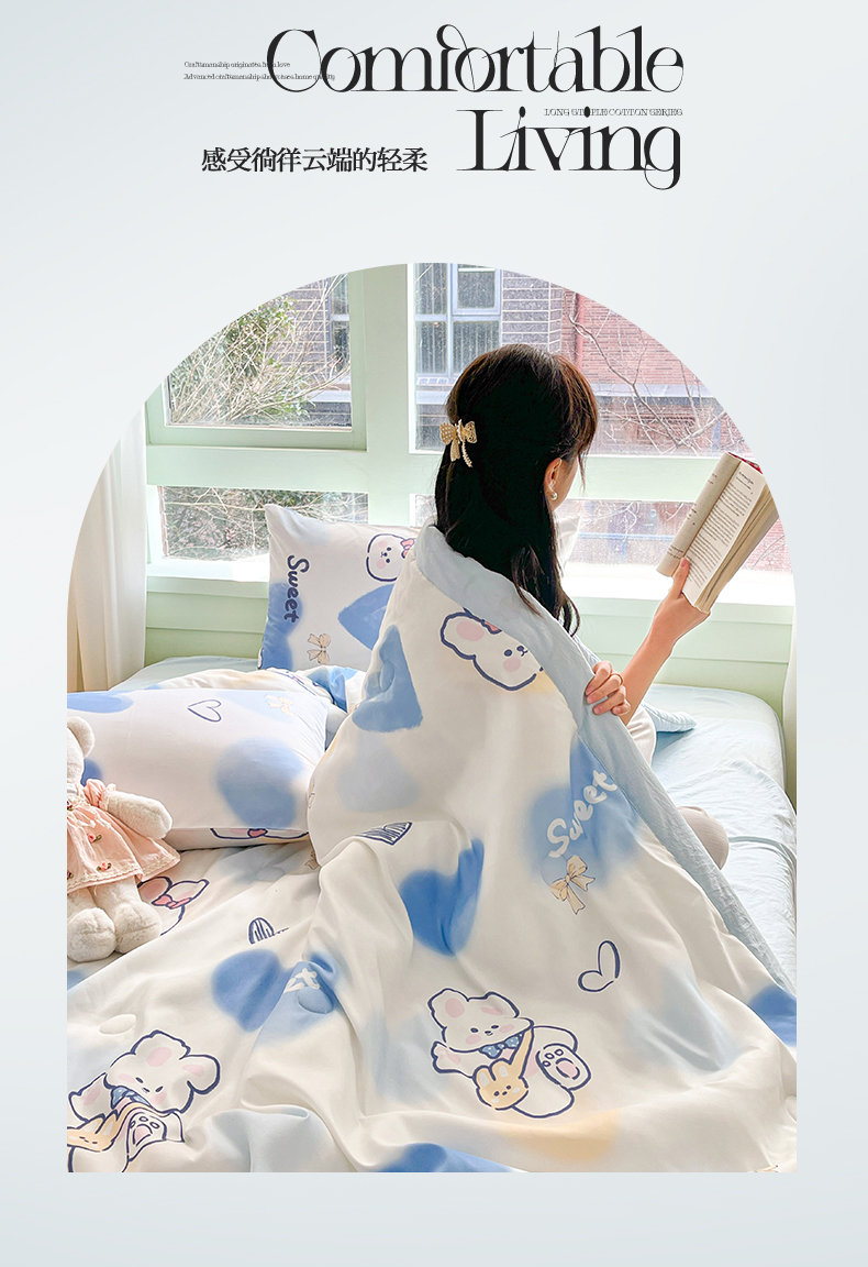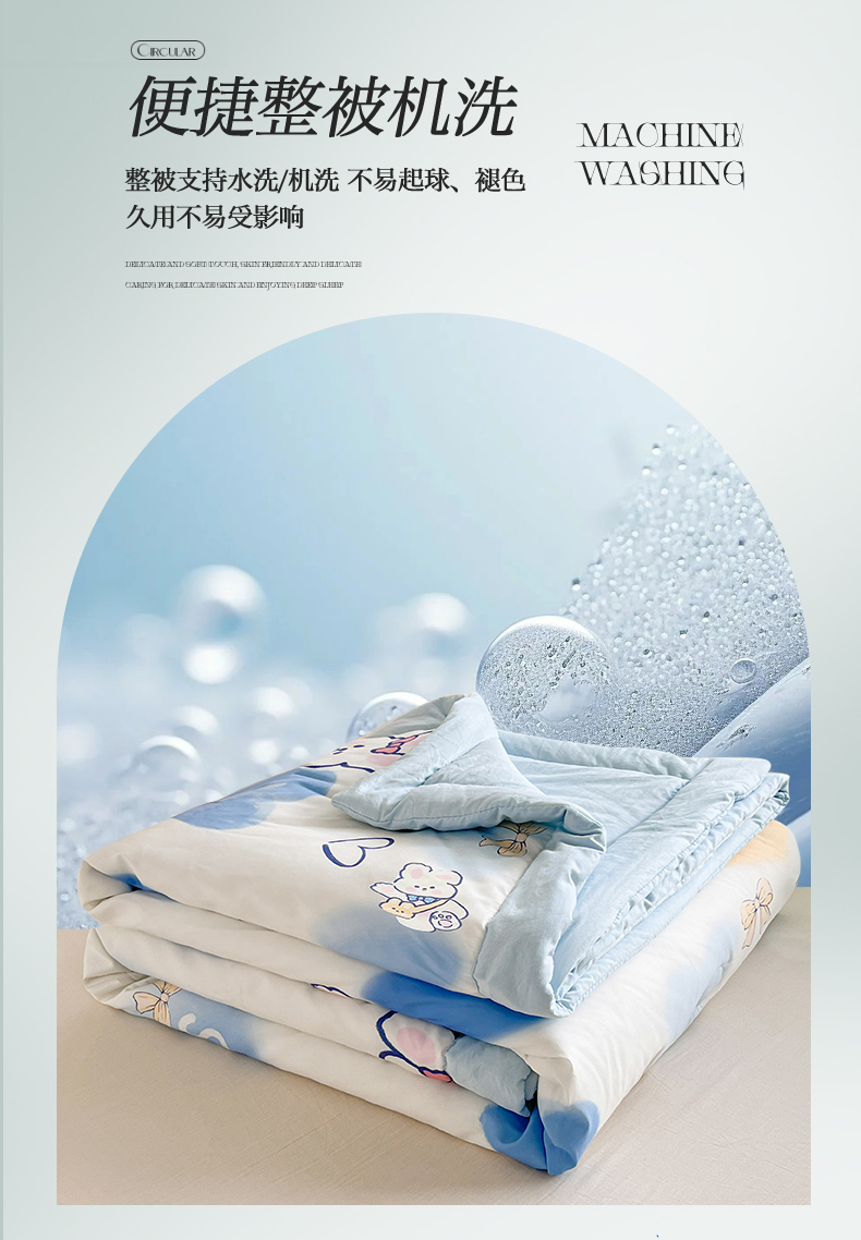 古吉梦2024新款水洗棉小清新印花夏被被子被芯 夏被-爱心熊