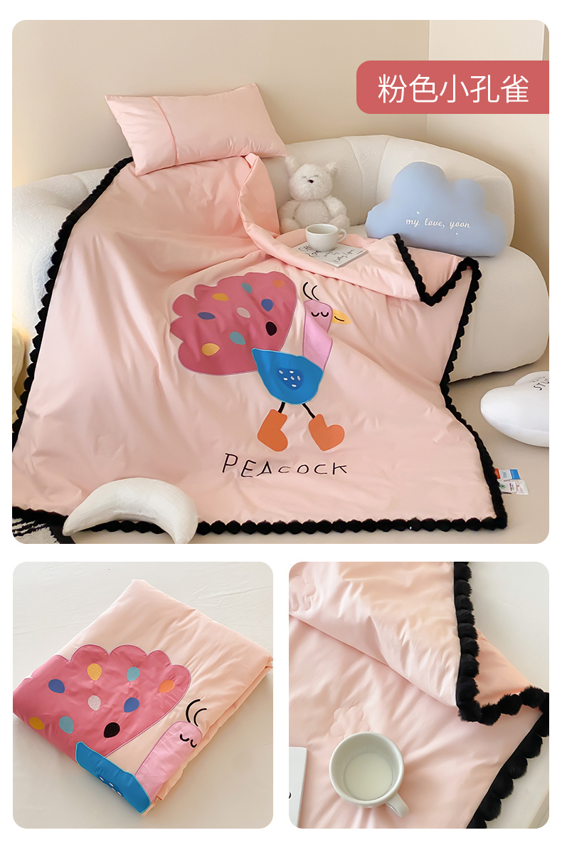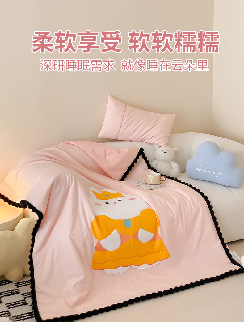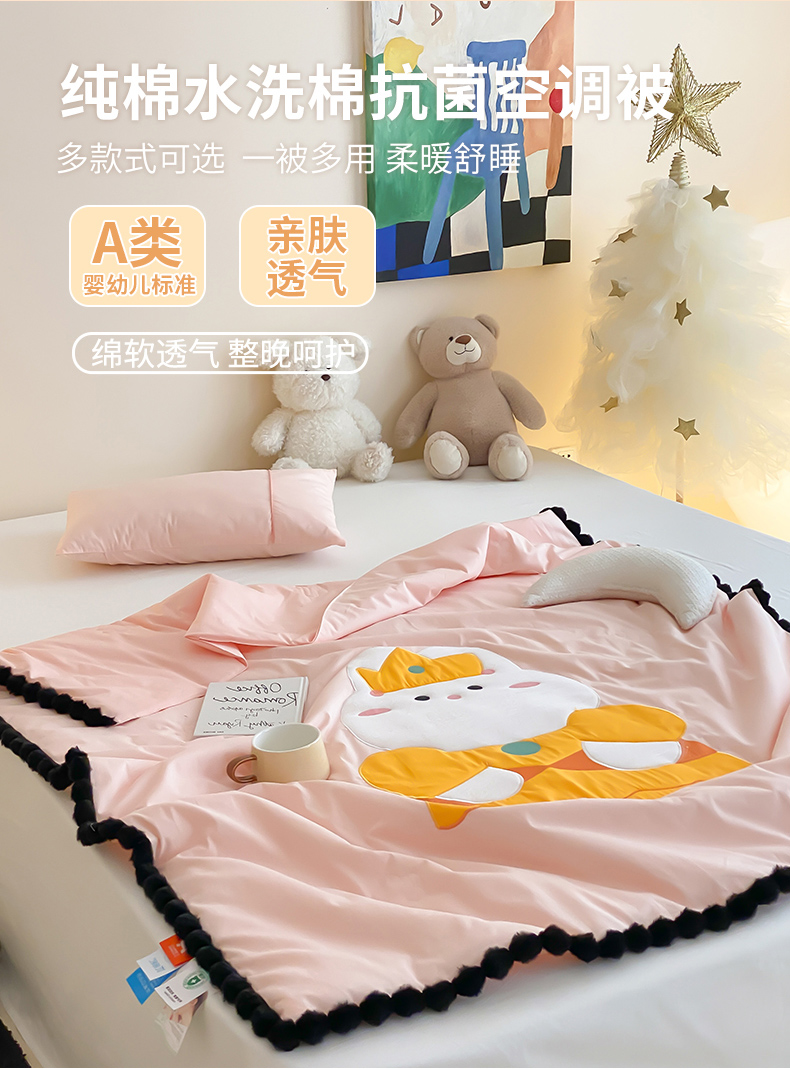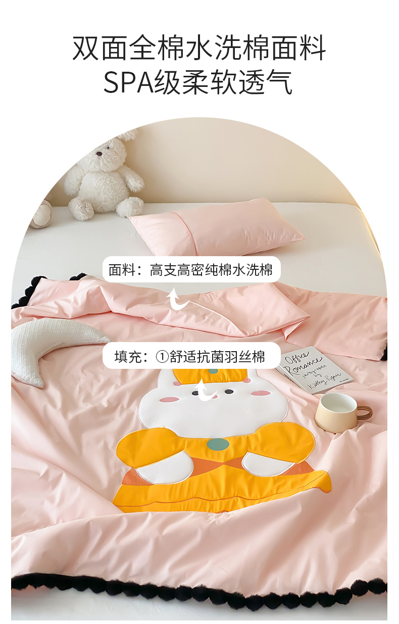 喜多兔儿童家纺 2024新品全棉水洗棉夏被空调被小安馨被子 粉色小兔子