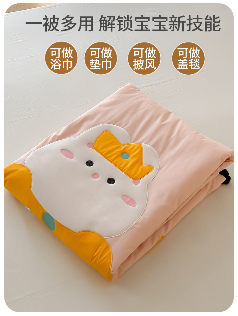 (总)喜多兔儿童家纺 2025春夏新款小软萌贴布绣纱布被,粉色软萌小兔,卡其色软萌小熊,蓝色软萌小象,绿色软萌恐龙,组合图仅供展示