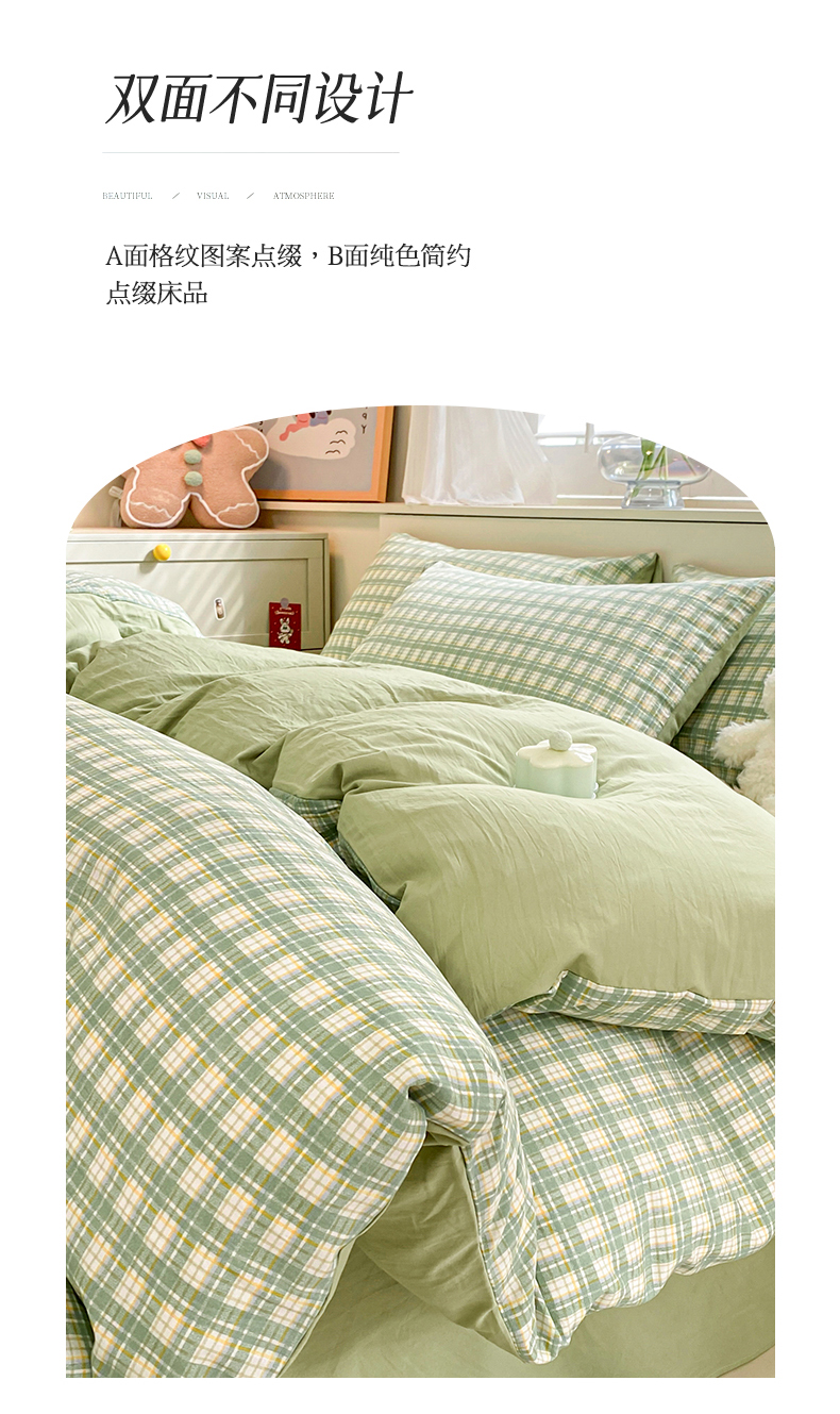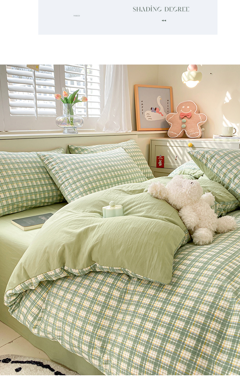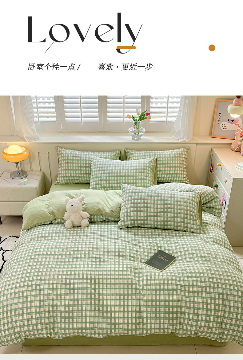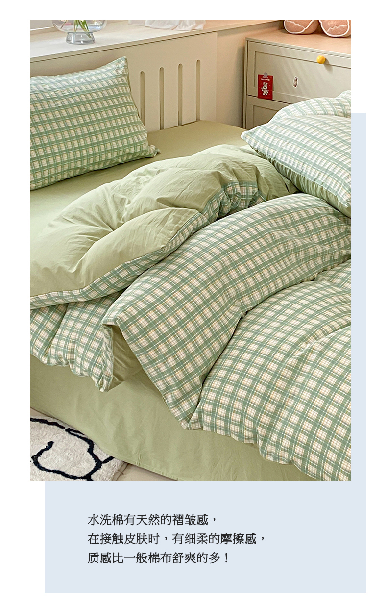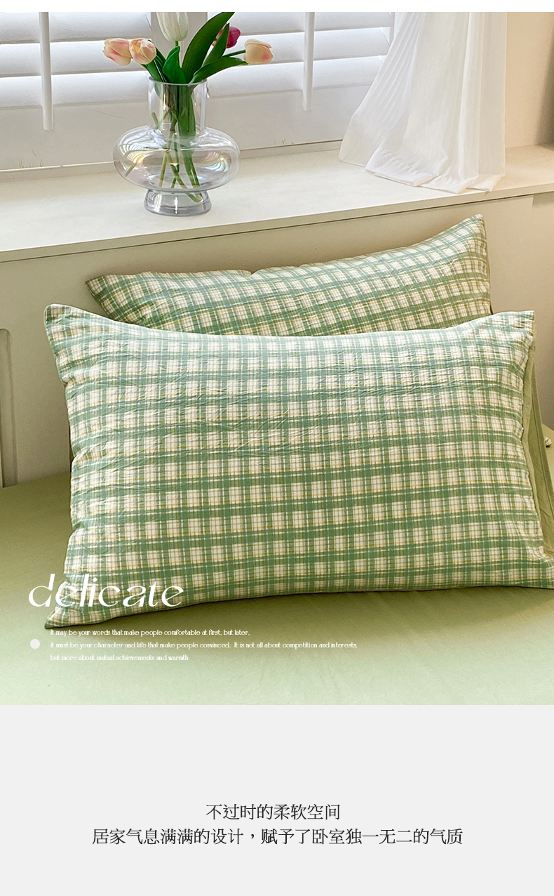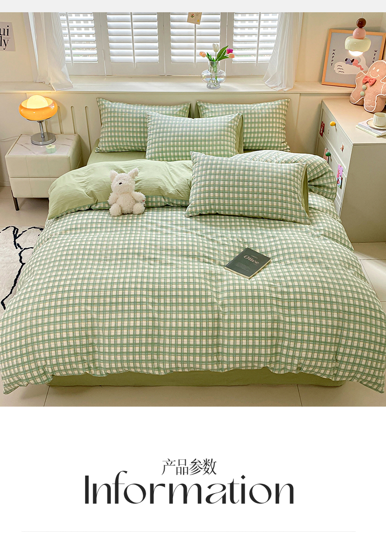 当前位置: 91家纺网 > 商品网购 > 床品套件 > 四件套 > 水洗棉四件套 > 盛秋家纺 2025新款亲肤格子水洗棉四件套 抹茶+果绿