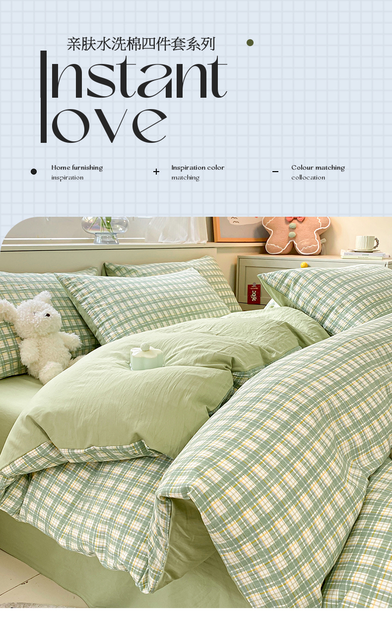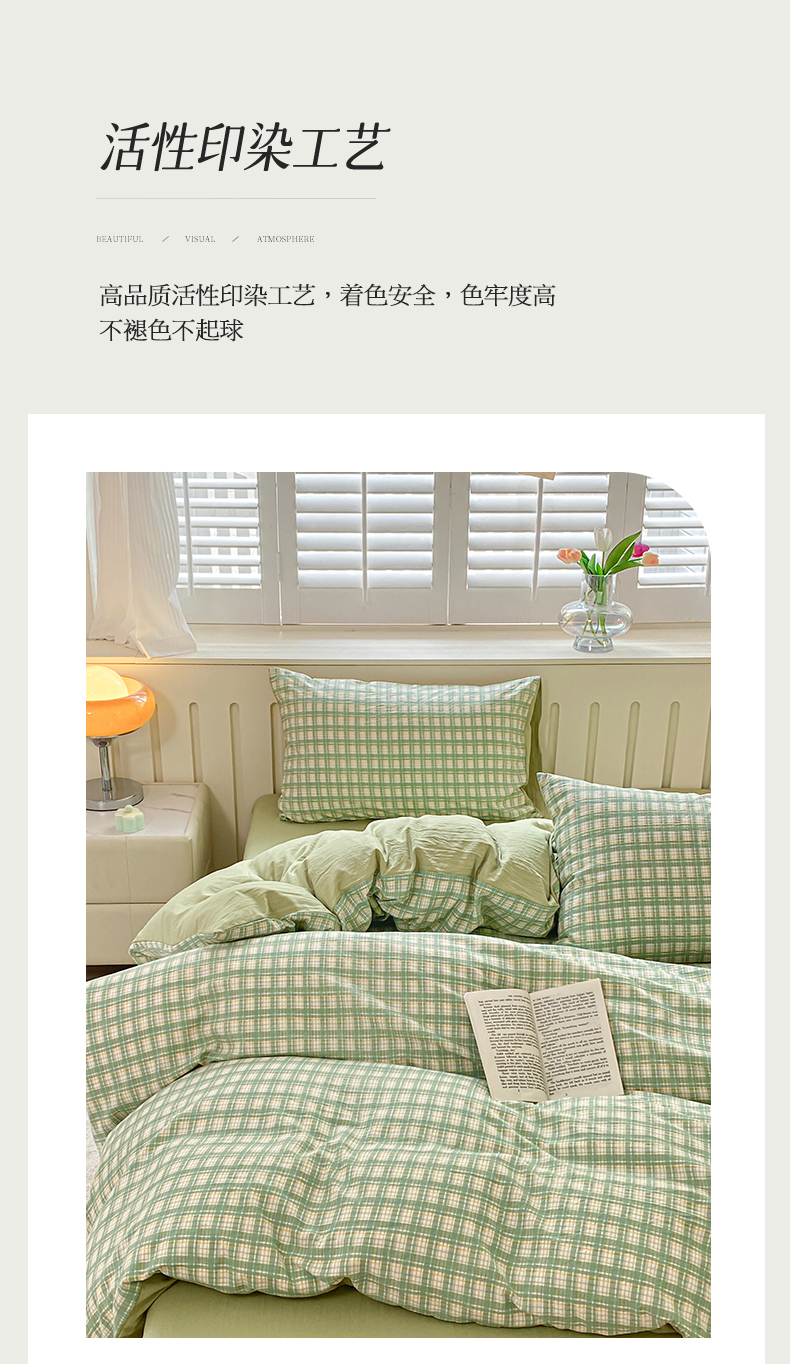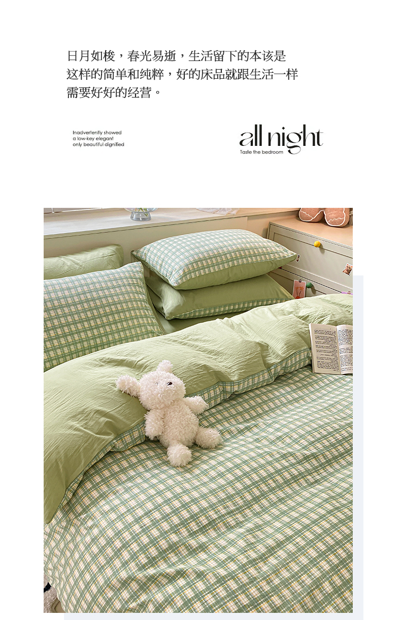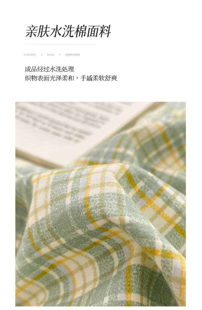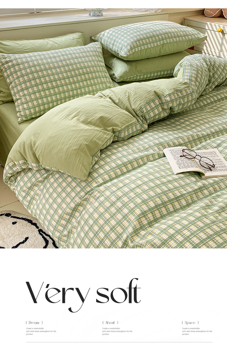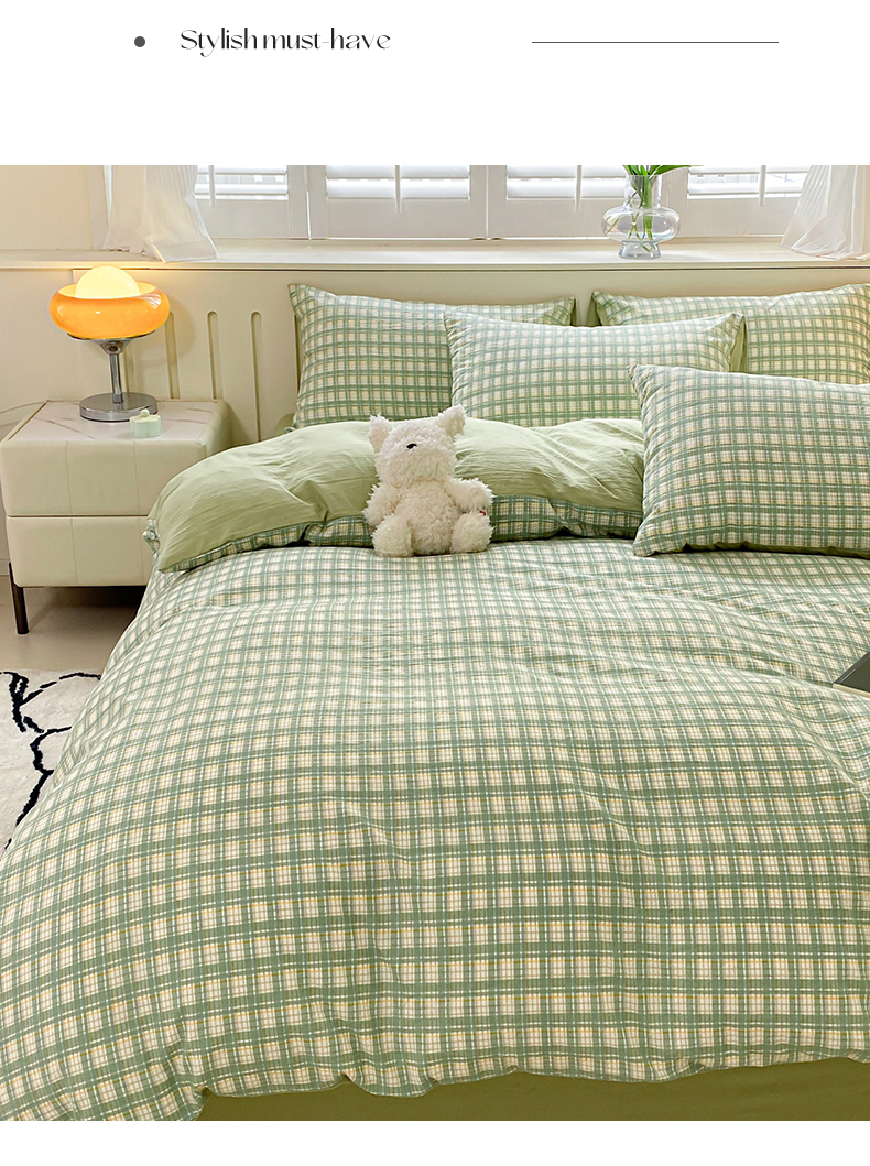 当前位置: 91家纺网 > 商品网购 > 床品套件 > 四件套 > 水洗棉四件套 > 盛秋家纺 2025新款亲肤格子水洗棉四件套 抹茶+果绿