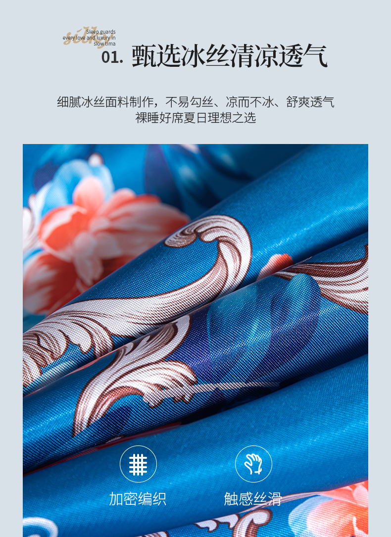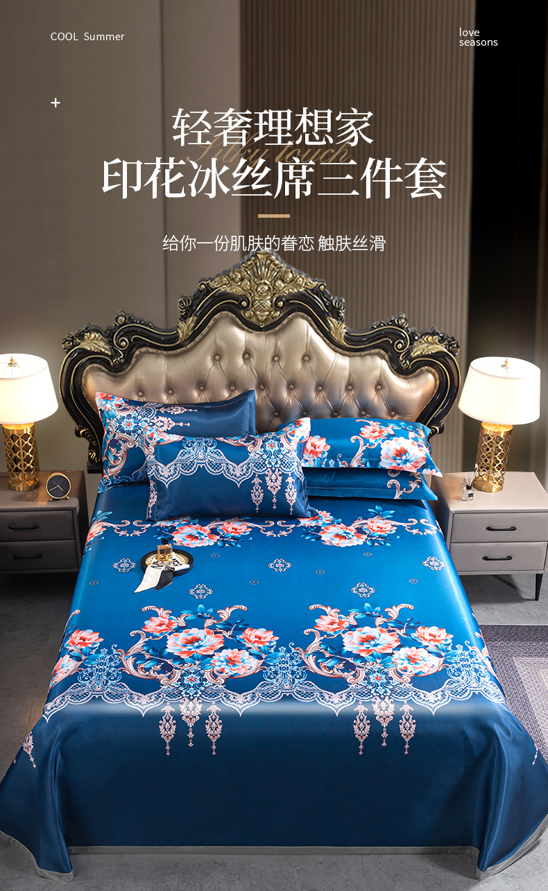 商品名称:梵克保罗 2024新款印花冰丝凉席套件-系列一 曼妙花语