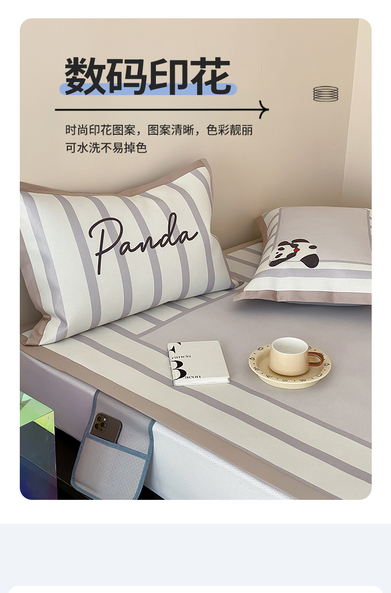 商品名称:(总)三味舒屋2025新款抗菌大版数码印花冰丝席 (新升级7A抗菌)床席款