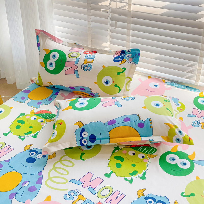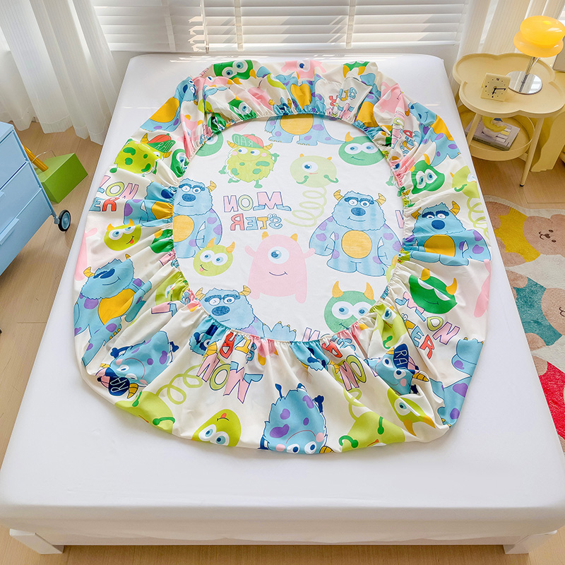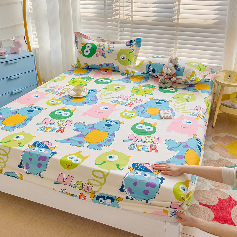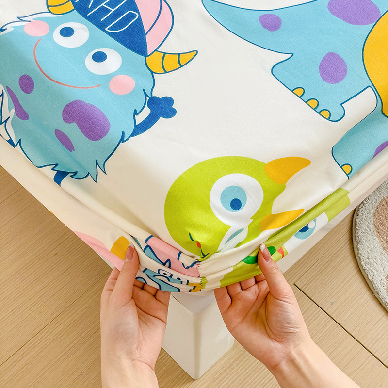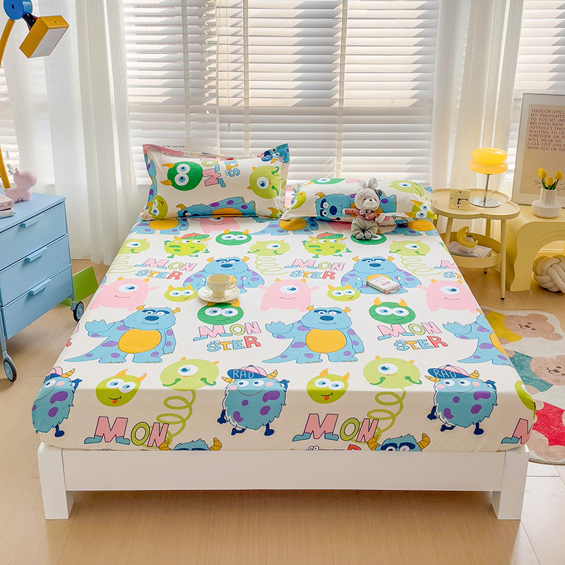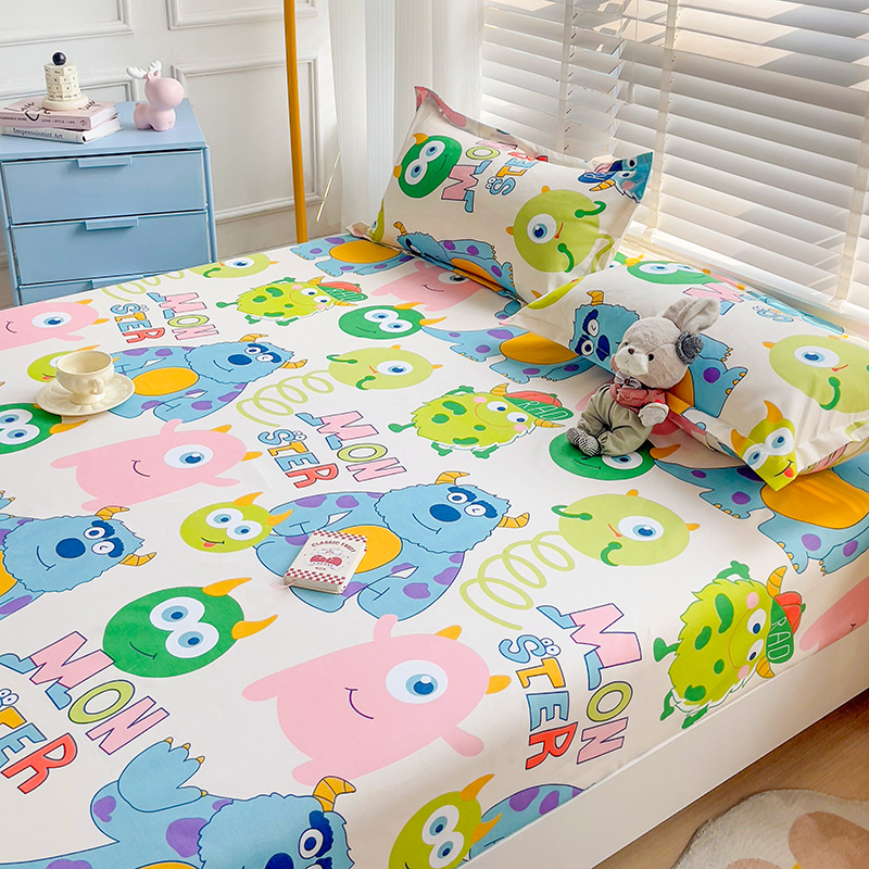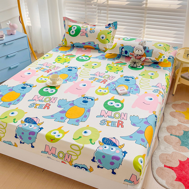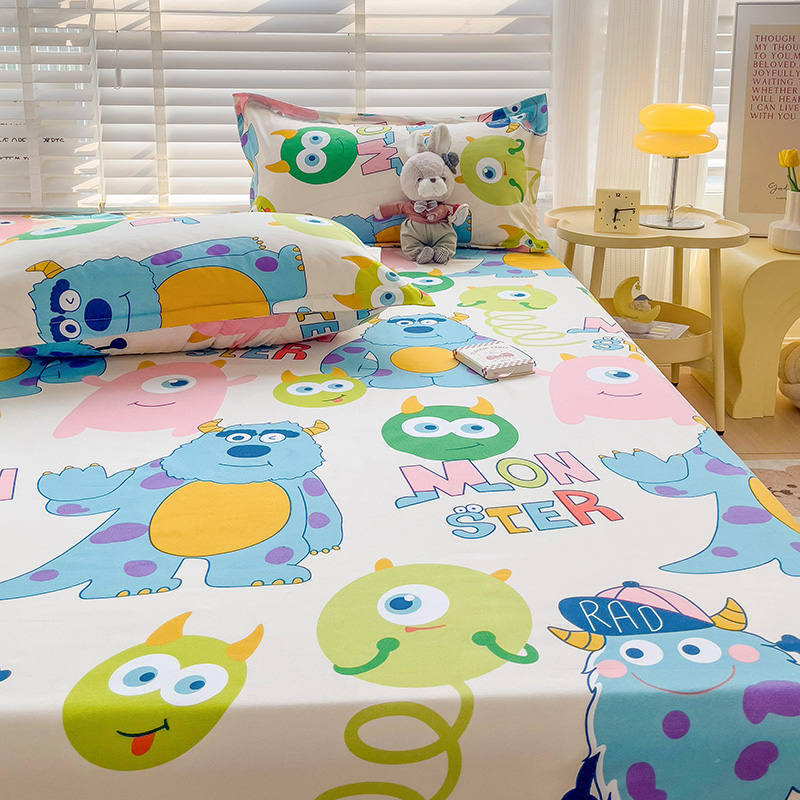 楠沐家纺 2025新款亲肤印花芦荟棉水洗棉床笠系列 怪兽大学