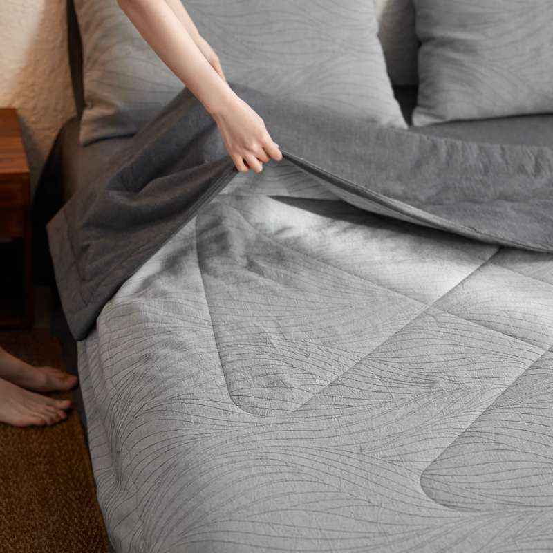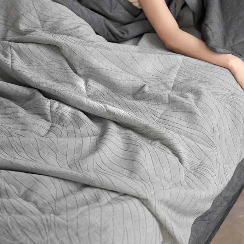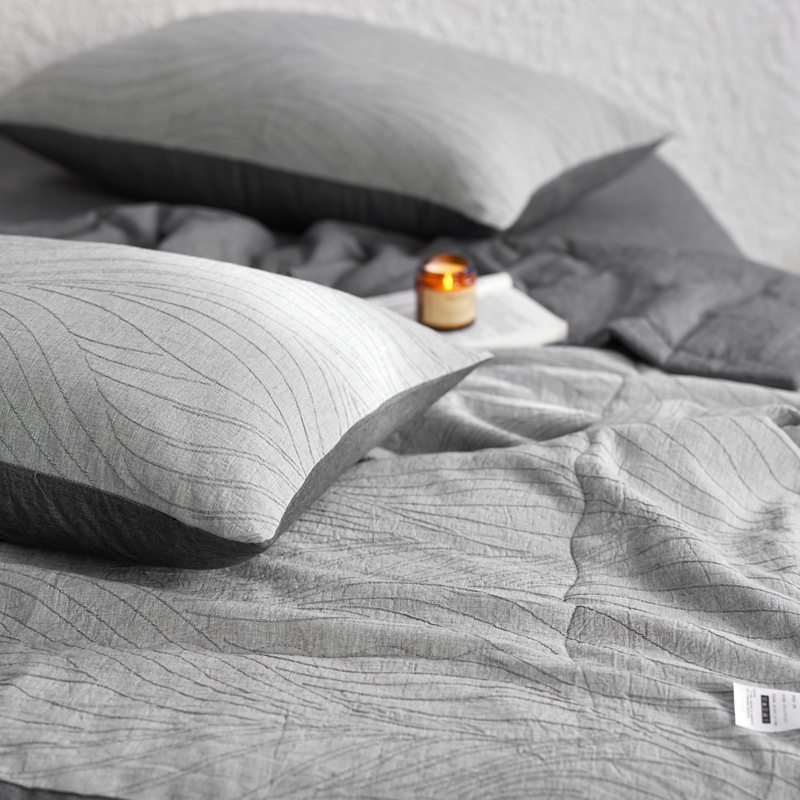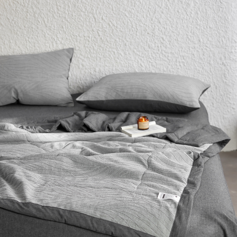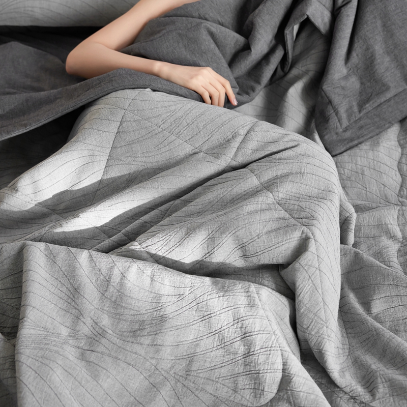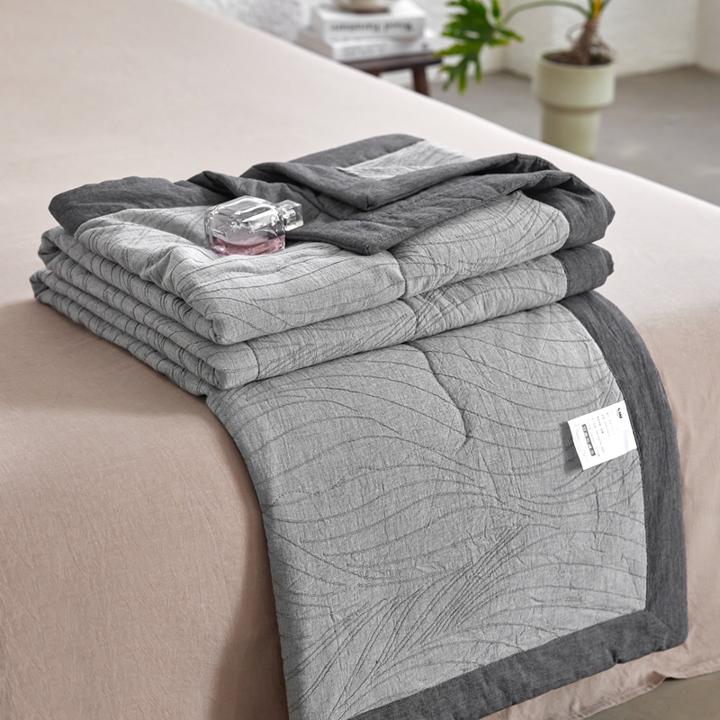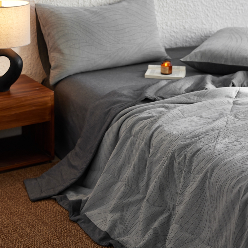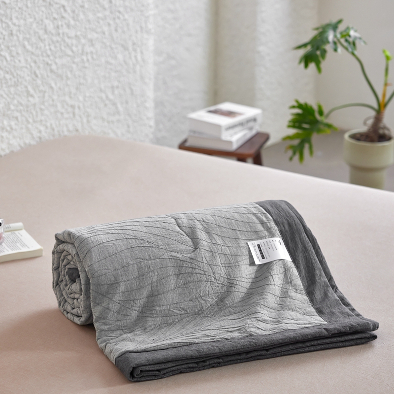 2024新款色织双层纱提花波浪三系列夏被及夏被四件套--乱纹波浪 乱纹-深灰