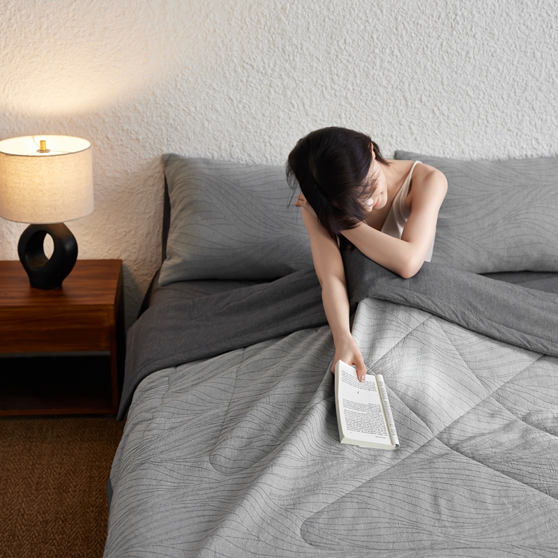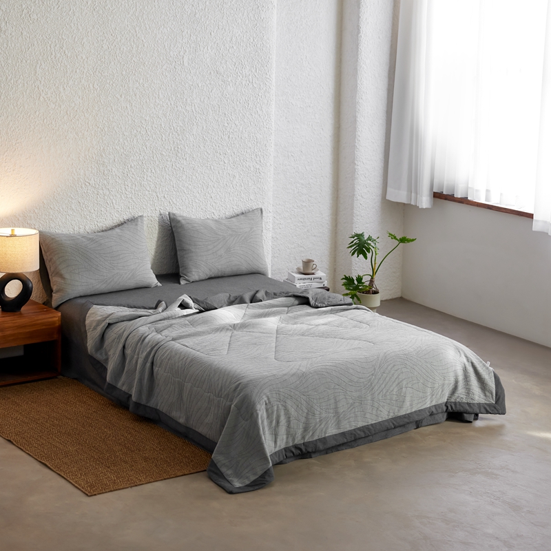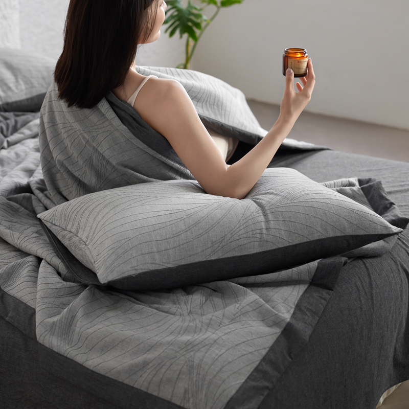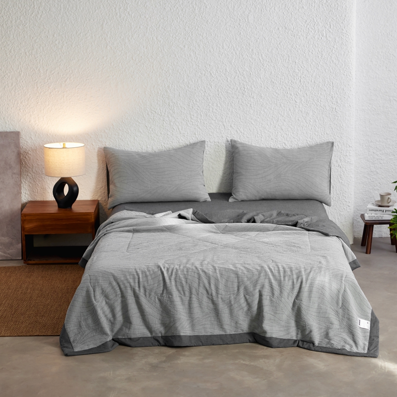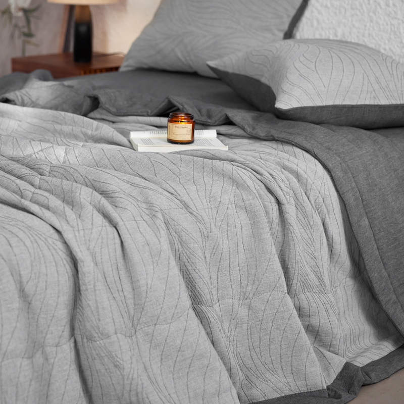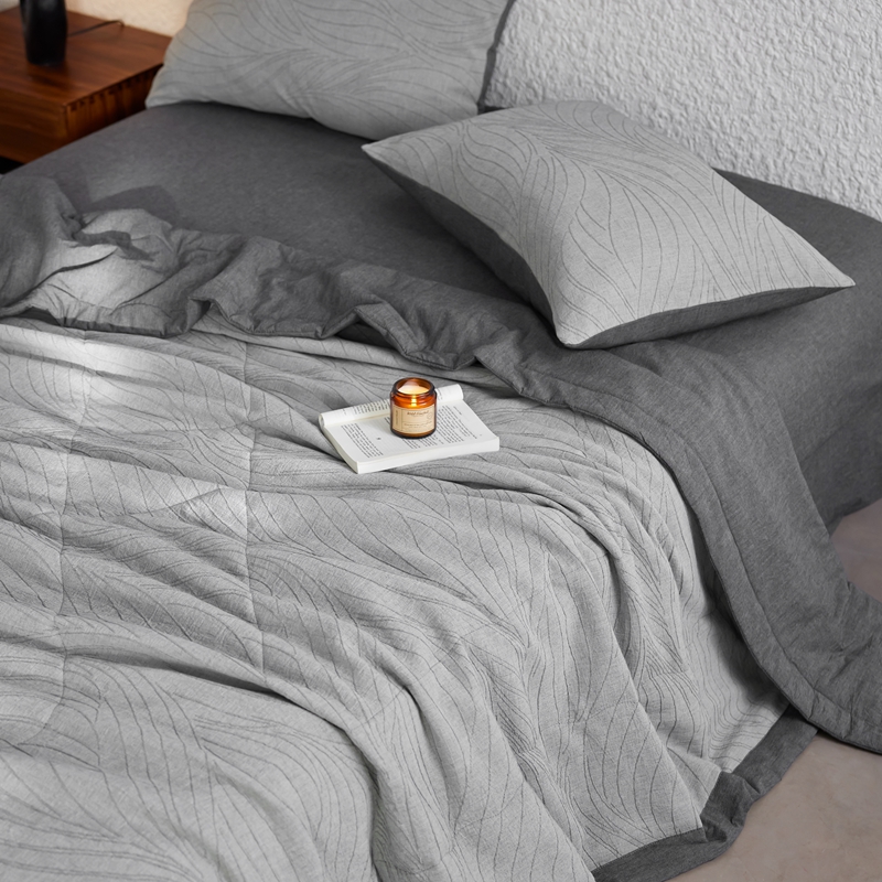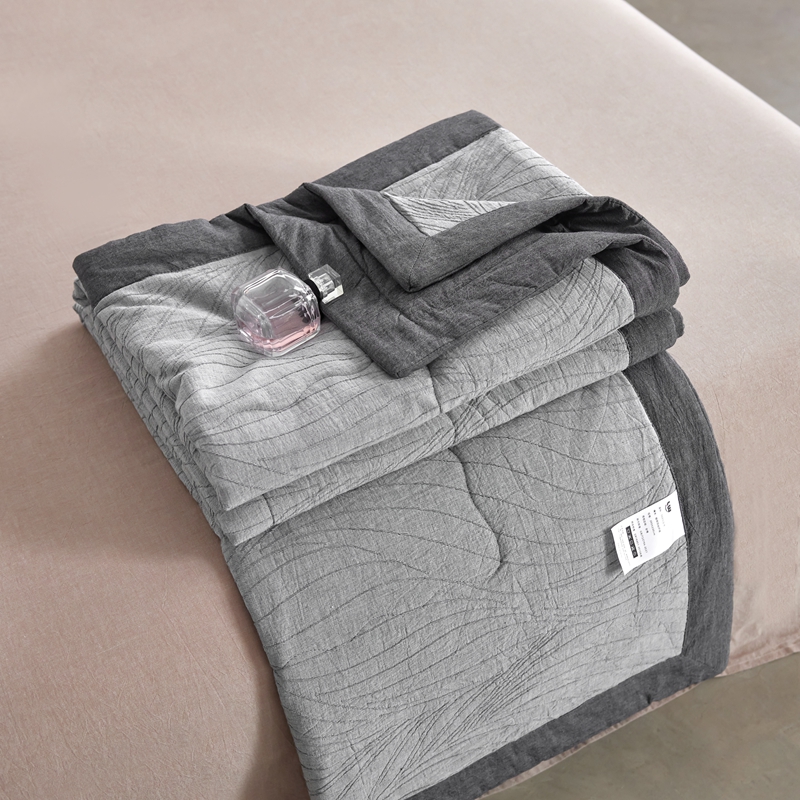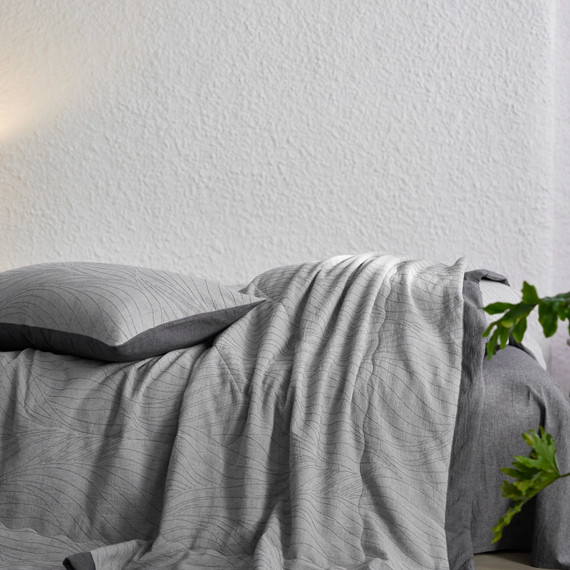 2024新款色织双层纱提花波浪三系列夏被及夏被四件套--乱纹波浪 乱纹-深灰