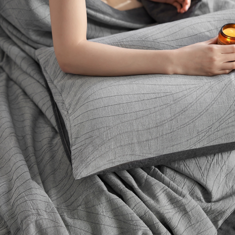 商品名称:2024新款色织双层纱提花波浪三系列夏被及夏被四件套--乱纹波浪 乱纹-深灰