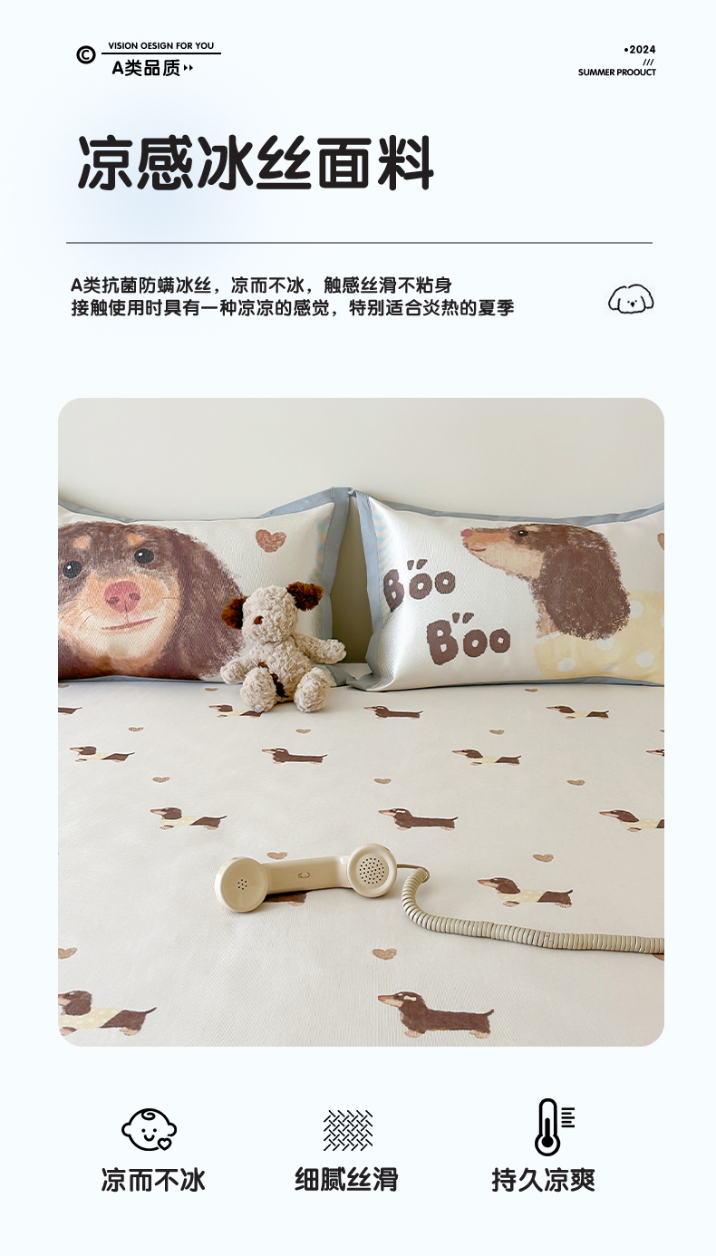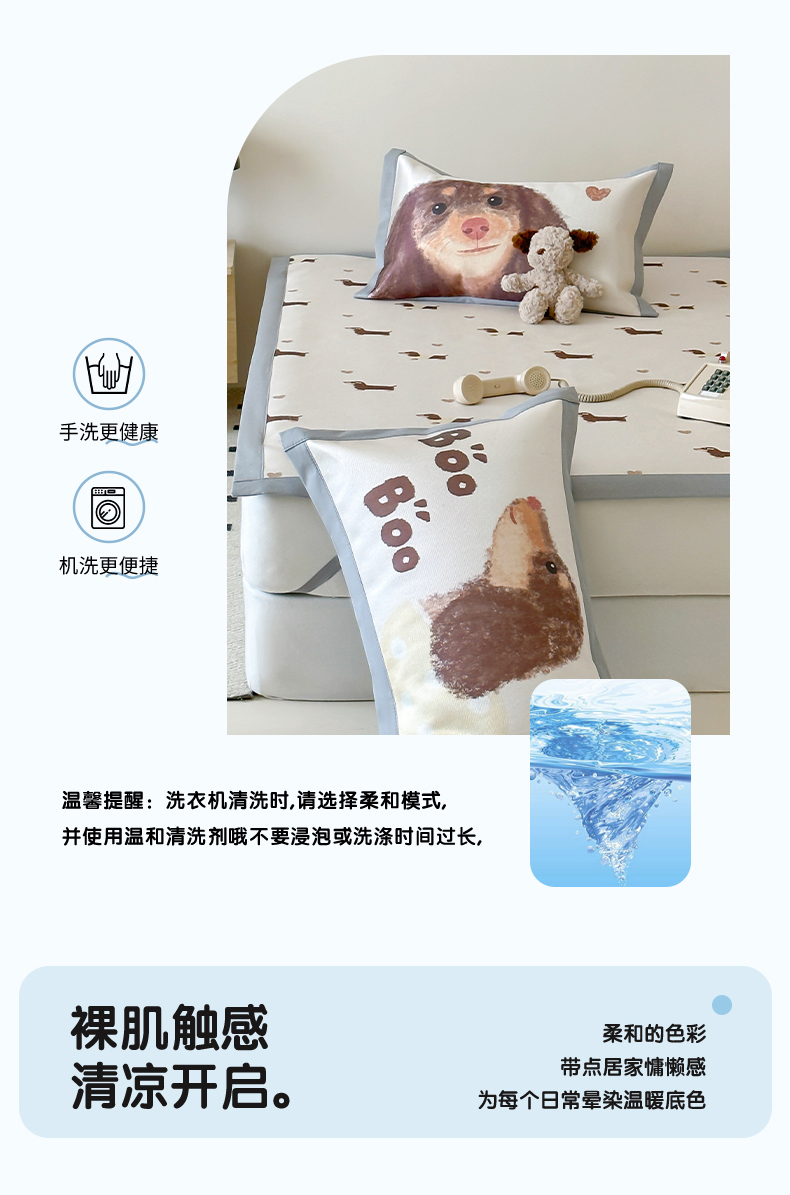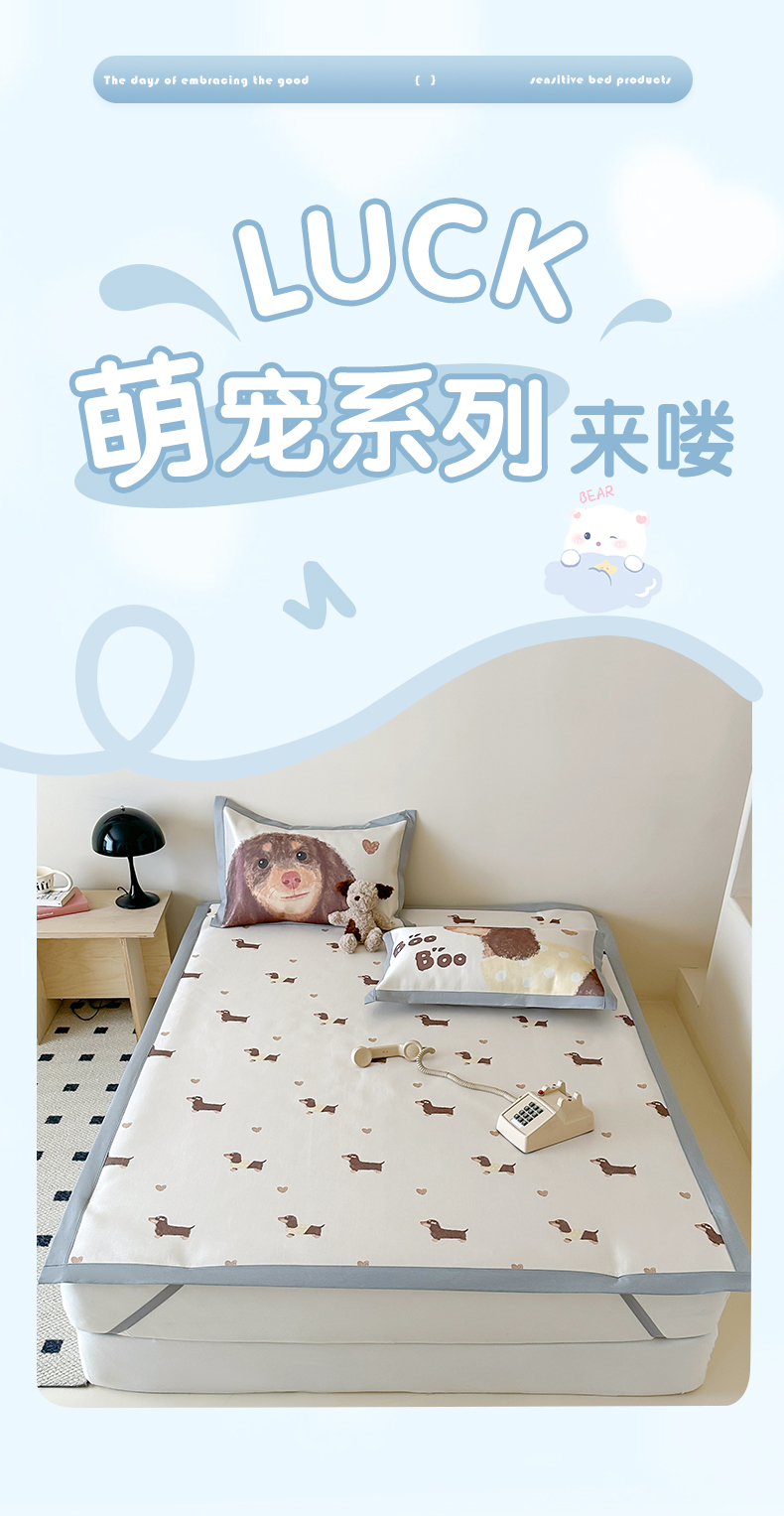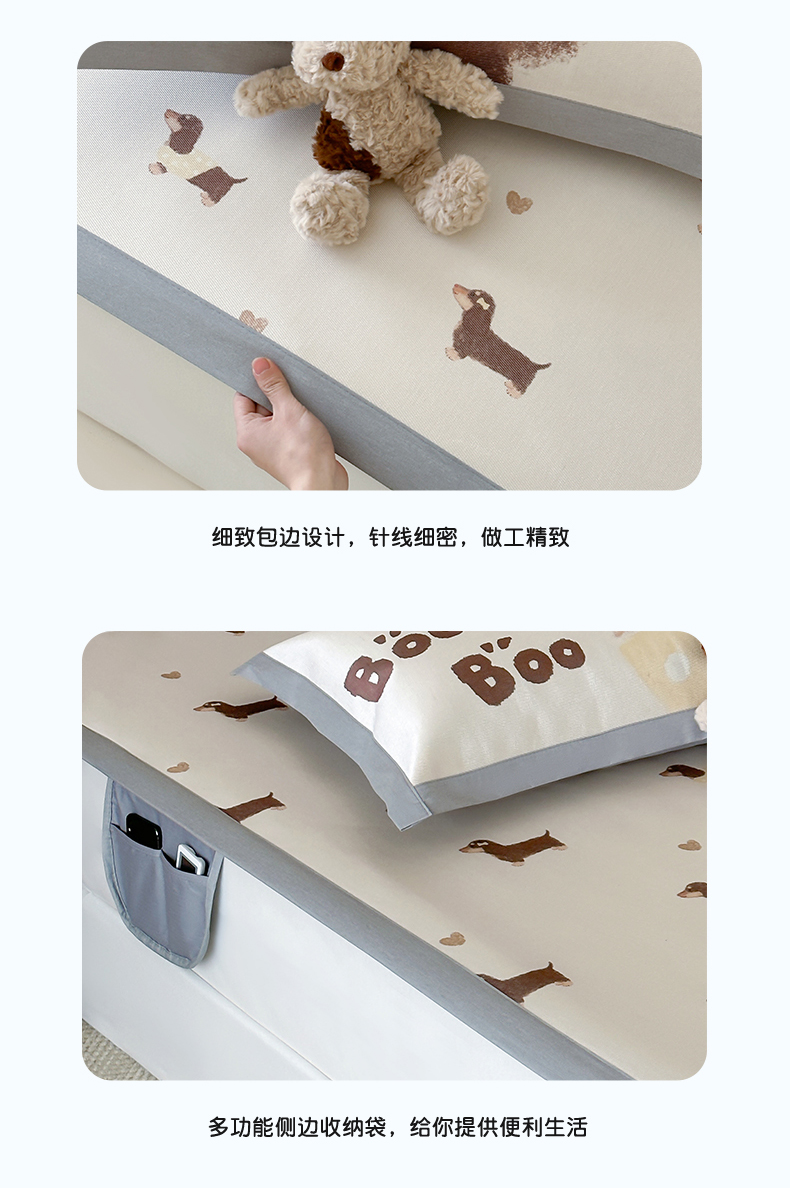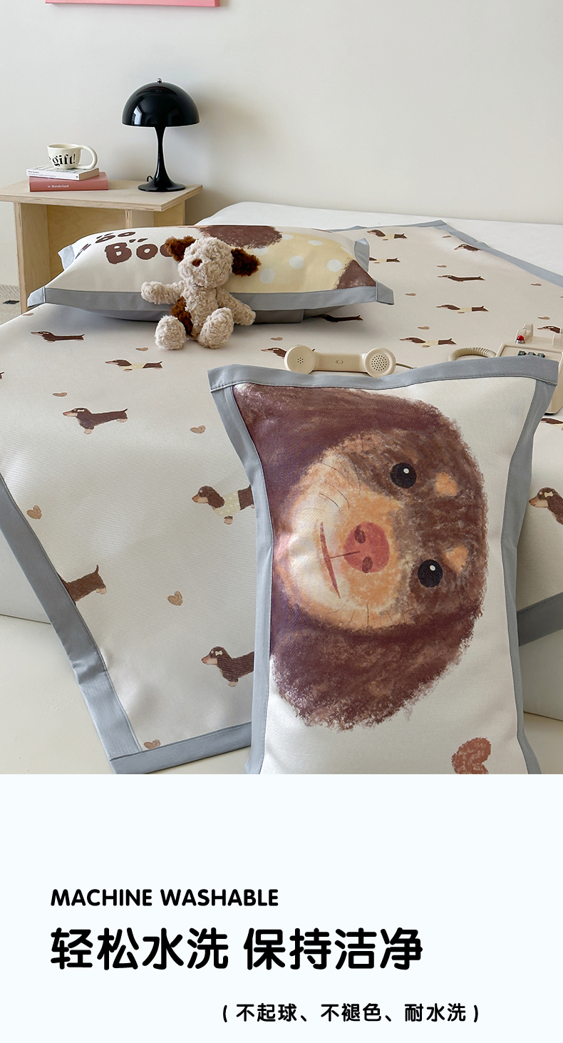 商品名称:圆岛 2024新款A类900D萌宠系列冰丝养生席 腊肠小狗