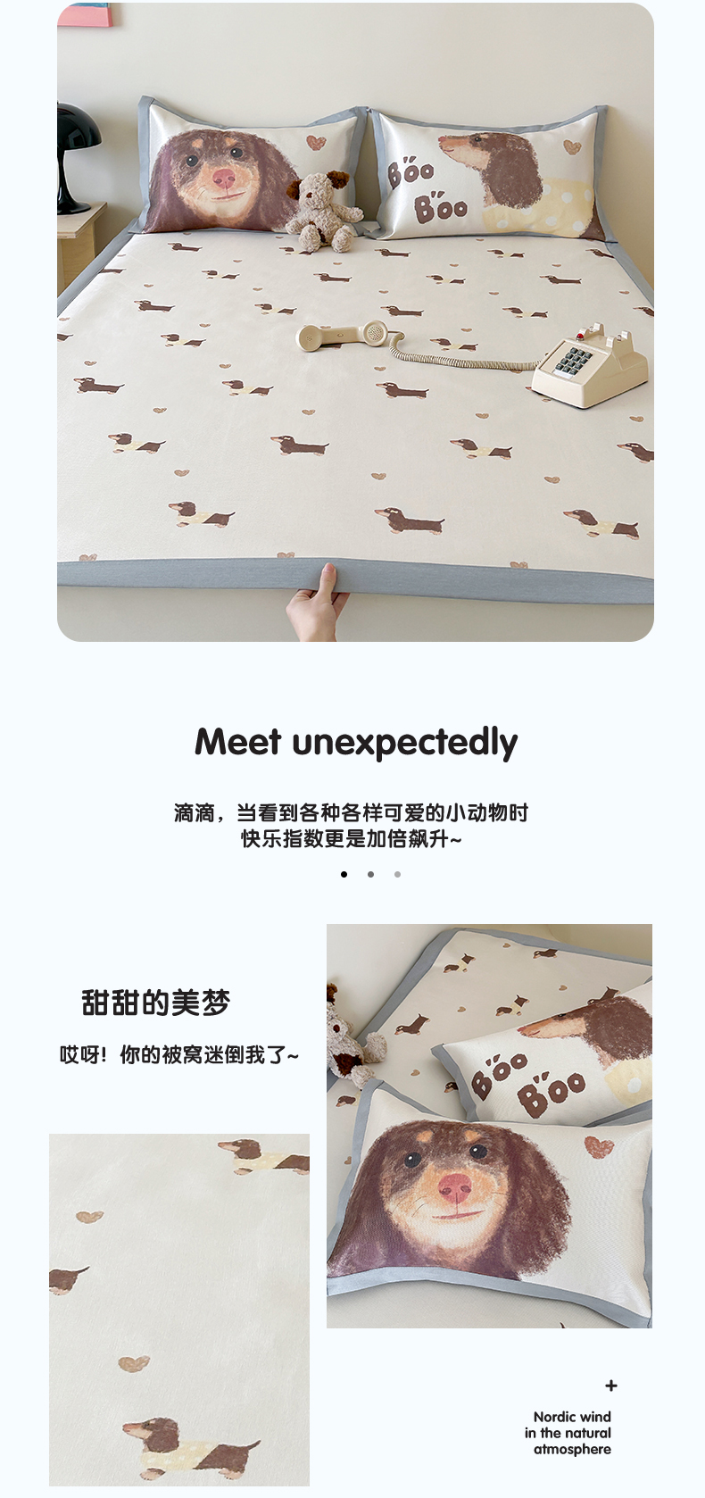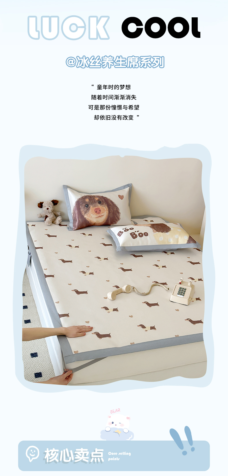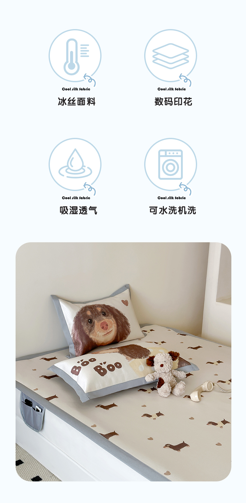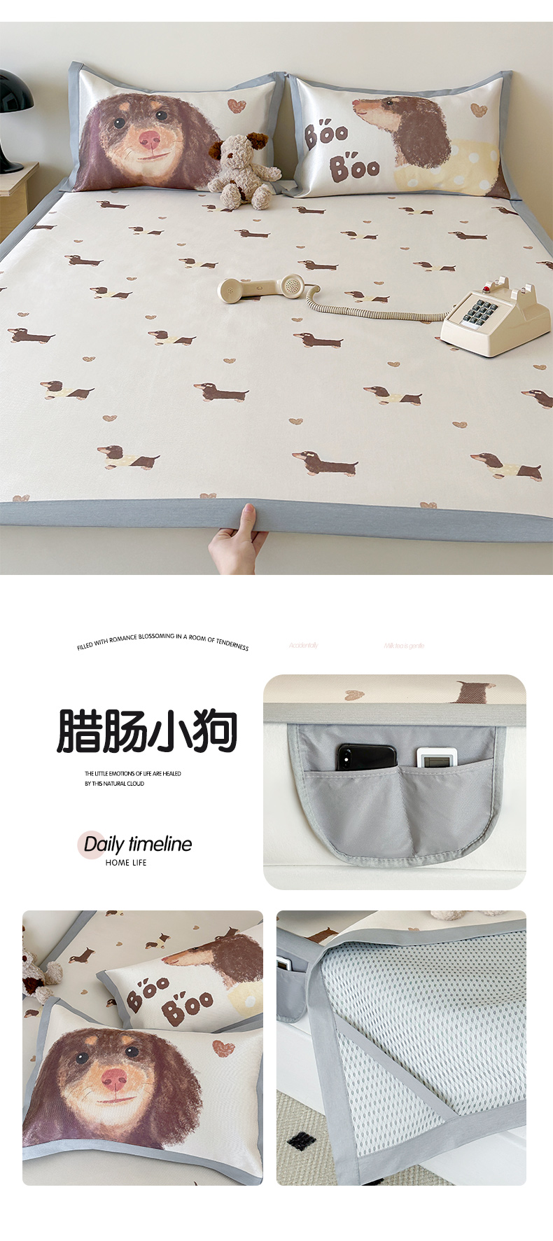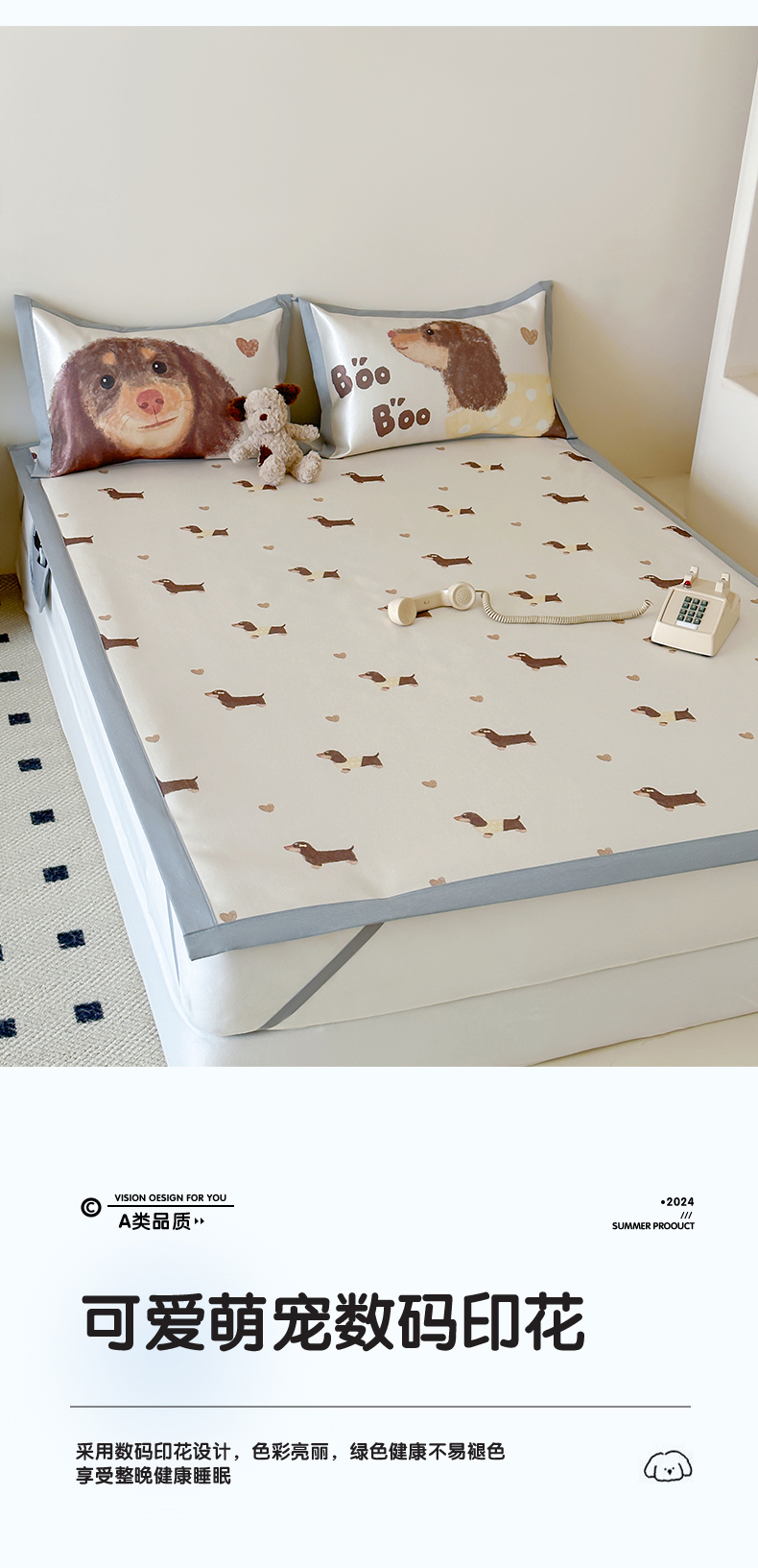 商品名称:圆岛 2024新款A类900D萌宠系列冰丝养生席 腊肠小狗