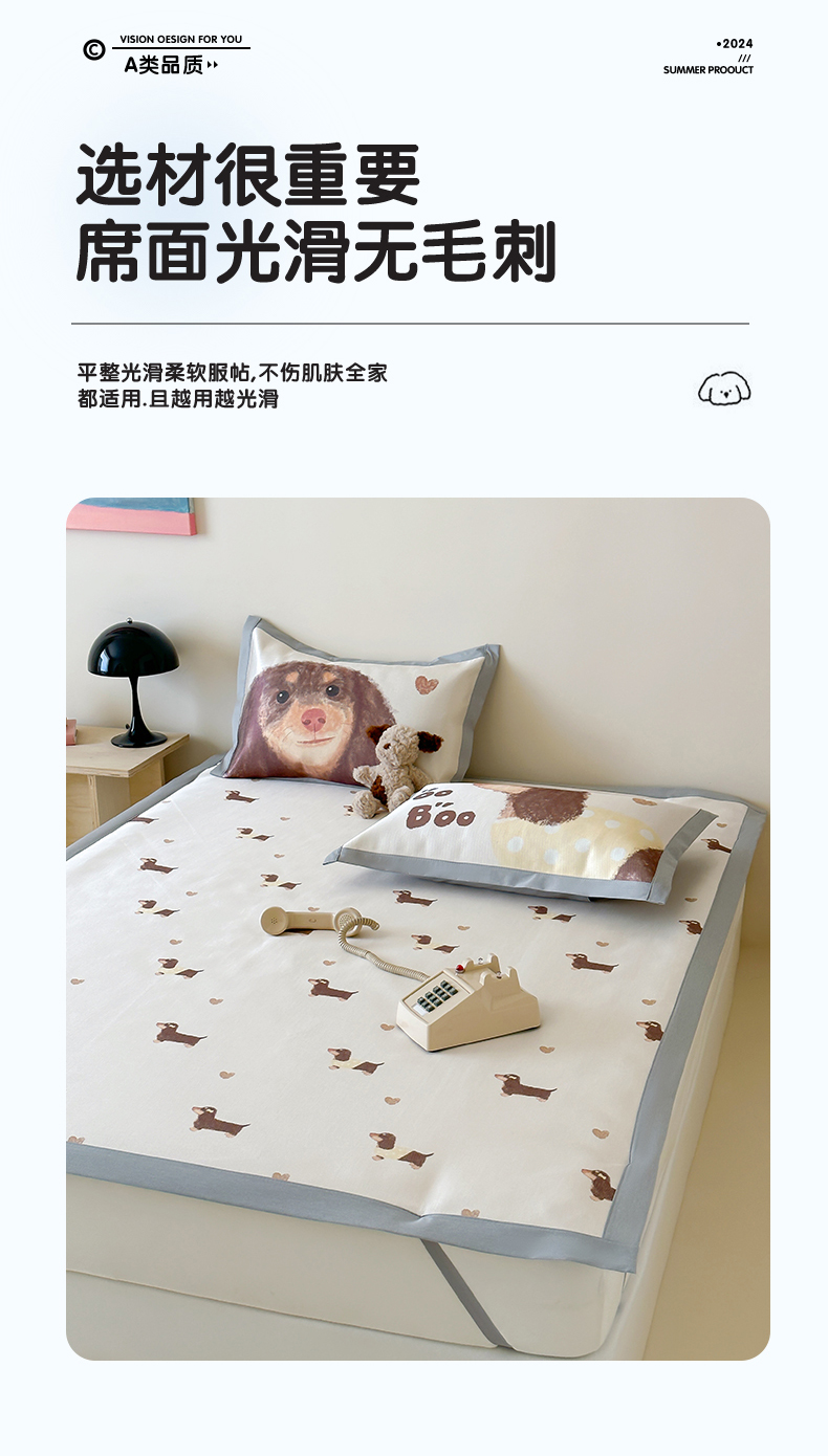 圆岛 2024新款A类900D萌宠系列冰丝养生席 腊肠小狗