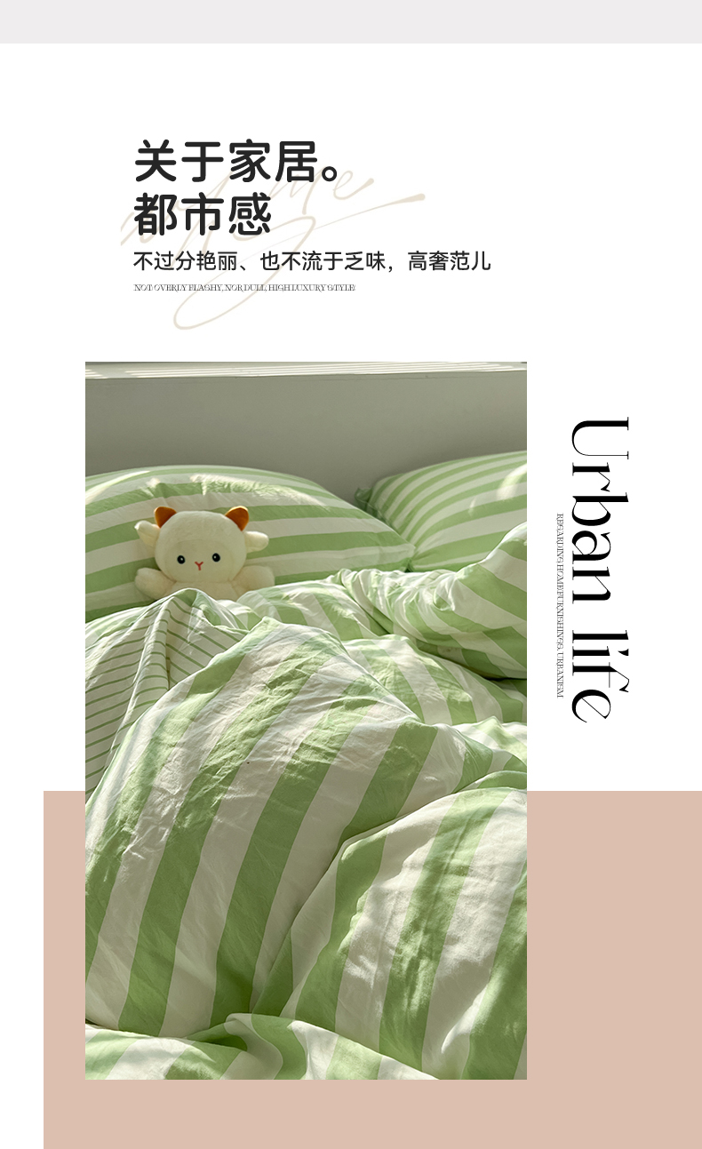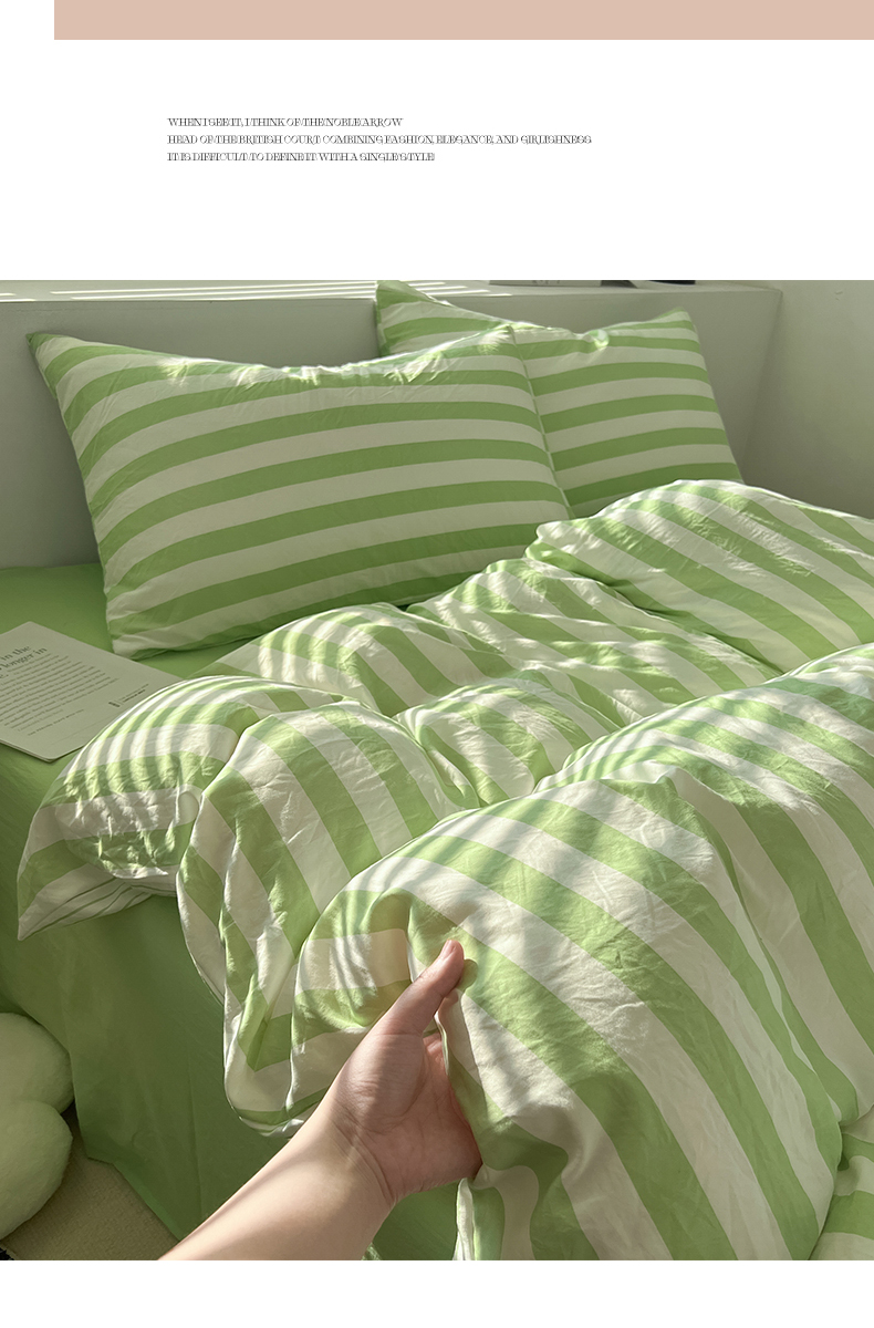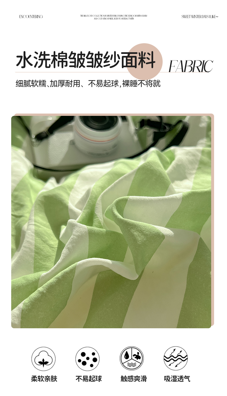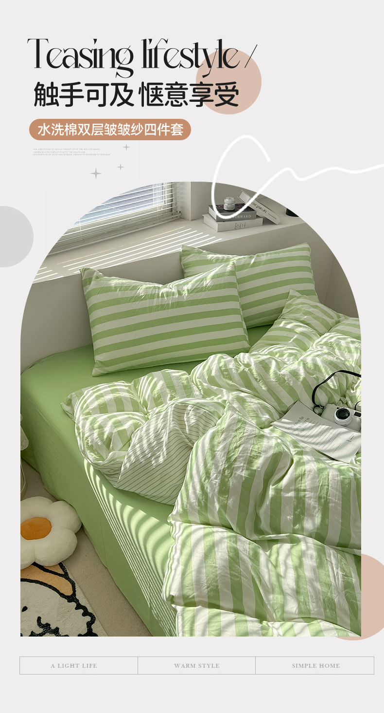 当前位置: 91家纺网 > 商品网购 > 床品套件 > 四件套 > 全棉普通四件套 > 多品 2024新款高克重水洗棉双层纱皱皱纱四件套 松绿条