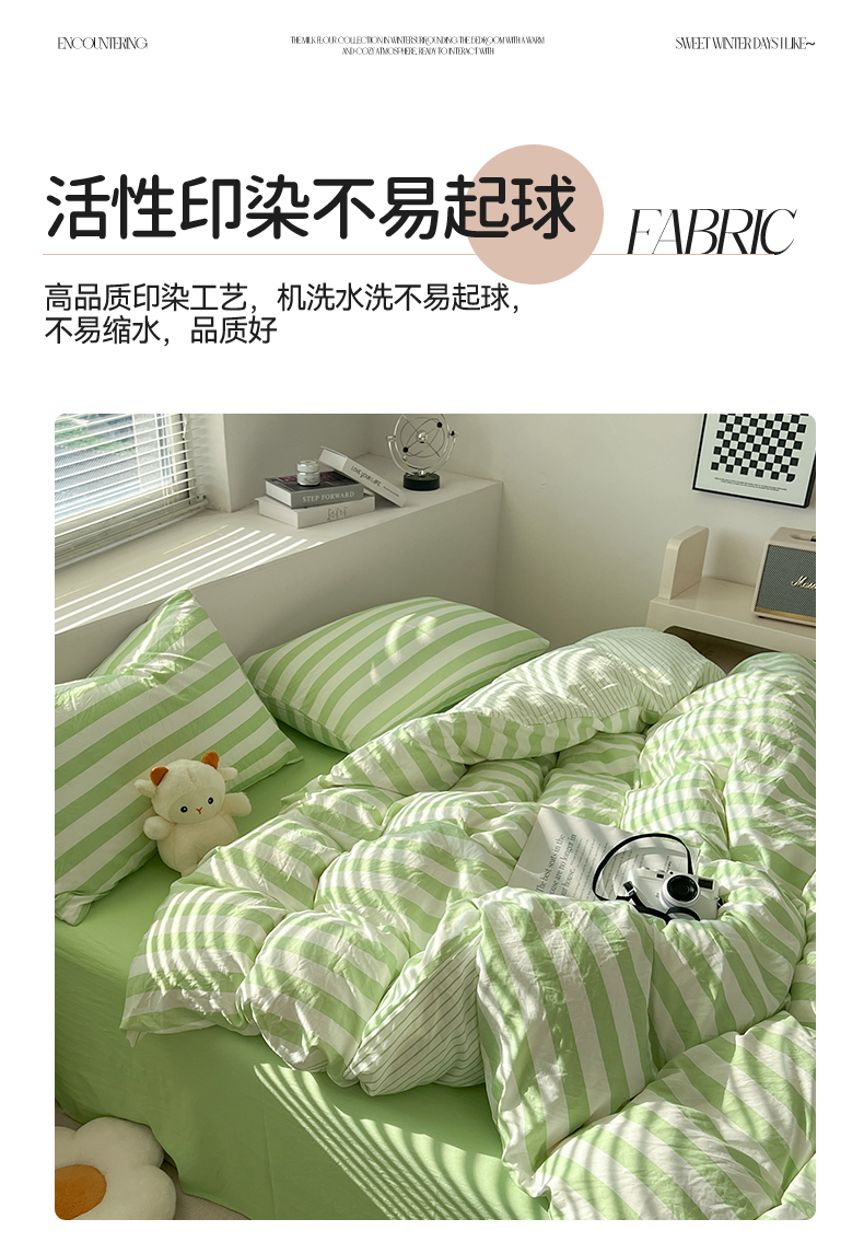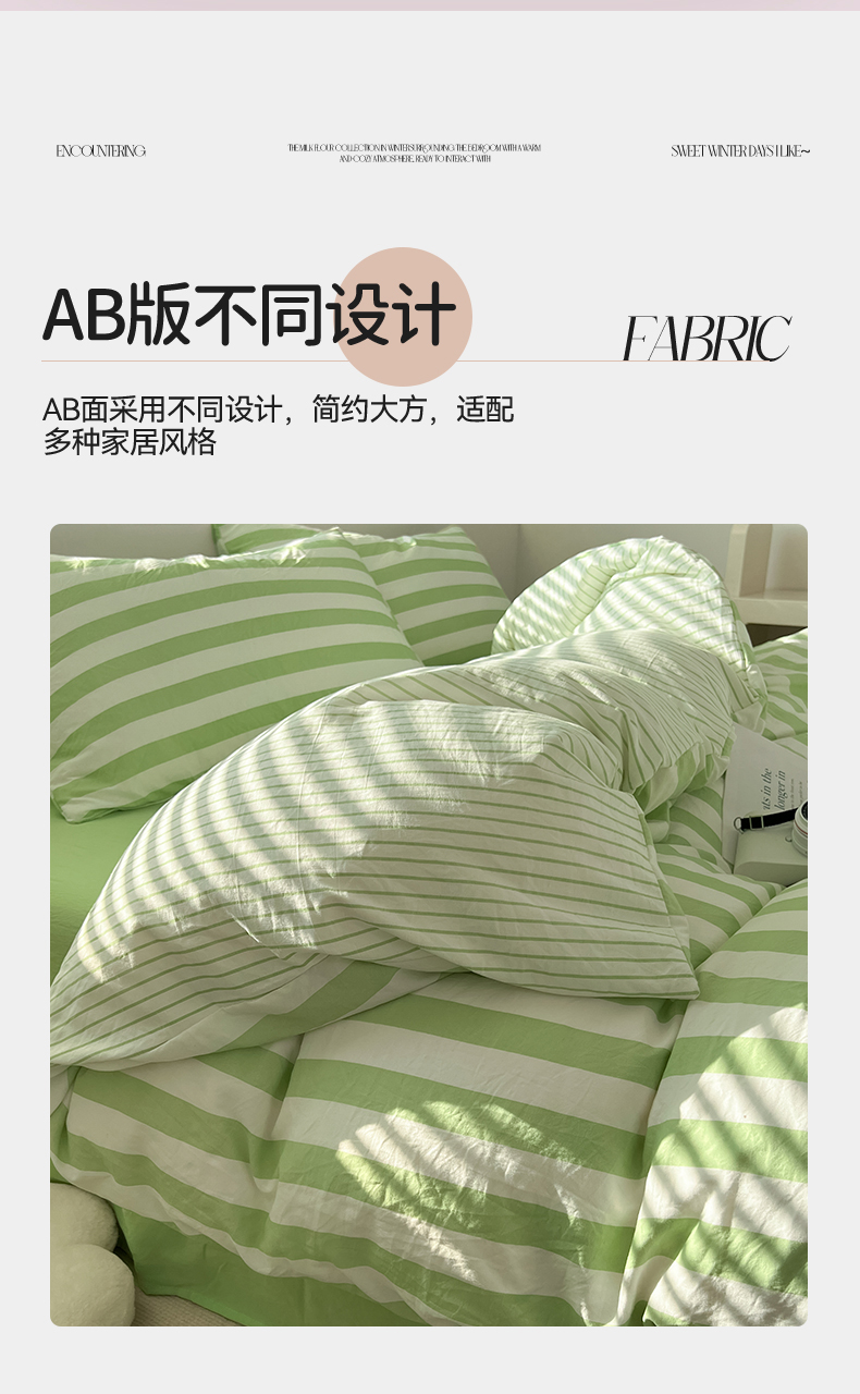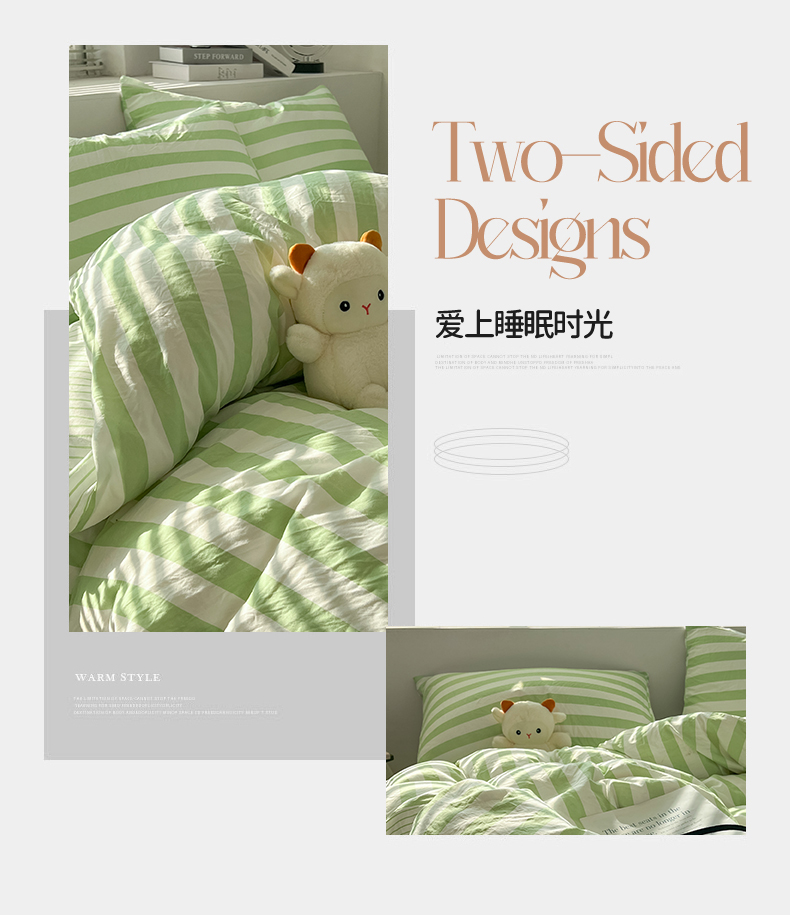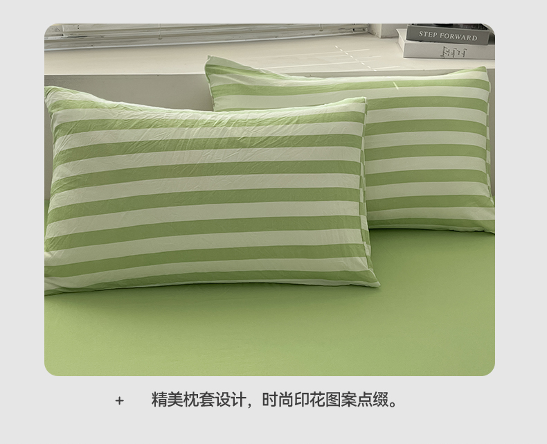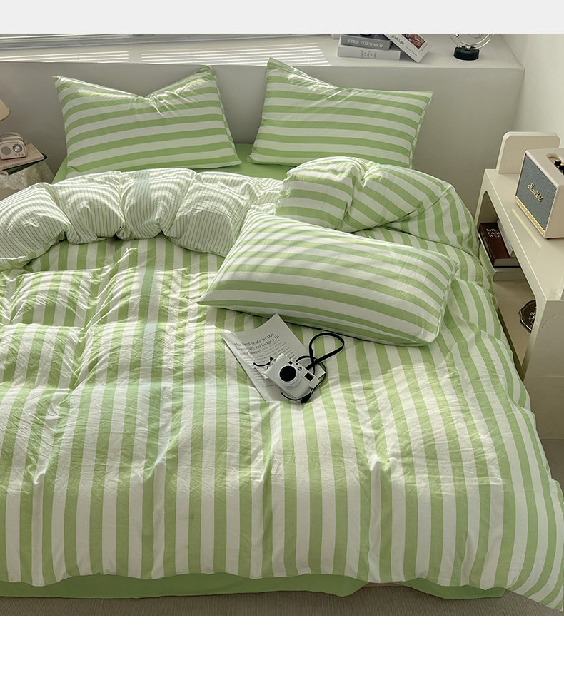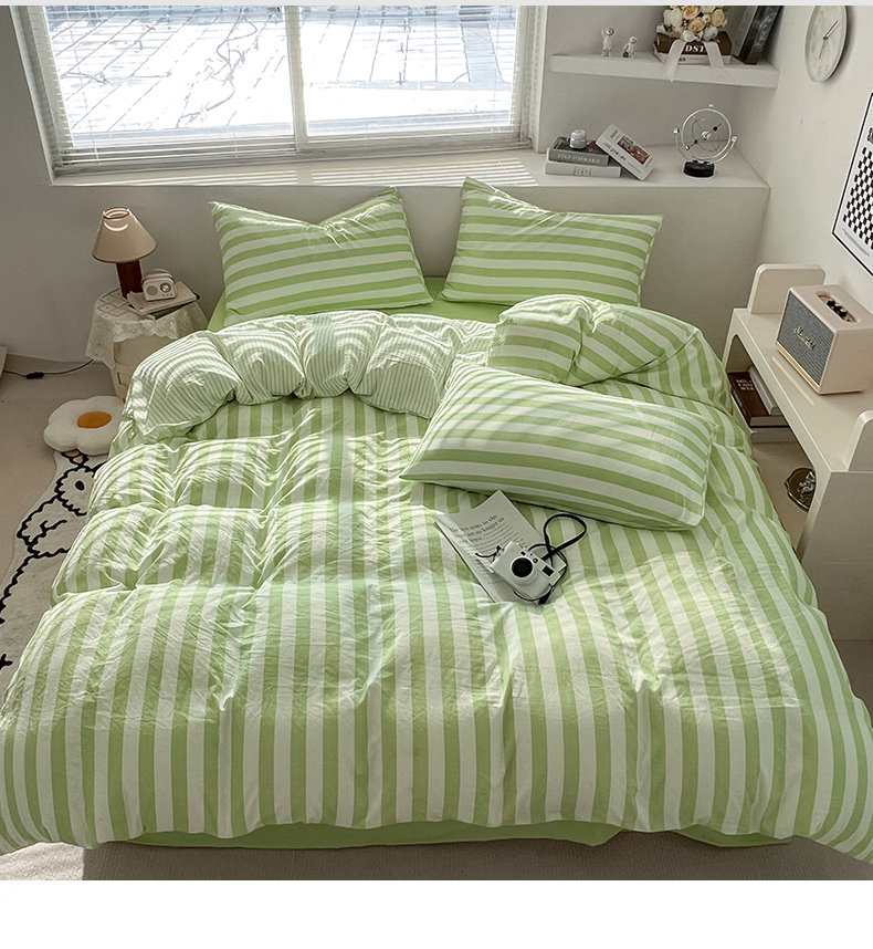 当前位置: 91家纺网 > 商品网购 > 床品套件 > 四件套 > 全棉普通四件套 > 多品 2024新款高克重水洗棉双层纱皱皱纱四件套 松绿条