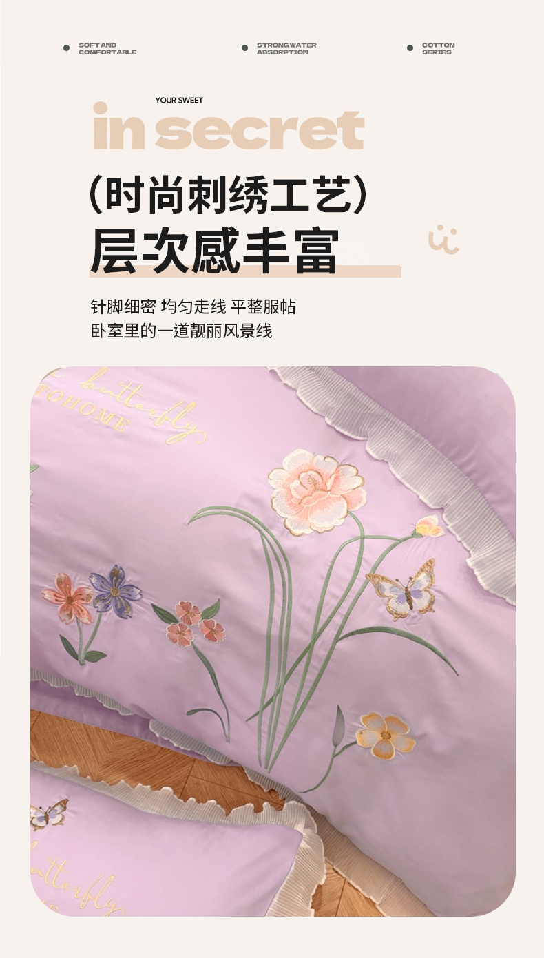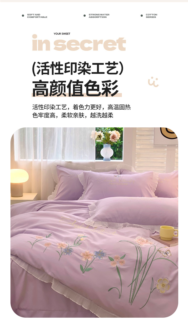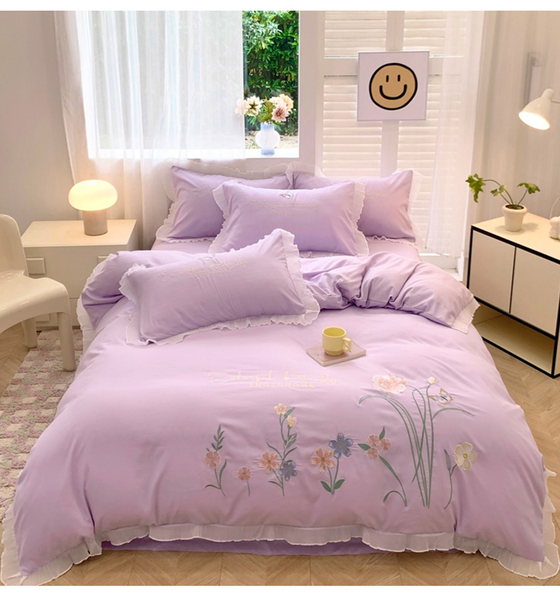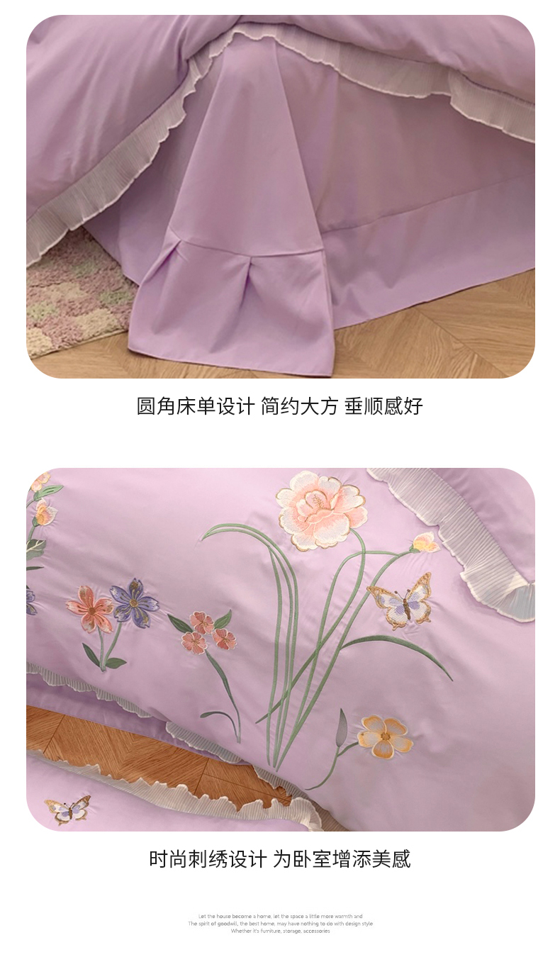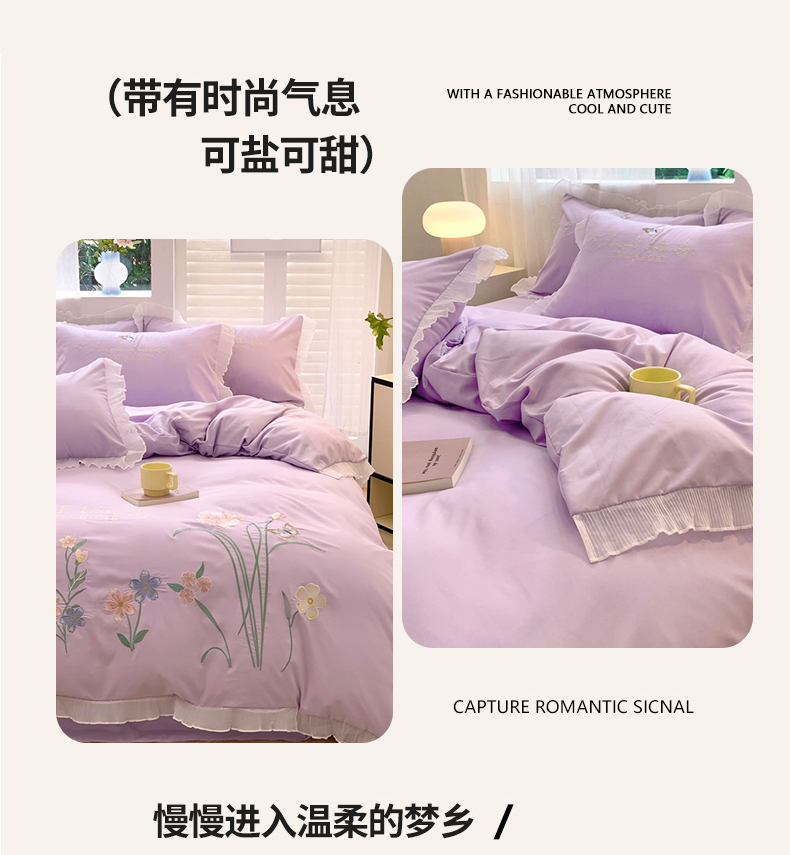 (总)凯艾玲 2023新款法式浪漫系列磨毛细斜纹刺绣四件套,法式浪漫-奶昔白,法式浪漫-蔷薇紫,法式浪漫-天空蓝,法式浪漫-樱花粉
