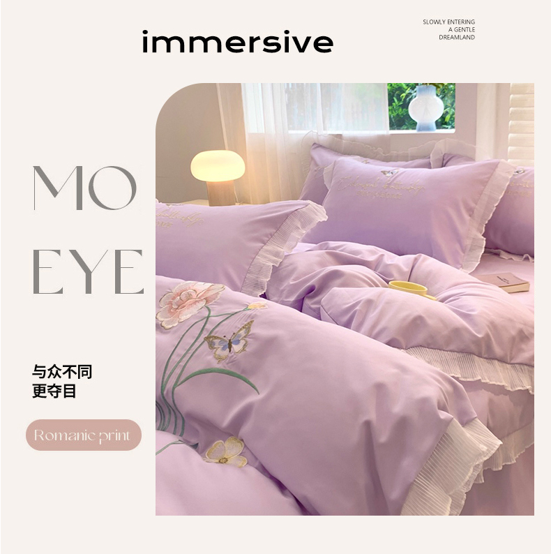 (总)凯艾玲 2024新款简约轻奢磨毛细斜纹四件套-花之舞 紫色