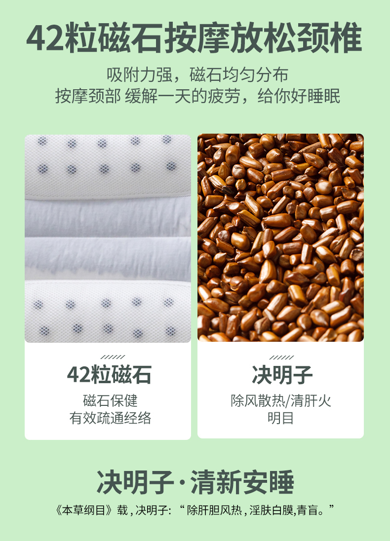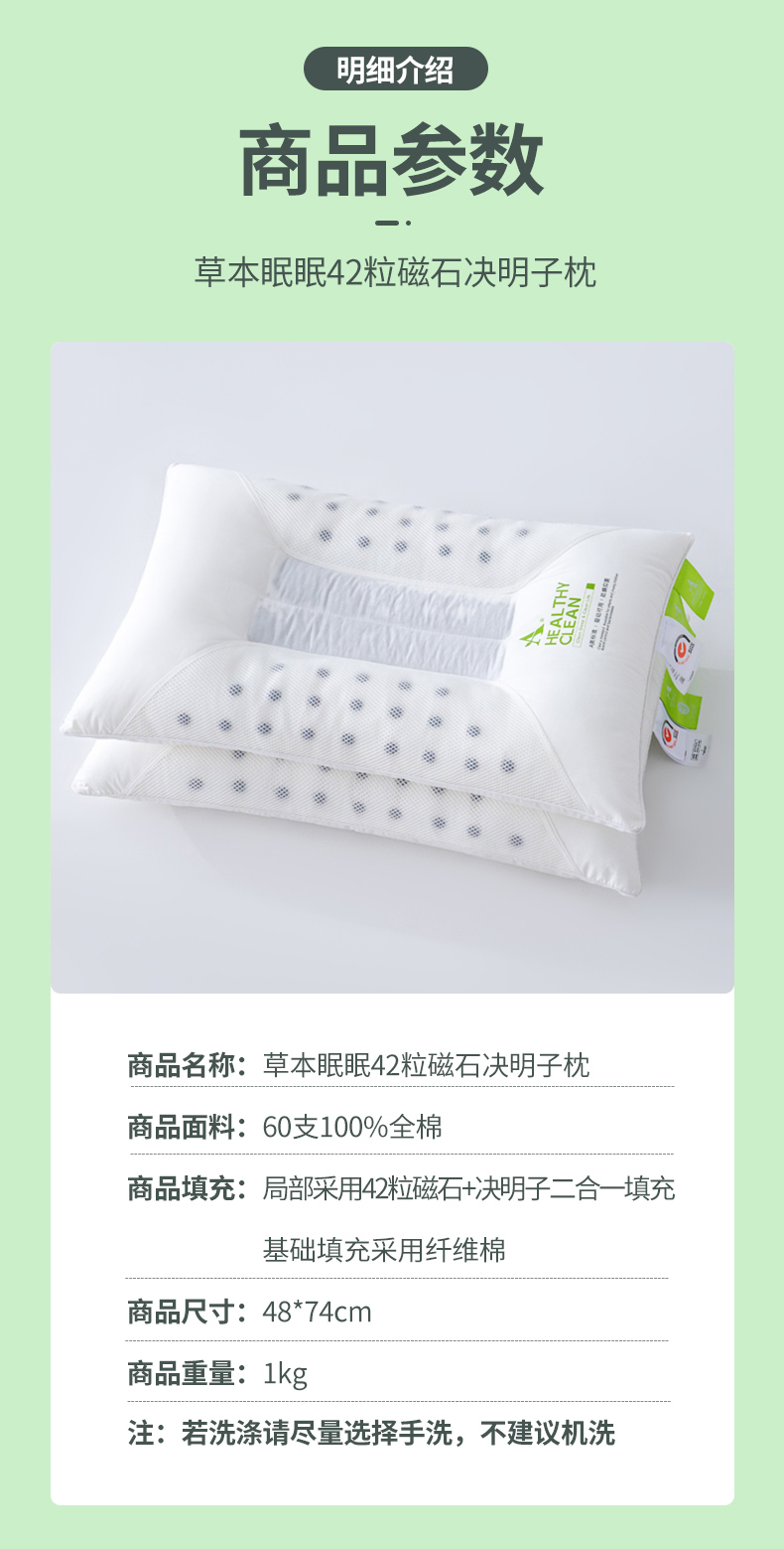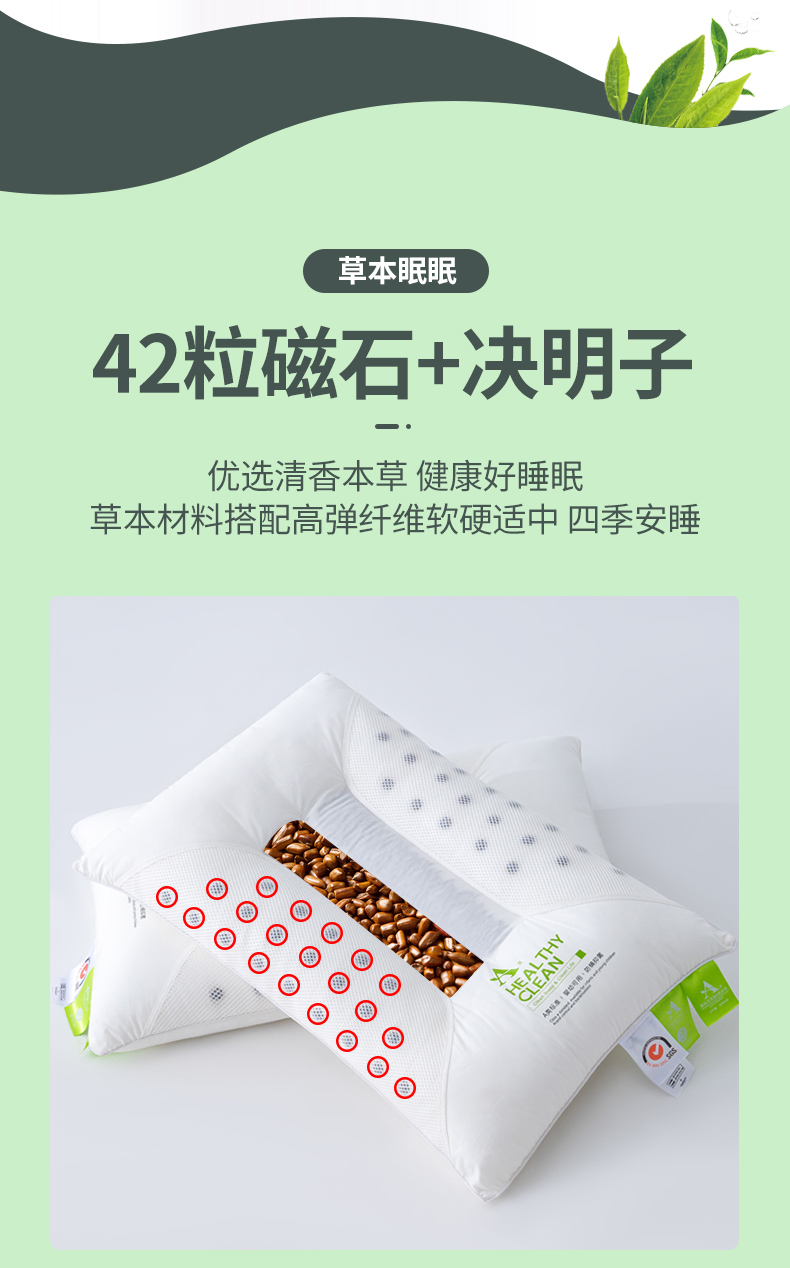 当前位置: 91家纺网 > 商品网购 > 枕头/枕芯/保健枕/颈椎枕 > 普通枕芯 > (总)梦叶草 2024新款全棉枕头42粒磁石决明子护颈枕芯