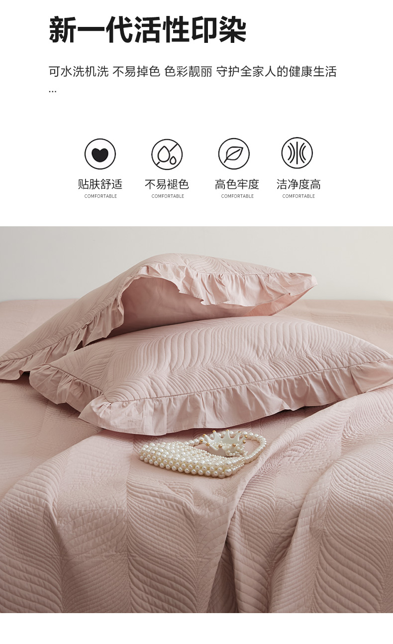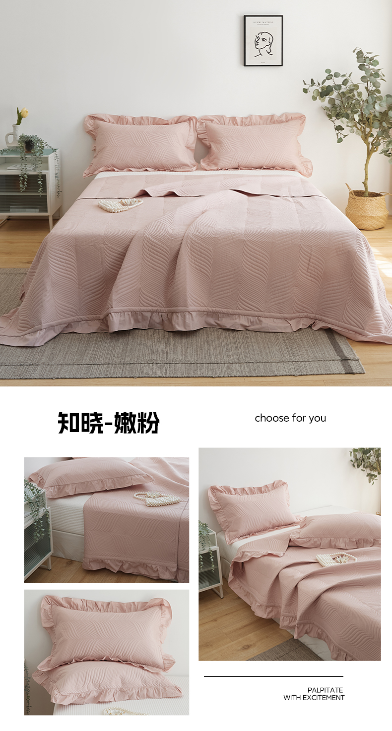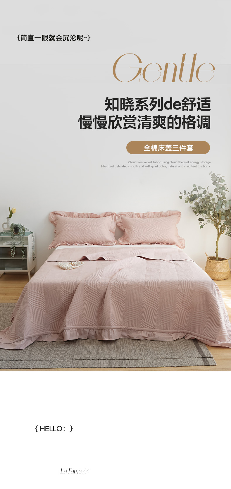 商品名称:EH家居 2024新款全棉床盖三件套-知晓系列 知晓-嫩粉
