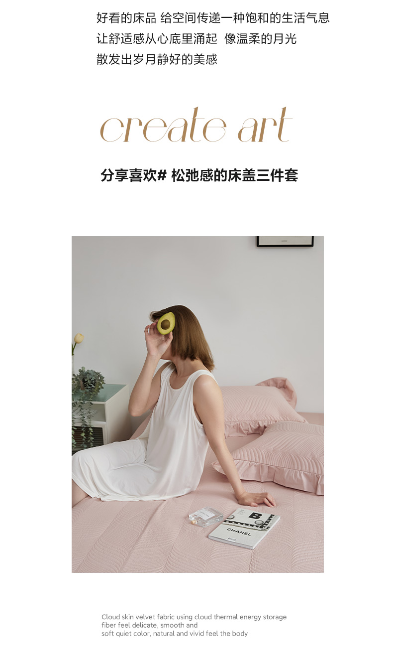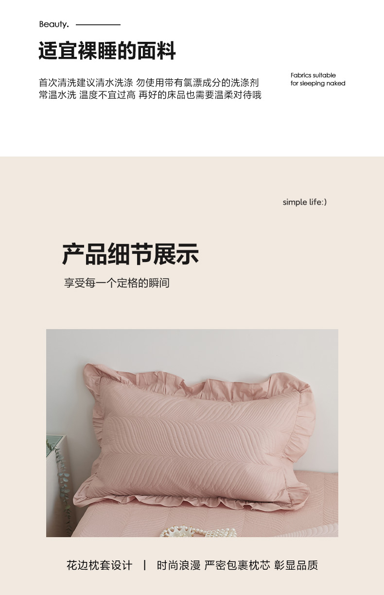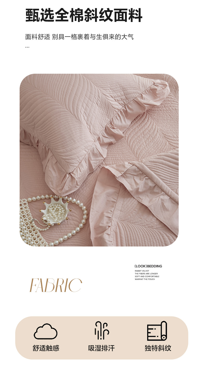 商品名称:EH家居 2024新款全棉床盖三件套-知晓系列 知晓-嫩粉