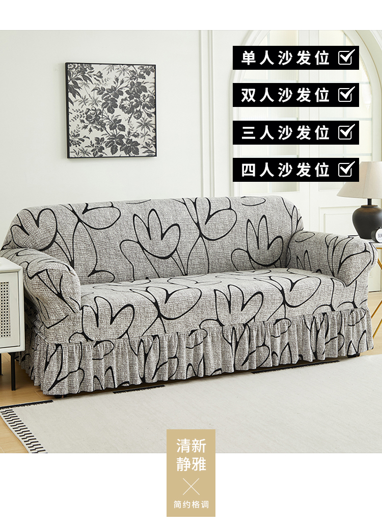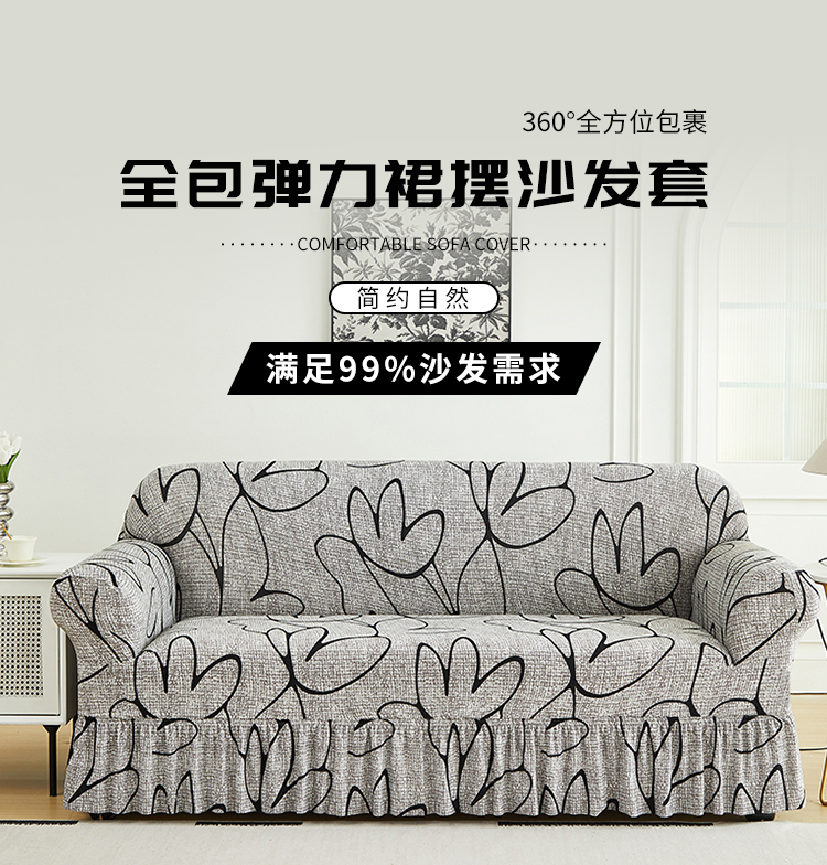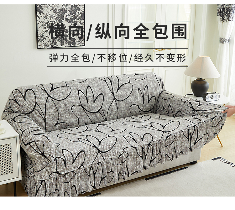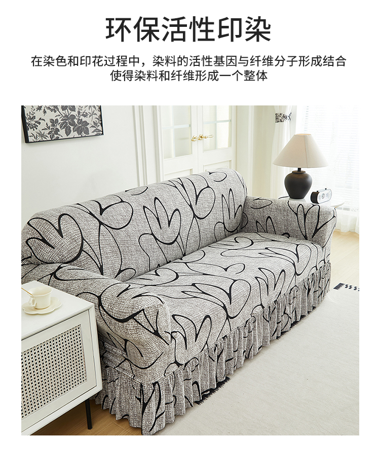 逐日沙发套 2024新款牛奶丝印花裙摆沙发套 印花 裙摆-素莲