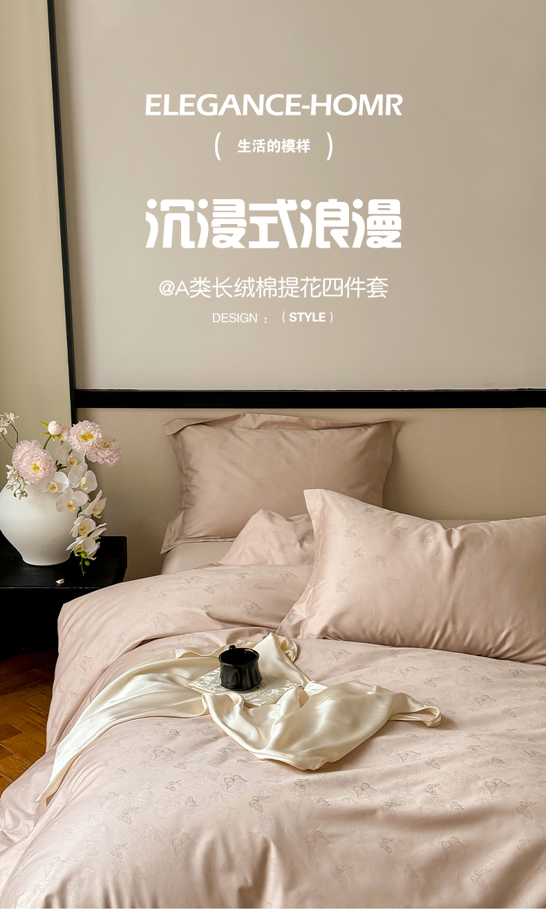 云栖家居 2024全棉提花A类四件套 半亩花田-浅粉