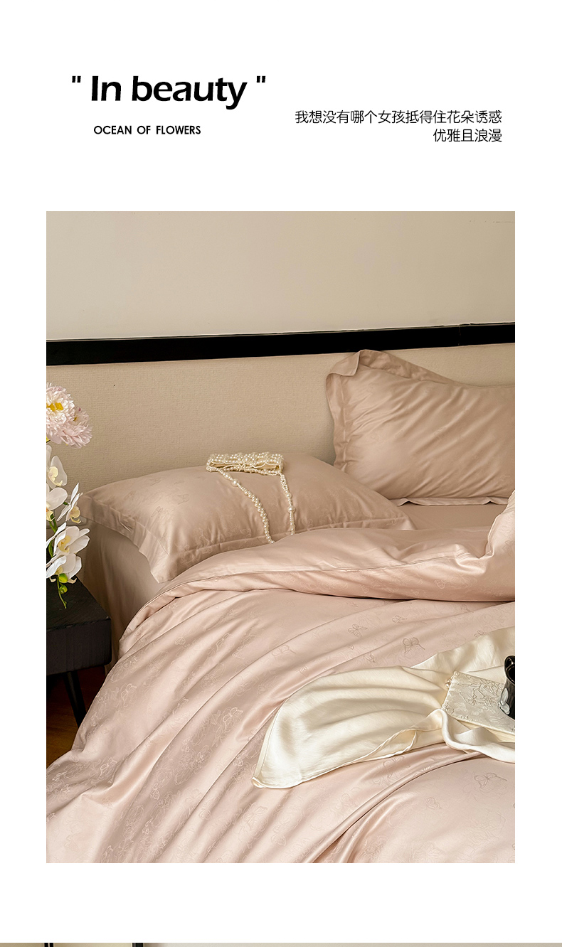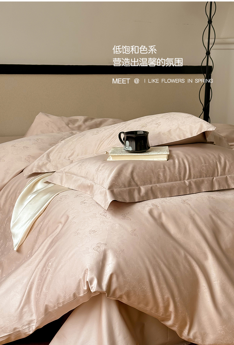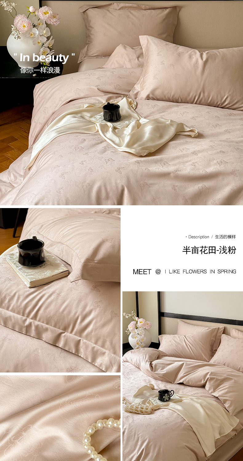 商品名称:云栖家居 2024全棉提花A类四件套 半亩花田-浅粉