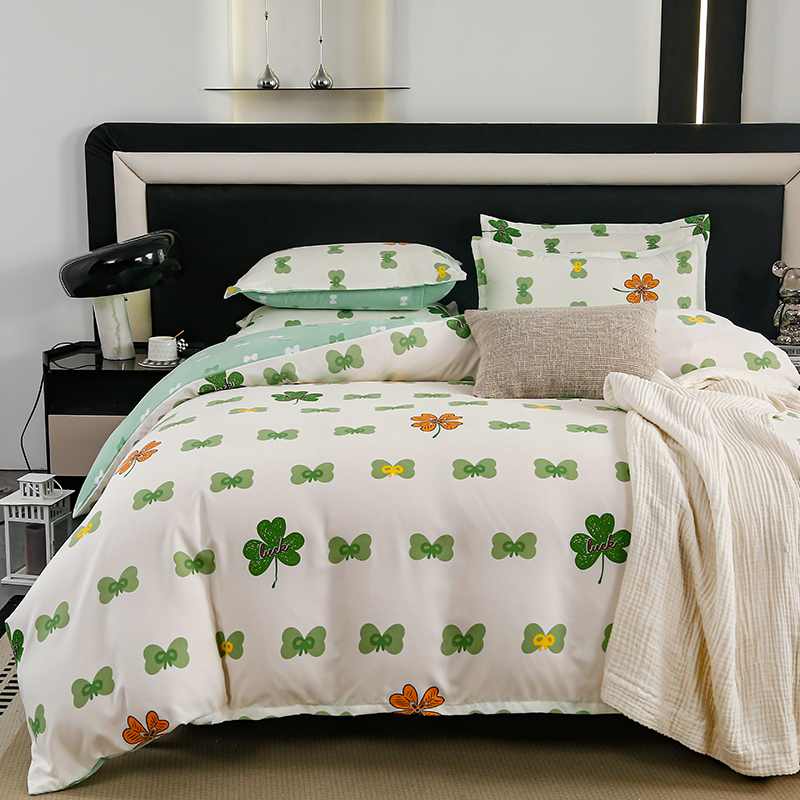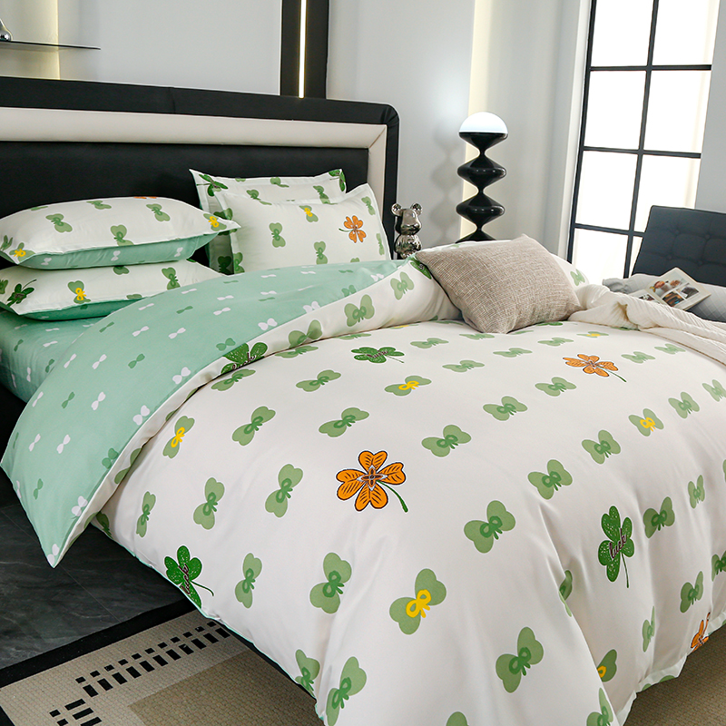 商品名称:梦卓家纺 2025新款直播加厚植物羊绒四件套高克重磨毛跨境四件套 大量现货幸运草