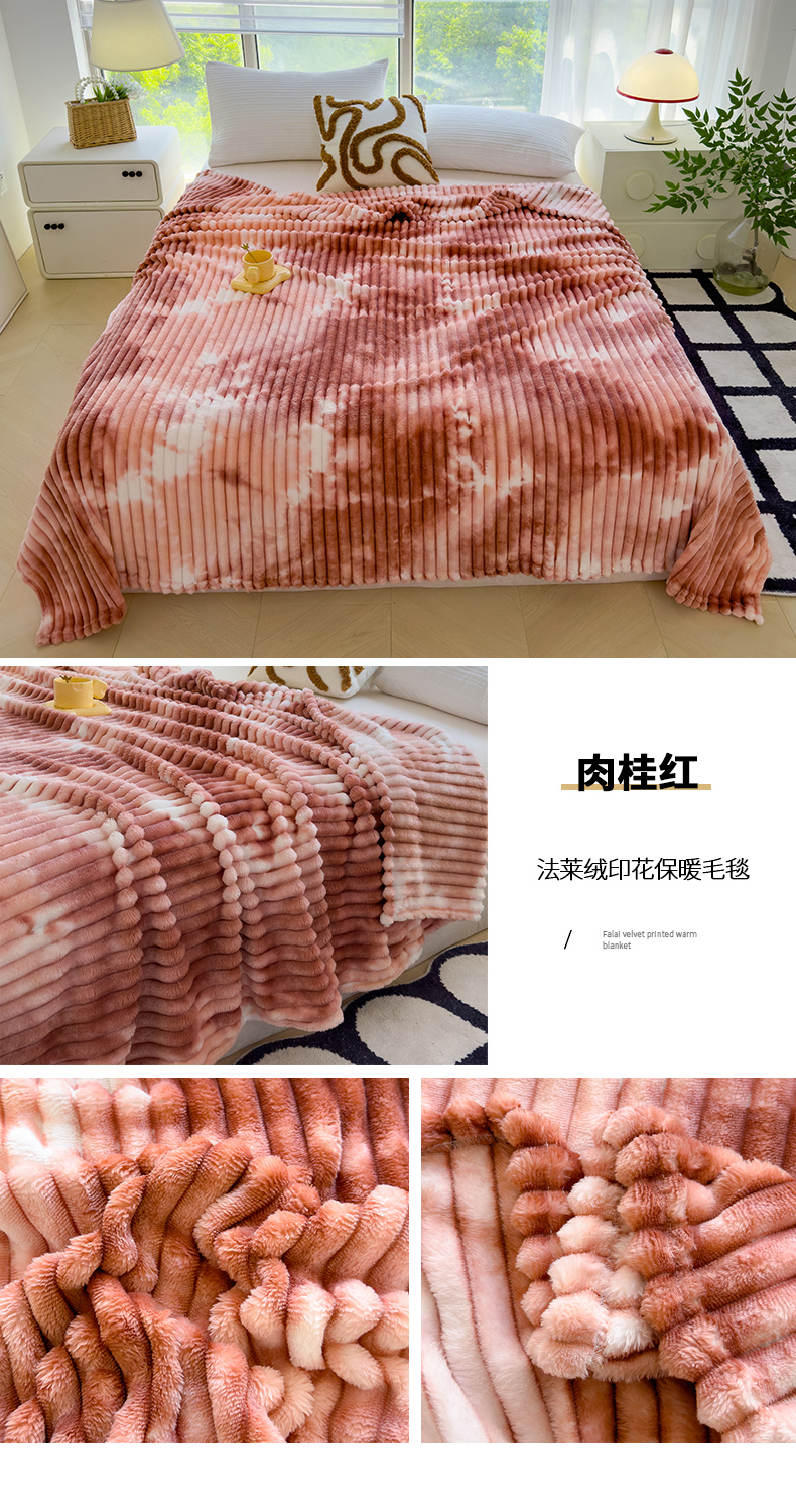 商品名称:枋梢家纺 2024新款印花法莱绒毛毯加厚保暖披肩小毯子沙发盖毯空调毯 肉桂红