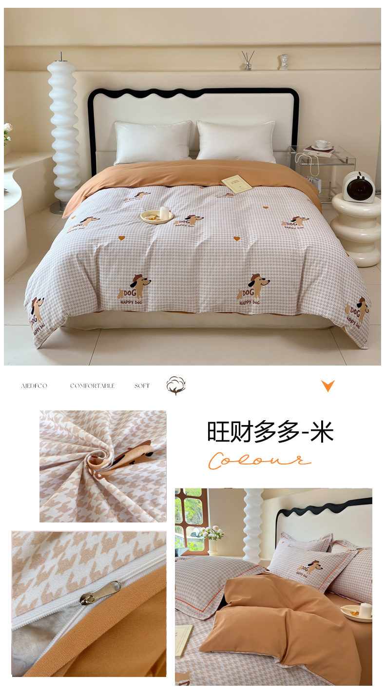 • 91家纺网 家纺一手货源 找家纺 艾迪尚家纺 2025新款生态全棉磨毛印花四件套--单被套 旺财多多-米