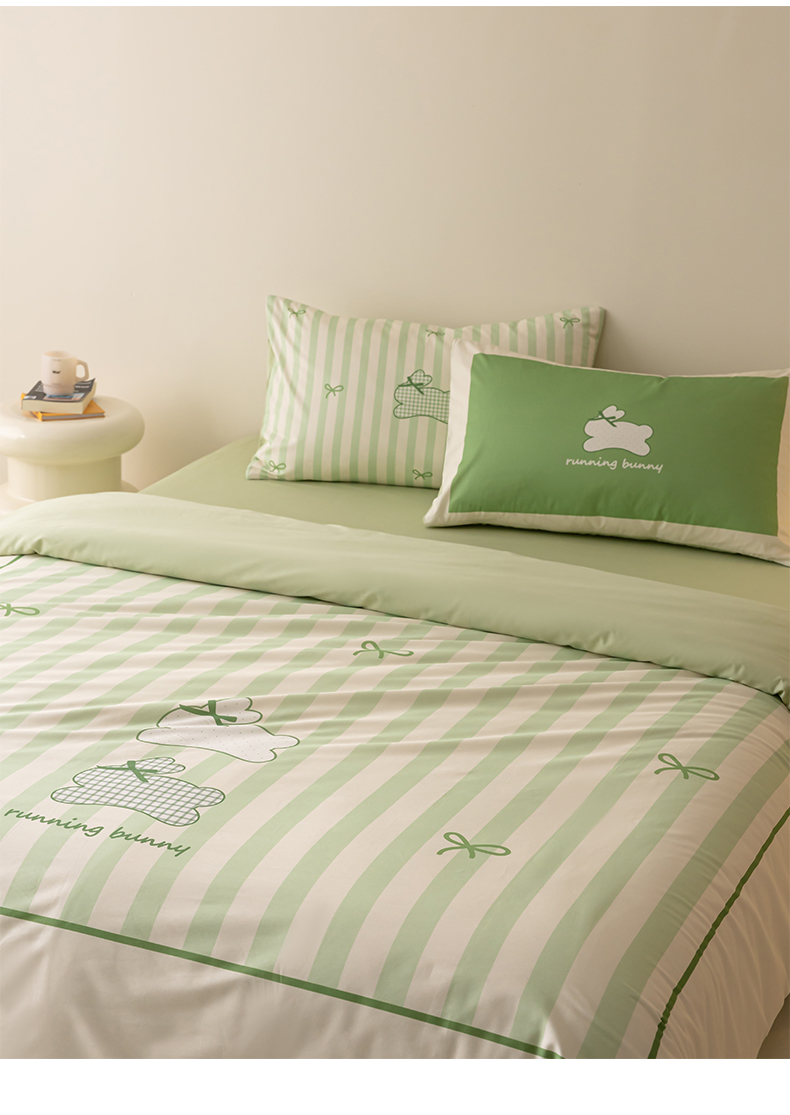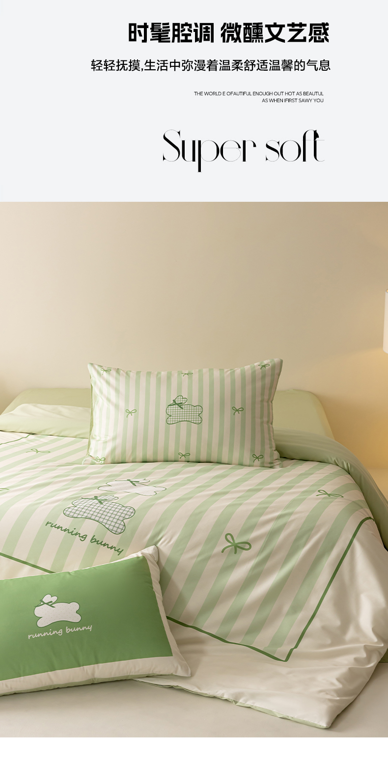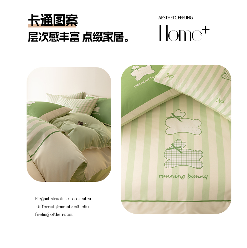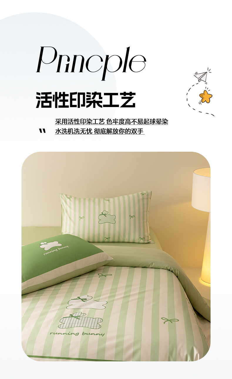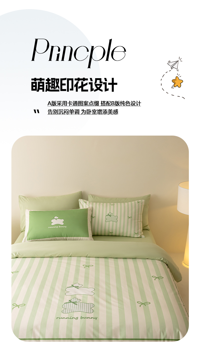 商品名称:雅居纺家纺 2024新款全棉印花13372大版四件套 奔跑小兔